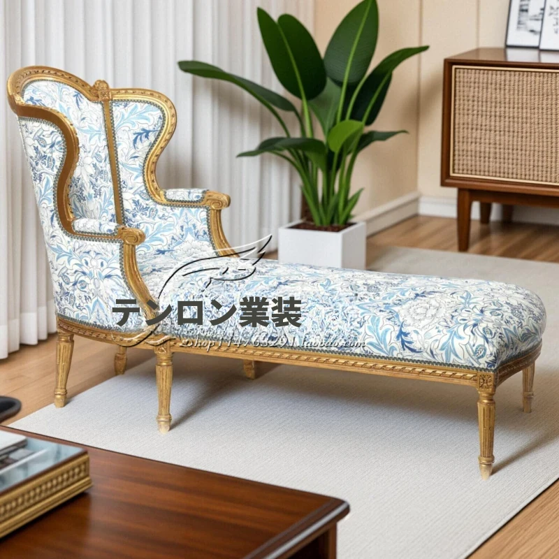フランス風の無垢材ベッドエンドチェア|アメリカンスタイルのホテル用デイベッド|別荘やクラブに最適な布張りソファチェア|北欧デザインの洗練されたソファで優雅な空間を演出!