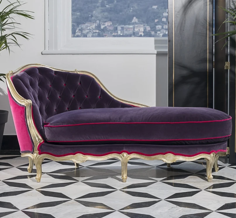 フランス風の無垢材プリンセスデイベッド - 上質なファブリック使用、エレガントなリビングルームソファ。ヴィンテージ仕上げのラグジュアリーなラウンジチェアで、リラックスしたひとときをお楽しみください。