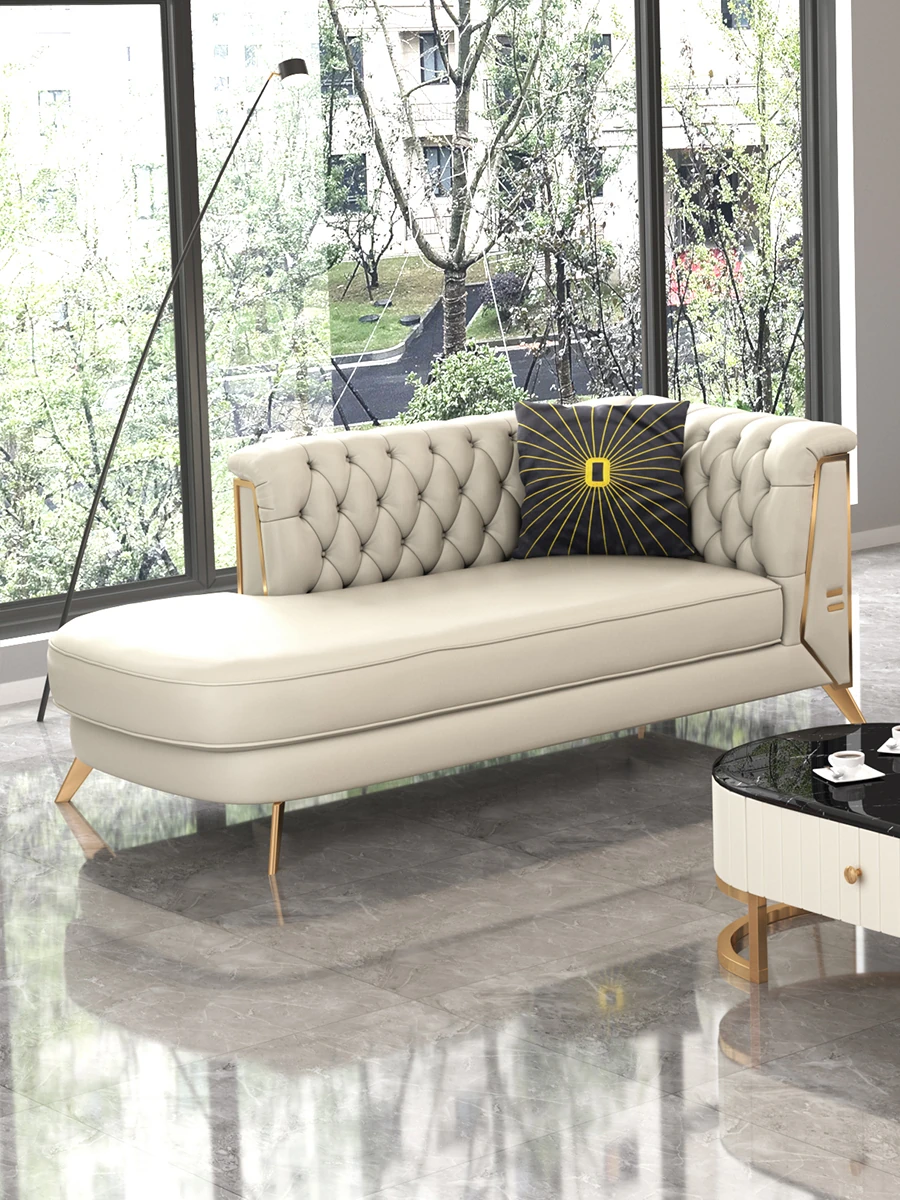 高級オシャレな欧風本革カウチソファ!ラグジュアリーなバルコニー用リクライニングソファ、無垢材使用の美しいデザイン。小スペースにもぴったりな寝椅子で、あなたの寝室を格調高く演出します。