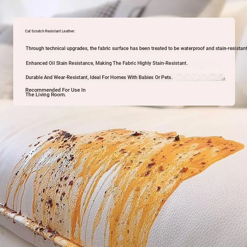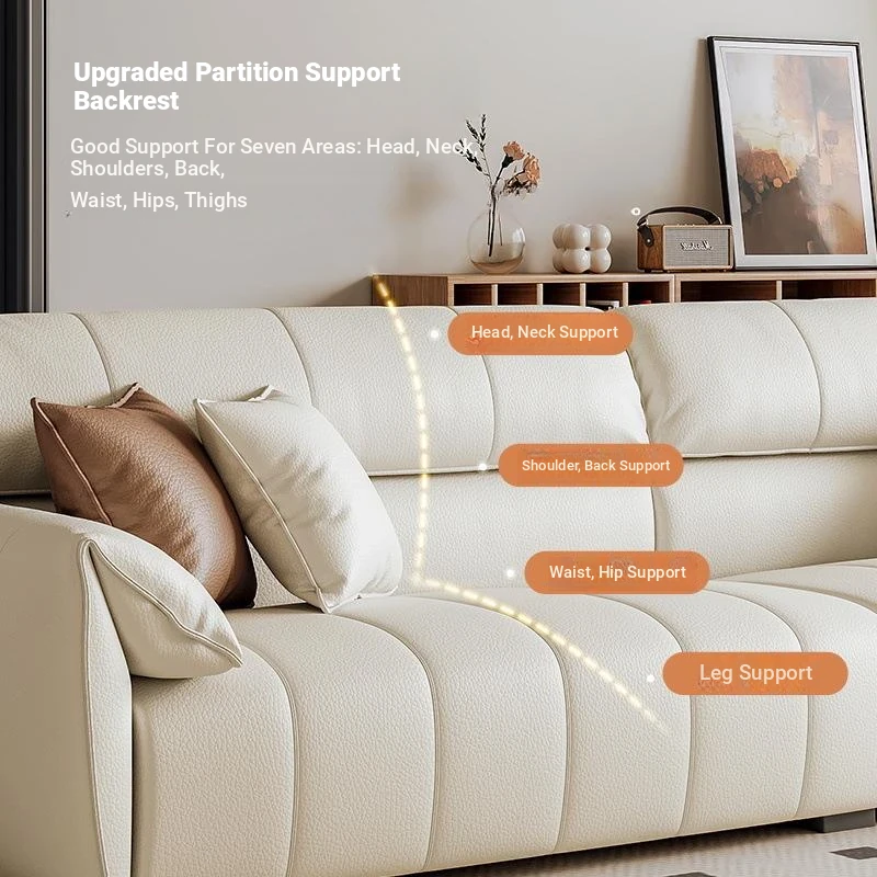 Tongyu Nordic Modern Minimalist Elephant Ear Cream Latex Straight Sofa - Premium Top Grain Leather Couch for Stylish Living Spaces