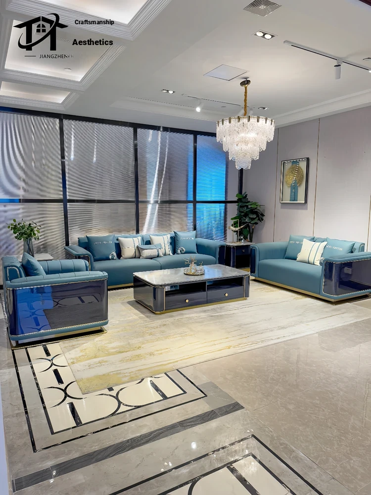 Italian Luxury Genuine Leather Sofa - Modern High-End Louvre Style, Perfect for Spacious Villas and Elegant Living Rooms. Experience Ultimate Comfort and Sophistication with Our Exquisite Design.
