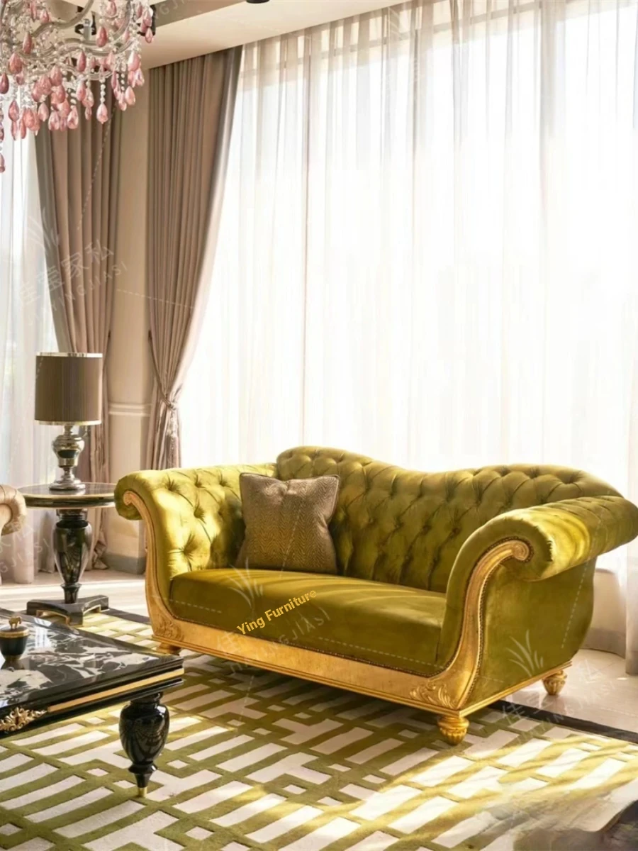 French Solid Wood Three-Seater Sofa - Nordic Classic Fabric Sofa Set for High-End Villas - Luxurious European Style Design