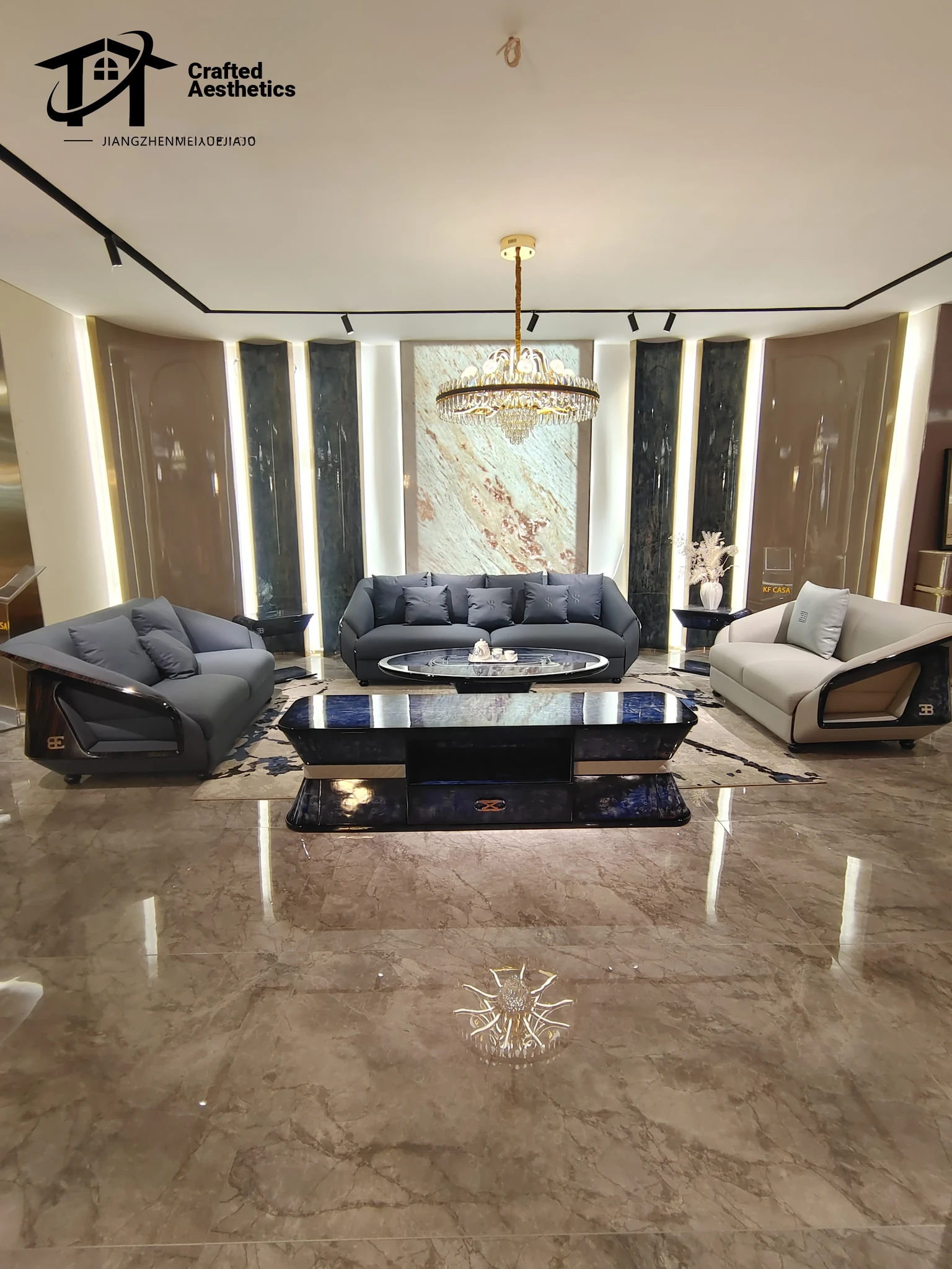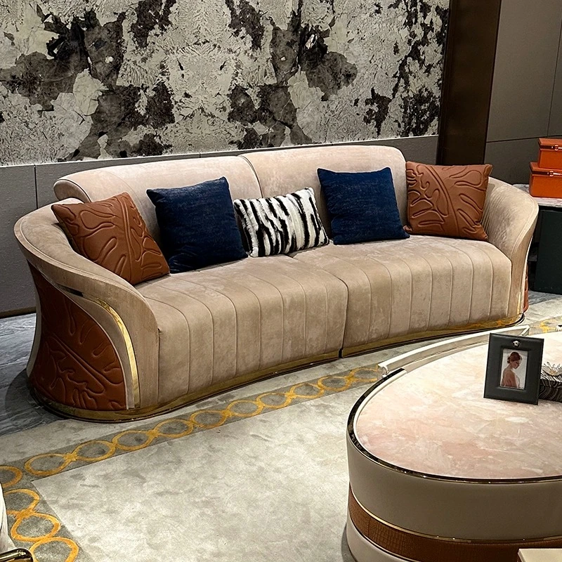 Italian Visionnaire Designer Velvet Leather Sofa - Luxury Italian High-End Villa Living Room Sofa Set