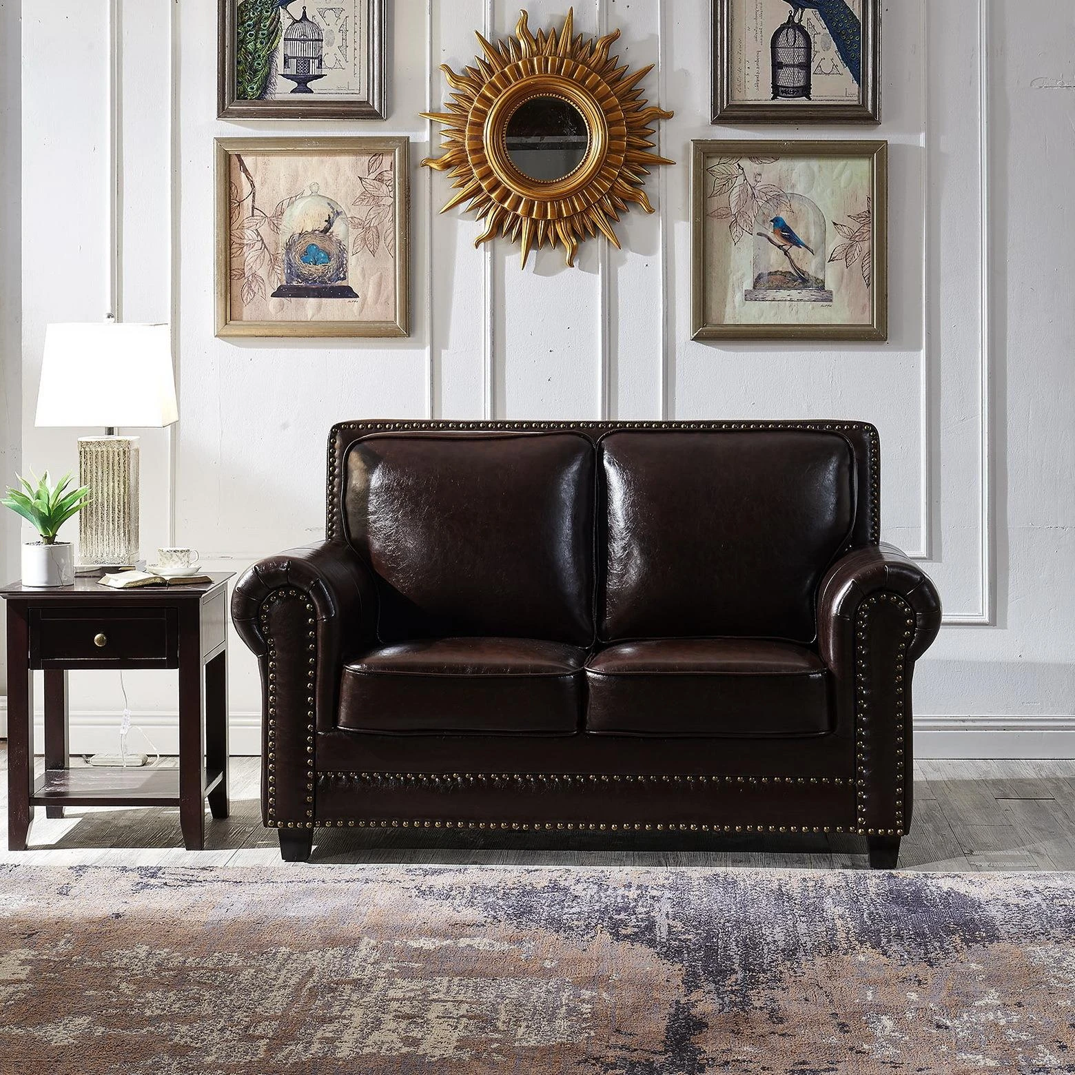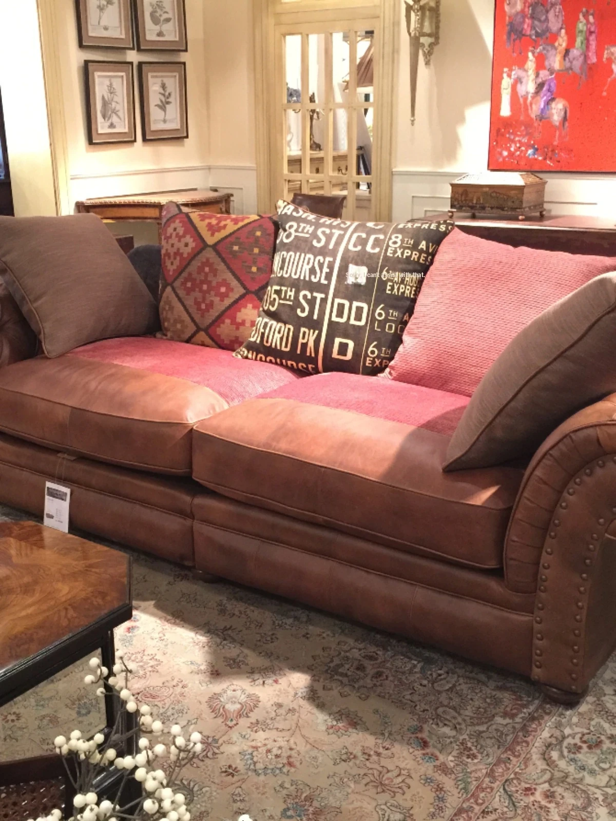 Genuine Imported Classic English Country Design Fabric and Leather Blend Brown Sofa for Your Living Room - Perfect for Cozy Home Aesthetics!