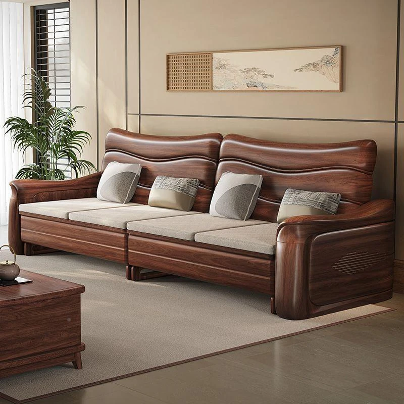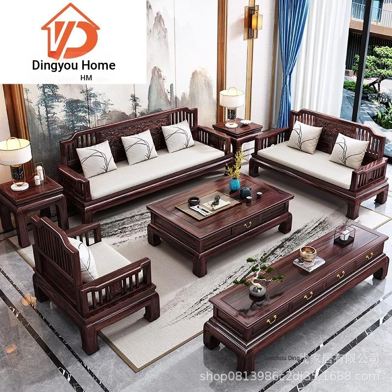 Modern New Chinese Style Solid Wood Sofa Set - 2025 Latest Design for Spacious Living Rooms and Villas, Crafted from Elegant Ebony Wood Furniture