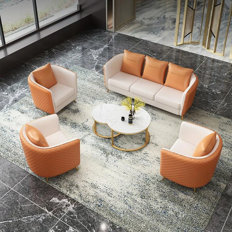 Nordic Style Leather Sofa Set for Beauty Salons - Elegant Reception and Lounge Seating for Commercial Spaces, Perfect for Client Meetings and Discussions