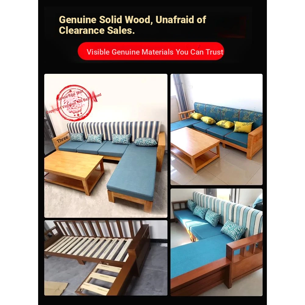 Modern Minimalist Solid Wood Sofa Set – New Chinese Style Full Solid Wood Living Room Furniture for Small Spaces, Natural Wood Finish