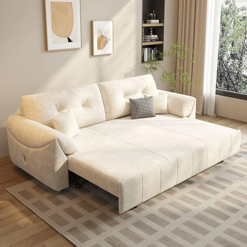 Compact Cream-Colored Tech Velvet Sofa Bed - Foldable 2-in-1 Design for Small Spaces with Storage - Perfect for Couples and Great Sale Offer!