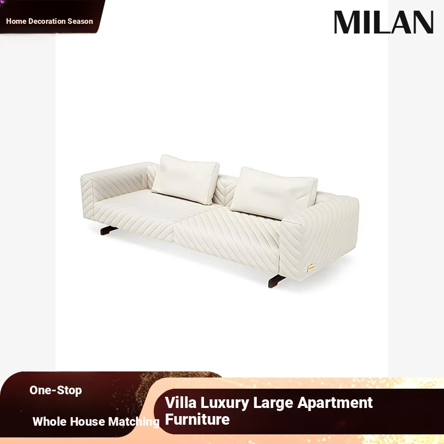 2024 New Luxury Modern Sofa for Villa Living Rooms – Stylish Straight-Line Fabric Sofa with High-End Design