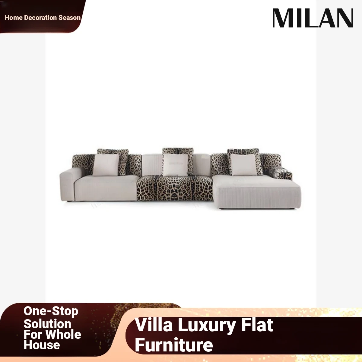 Italian Luxury High-End Genuine Leather Modular Sofa for Villa - Complete Soft Decoration Solution with Elegant Leopard Print Design