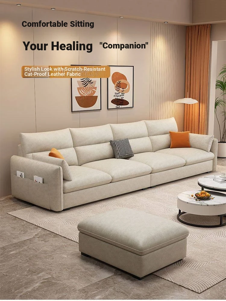 Modern Minimalist Straight-Line Sofa for Small Spaces - Easy Care, Stylish Fabric Couch for Living Room