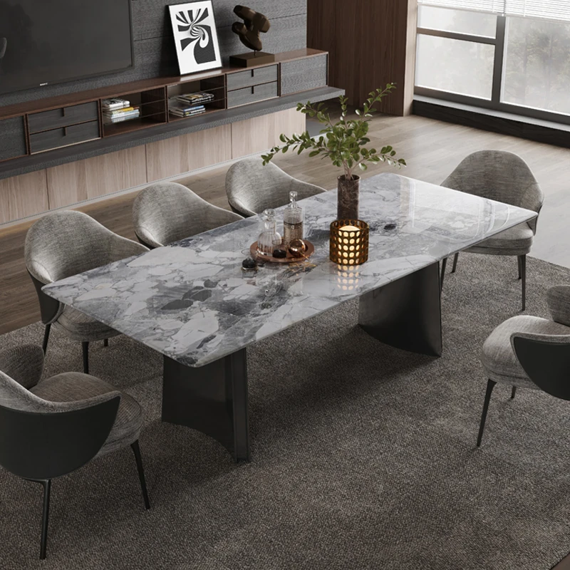 High-End Imported Natural Platinum Diamond Marble Rectangular Dining Table Set for Luxurious Villas - Perfect for Home and Elegant Dining Experiences
