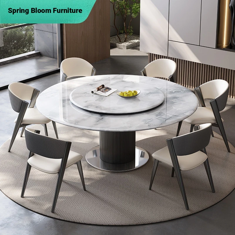 Luxury Round Natural Marble Dining Table with Built-in Rotating Turntable - Perfect for Villa Dining Rooms, Elevate Your Dining Experience with Elegant Design and Premium Quality.