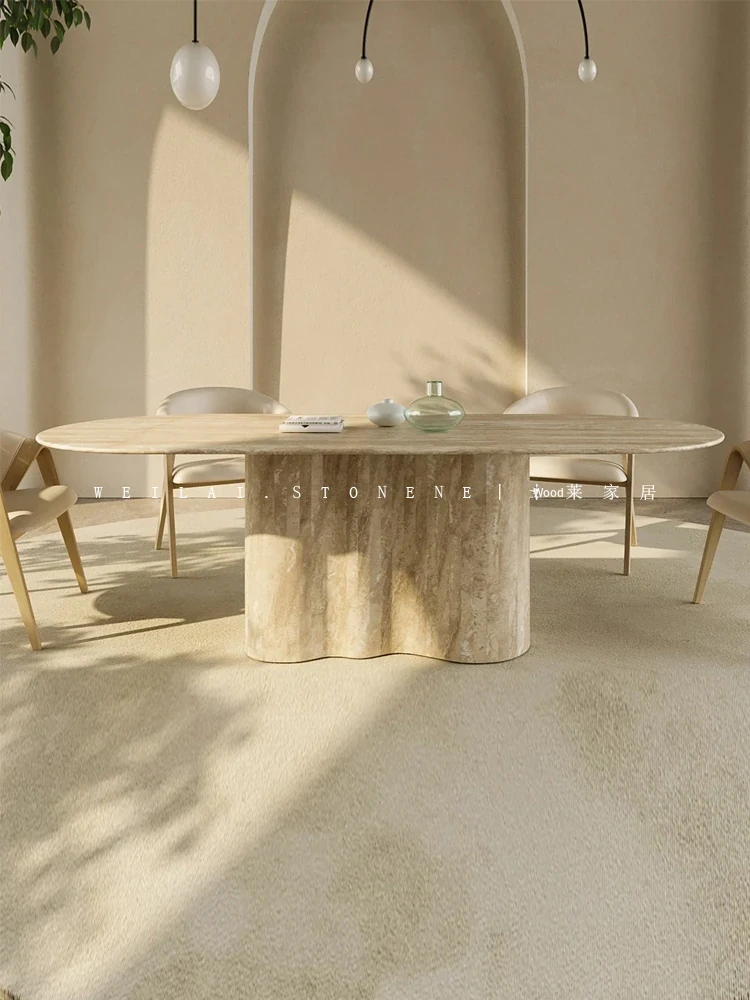 2025 New Luxury Natural Roman Cave Stone Dining Table - Artistic Long Table for Home Living Room, Perfect for Elegant Dining Experiences