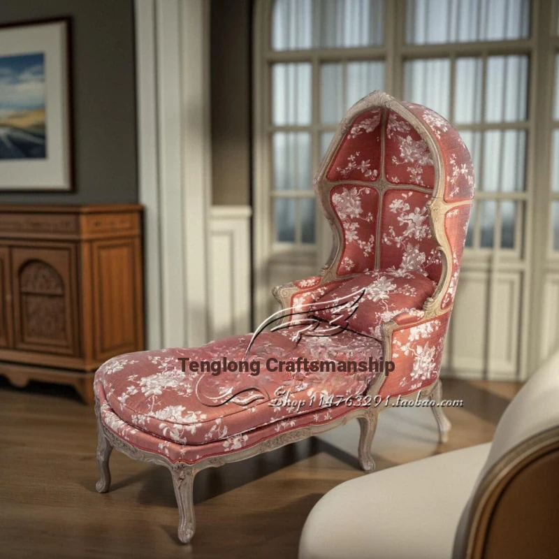 French Solid Wood Princess Chaise Lounge - Elegant Fabric Sofa for Living Room, High-End Vintage Style, Comfortable Lazy Chair
