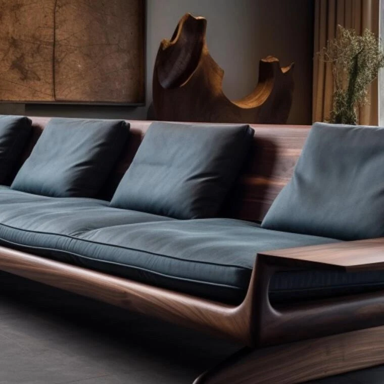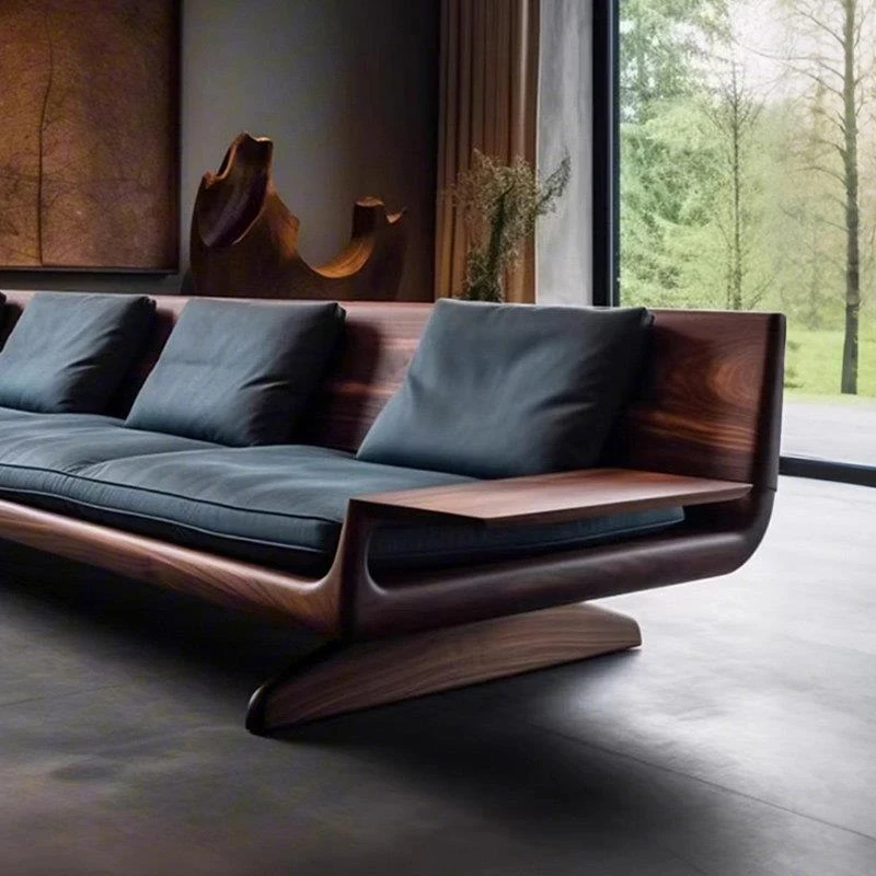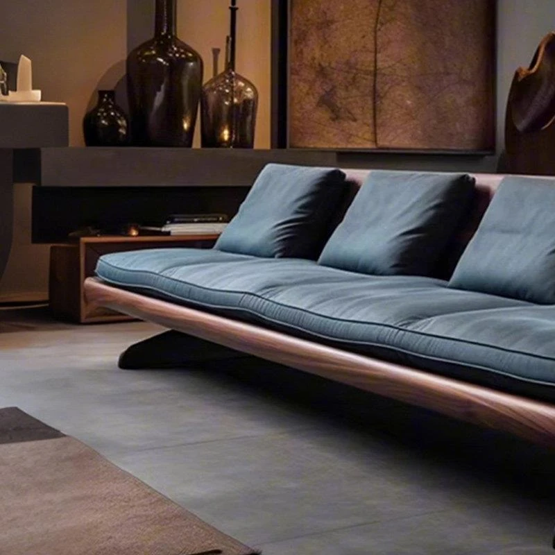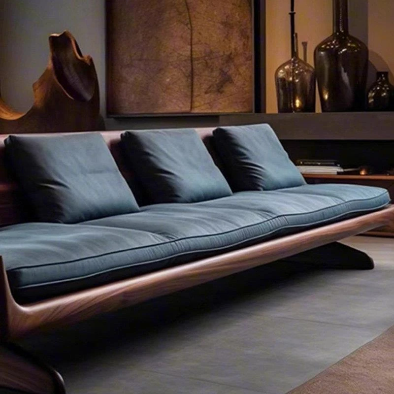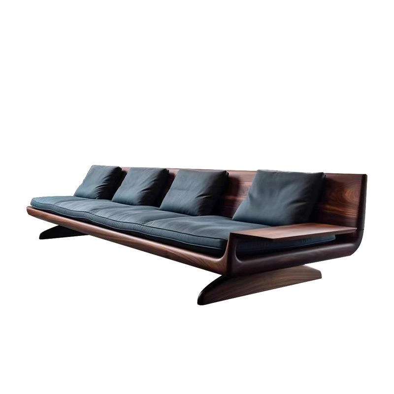 2025 New Zen Style Black Walnut Straight Sofa for Living Room - Perfect for Villas, Hotels, and Offices, Embrace Tranquility in Every Space!