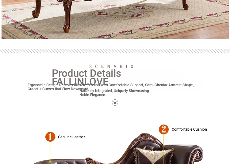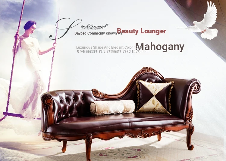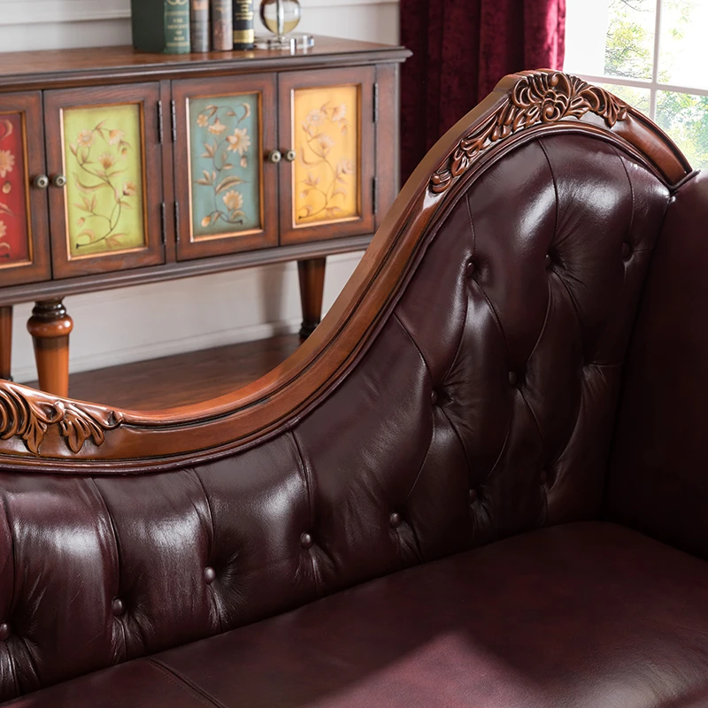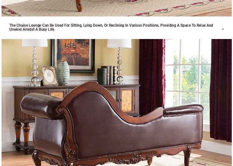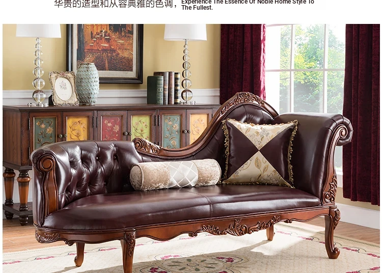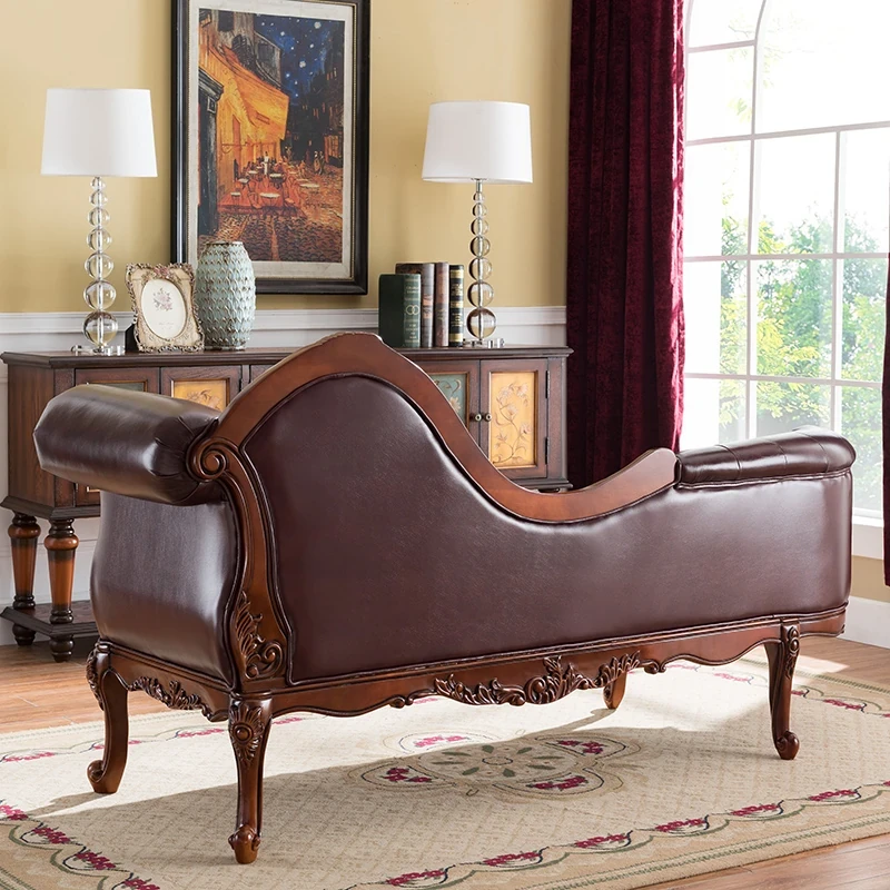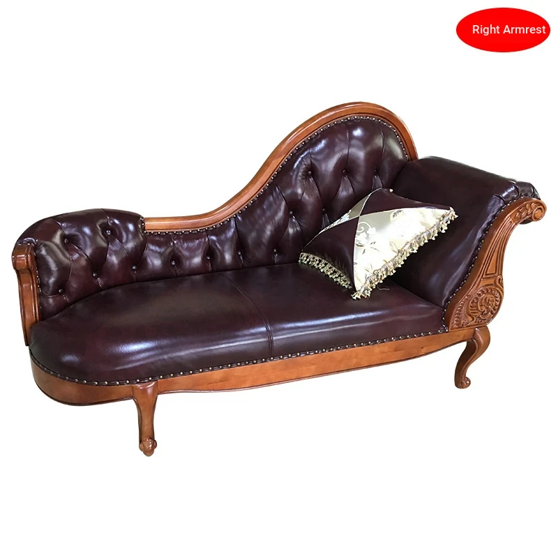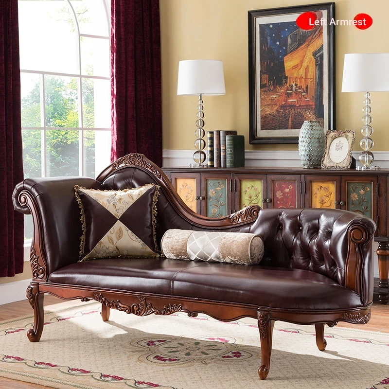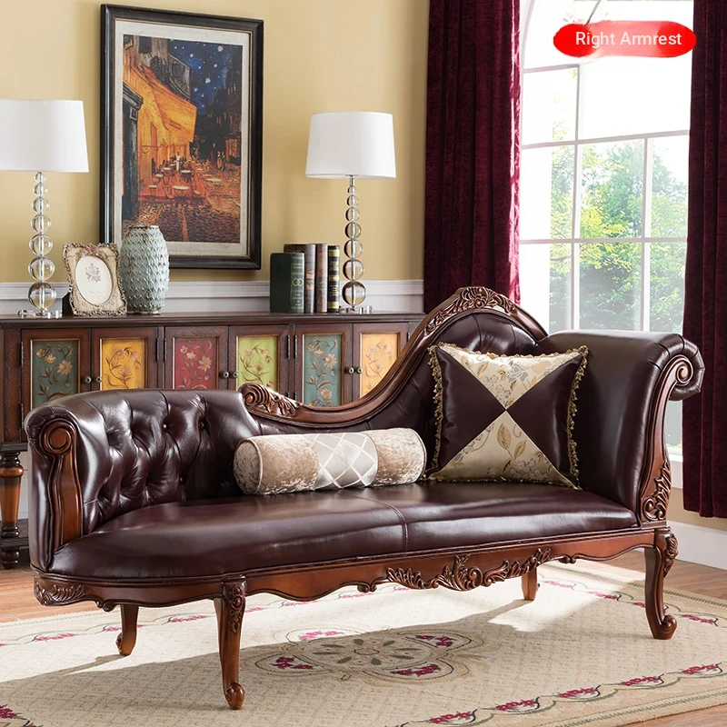 American Genuine Top Grain Leather Chaise Lounge - Solid Wood Single Sofa for Bedroom, European Style Living Room, Ideal for Small Spaces - Elegant Beauty Bed