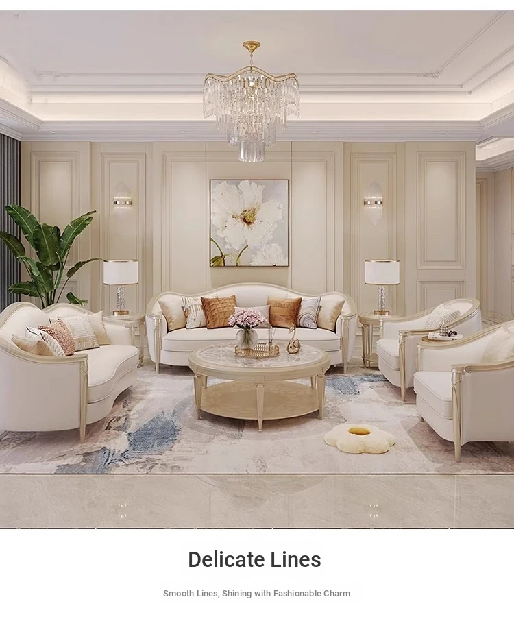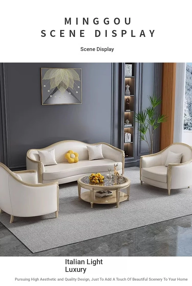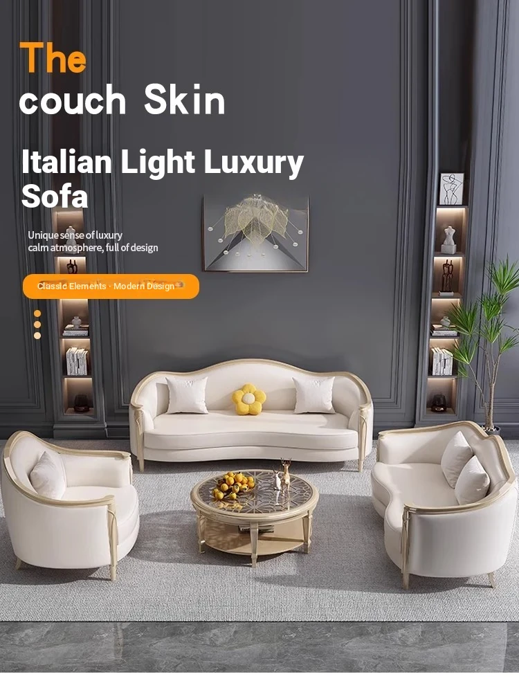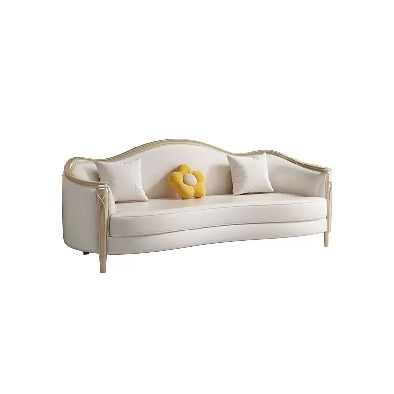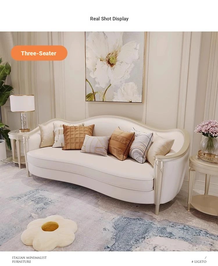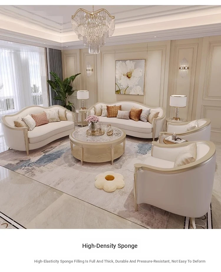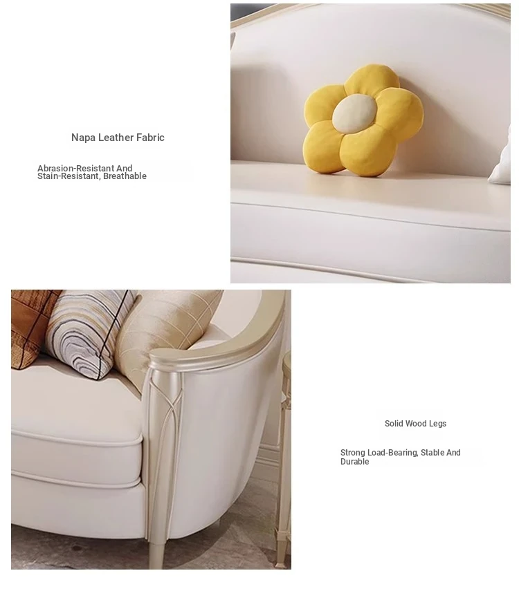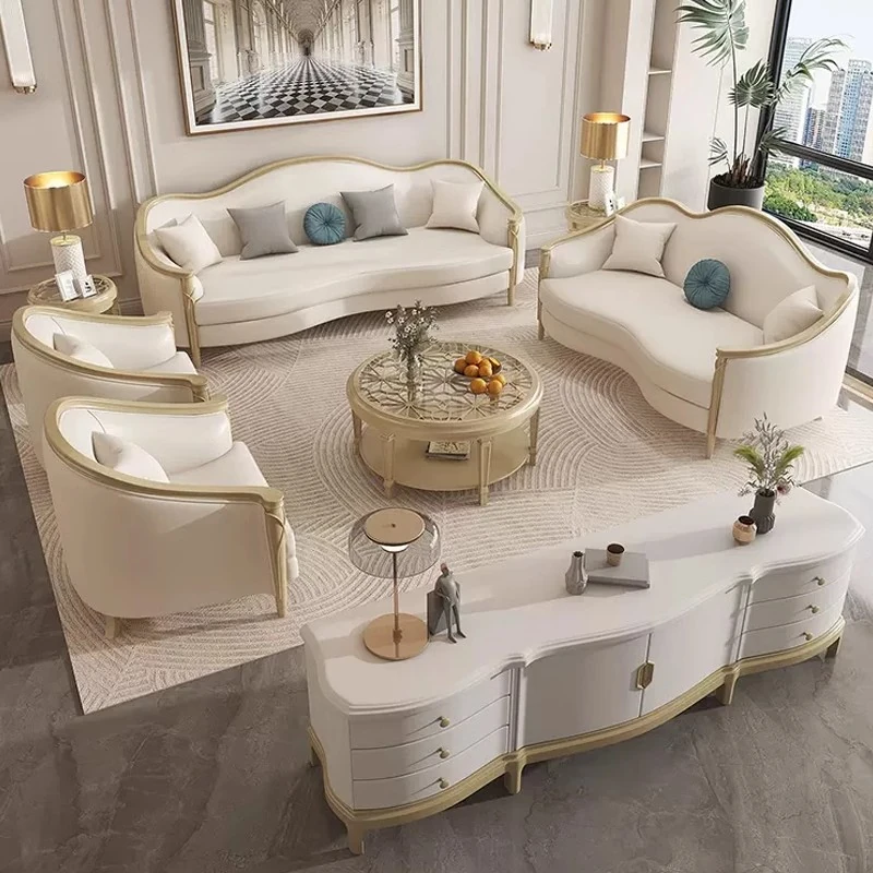 American Luxury Solid Wood Sofa Set - Premium Leather Living Room Furniture for High-End Villas, European Style Complete Home Decor