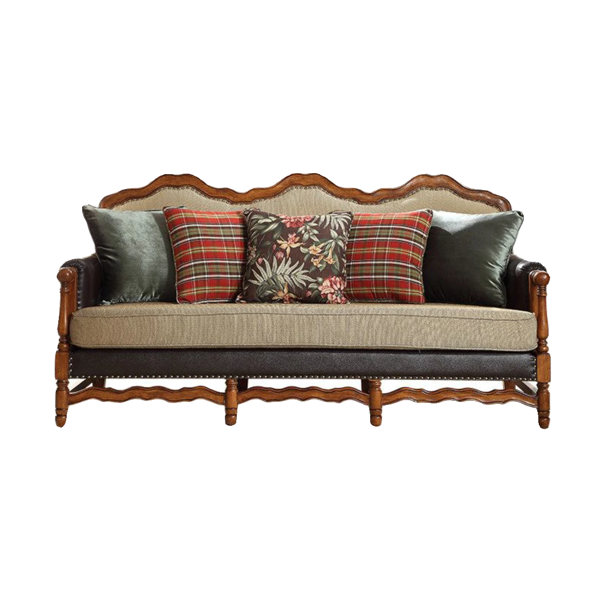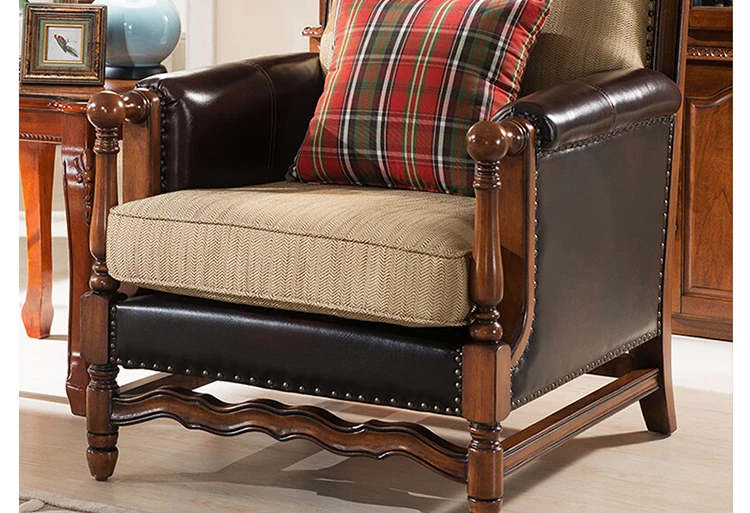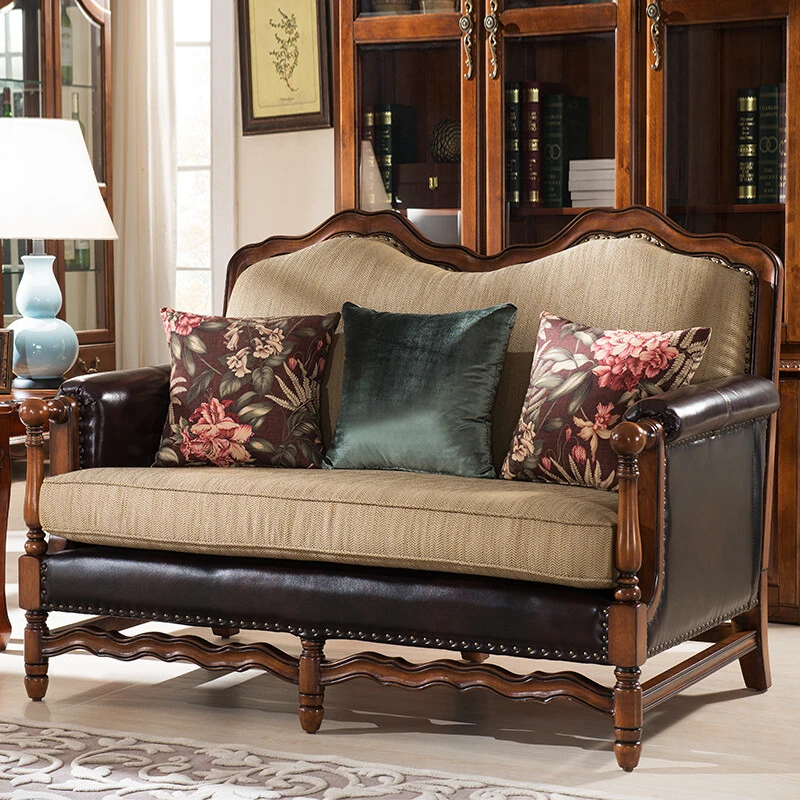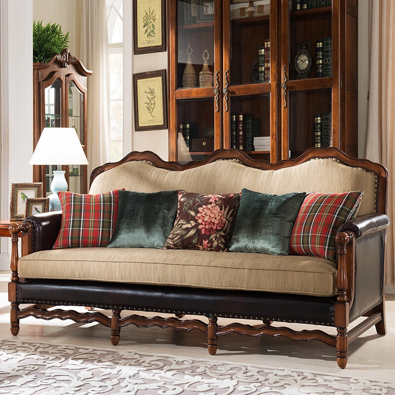 American Rustic Solid Wood Fabric Sofa Set - Stylish 3-Seater for Modern European Homes, Perfect for Small Spaces and Luxurious Living Rooms