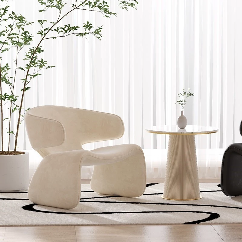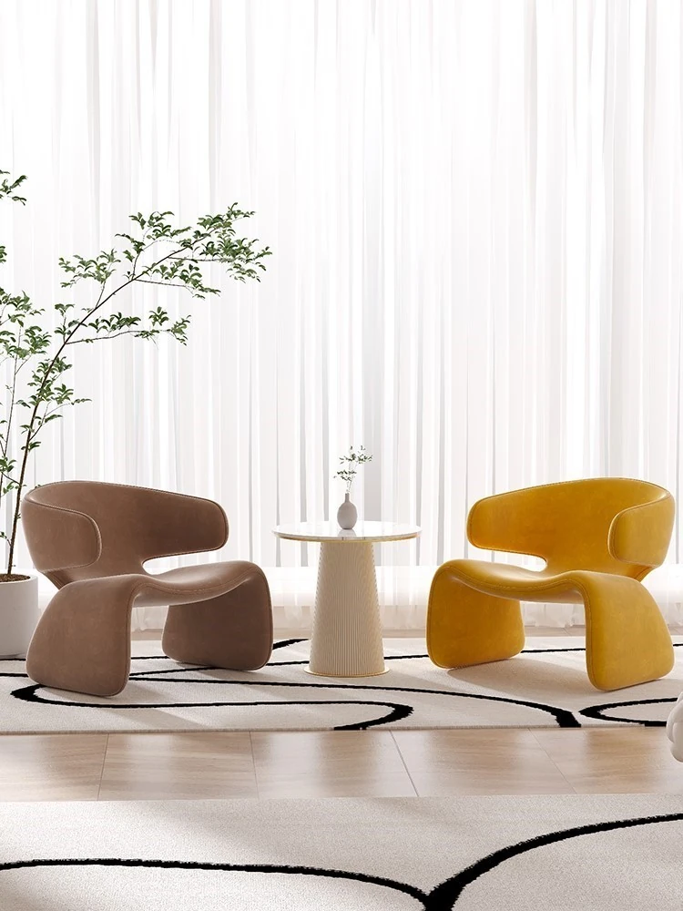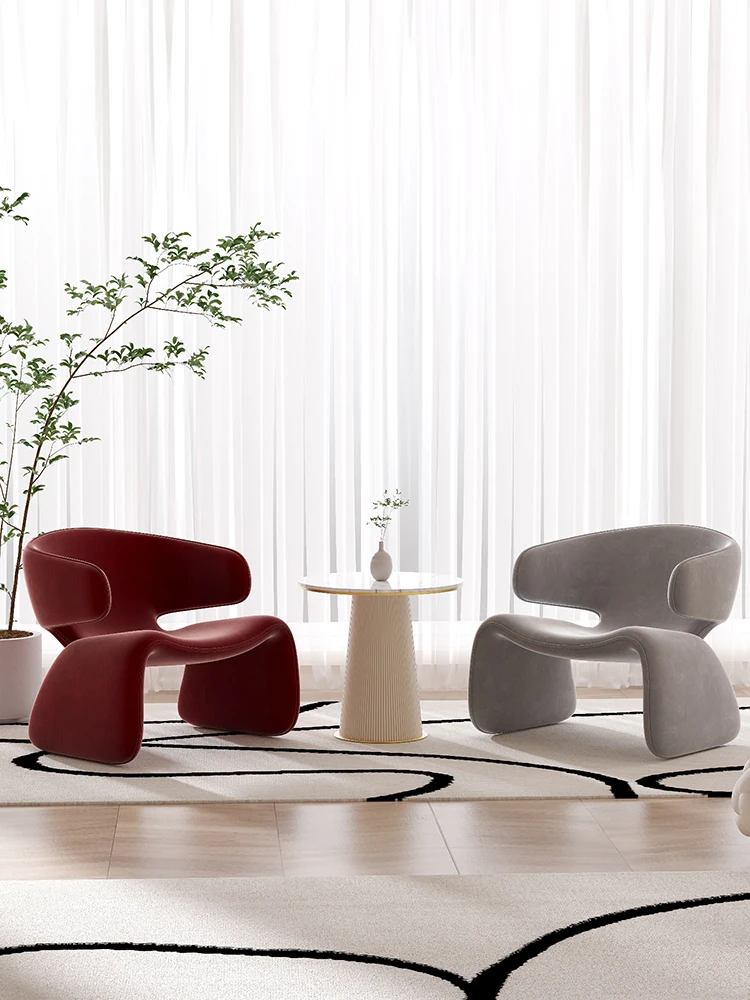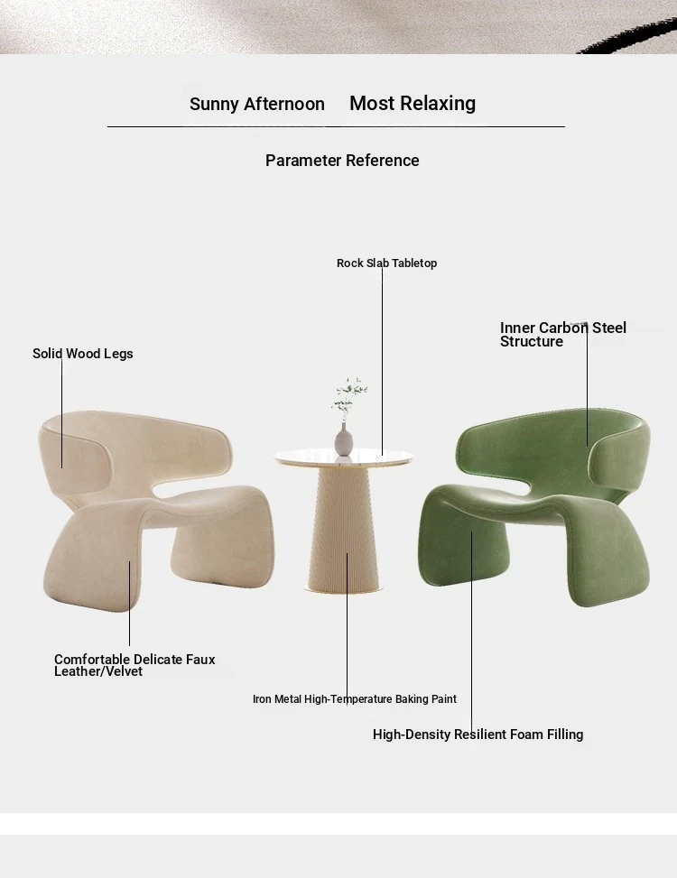 Chic Single Sofa Chair for Living Room – Stylish Balcony & Reception Area Seating – Trendy Hotel Lounge Table and Chair Set for Creative Conversations and Relaxation