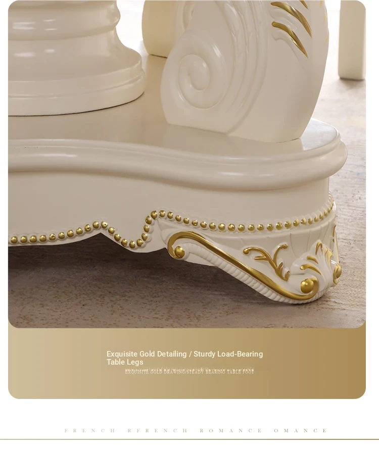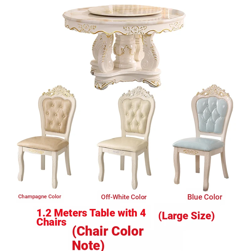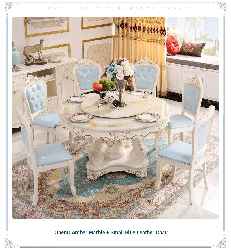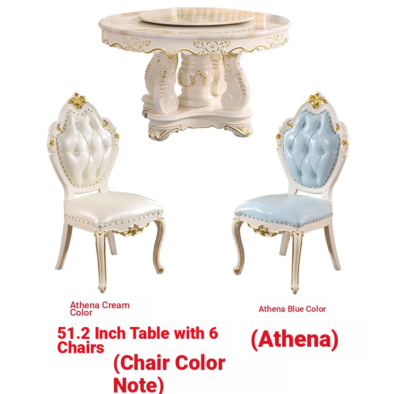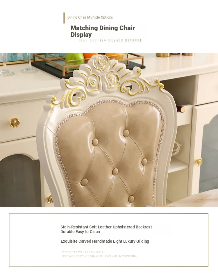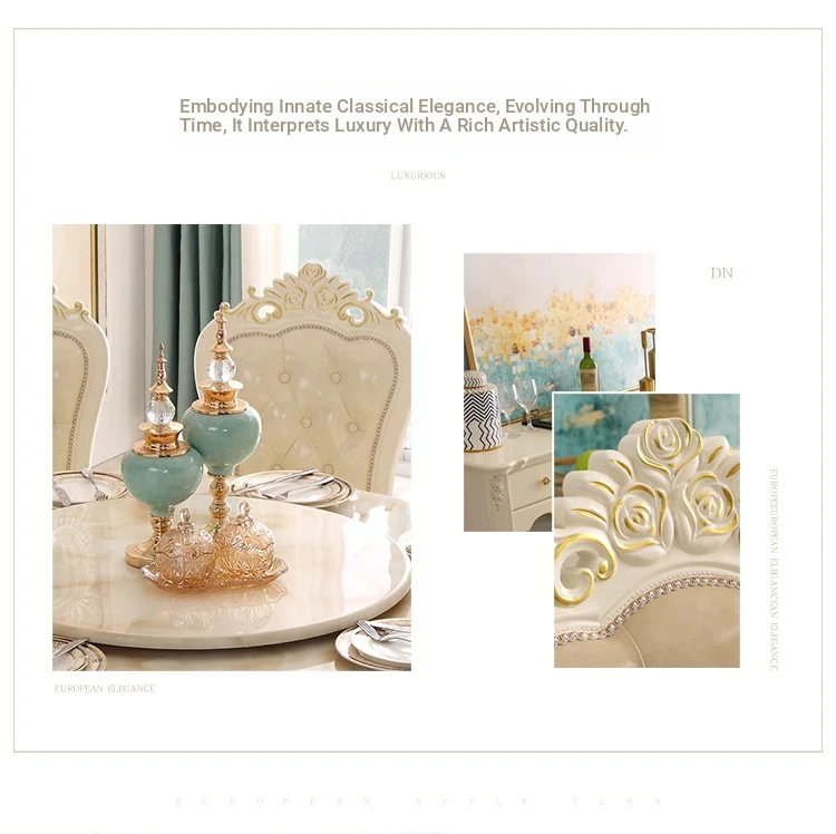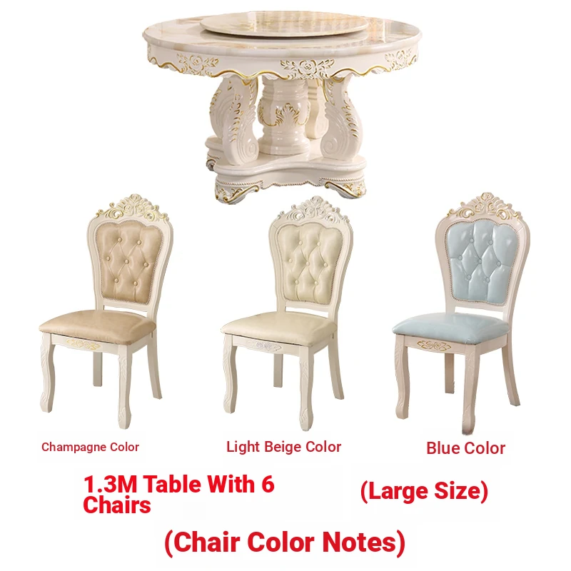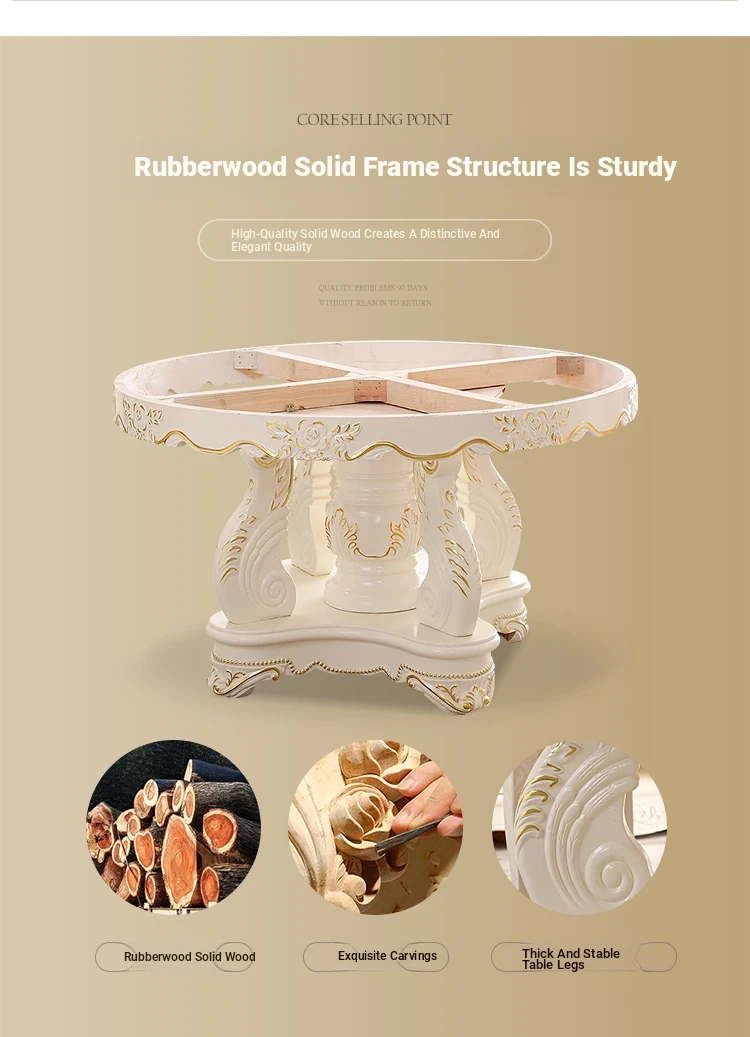 Elegant European Style Marble Round Dining Table Set with Lazy Susan - Luxurious Carved Solid Wood Table for 6-8 People, Perfect for Home Dining Experience