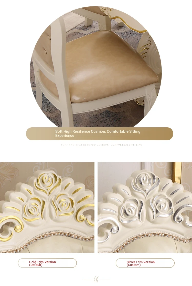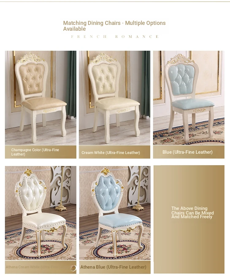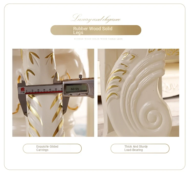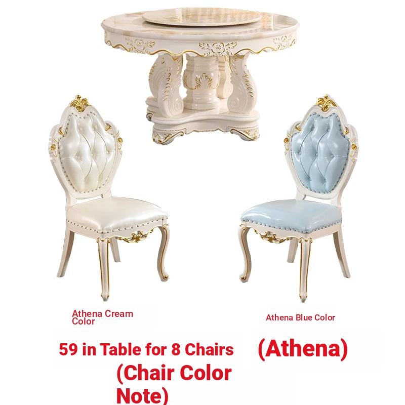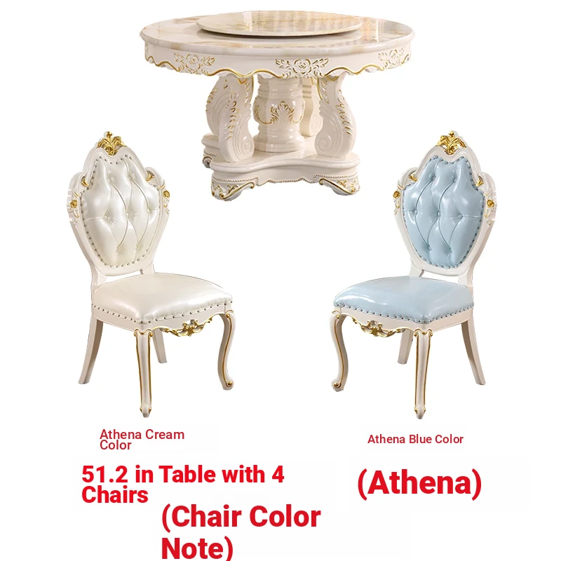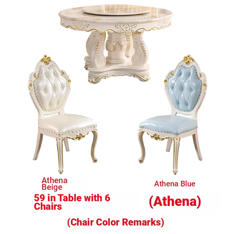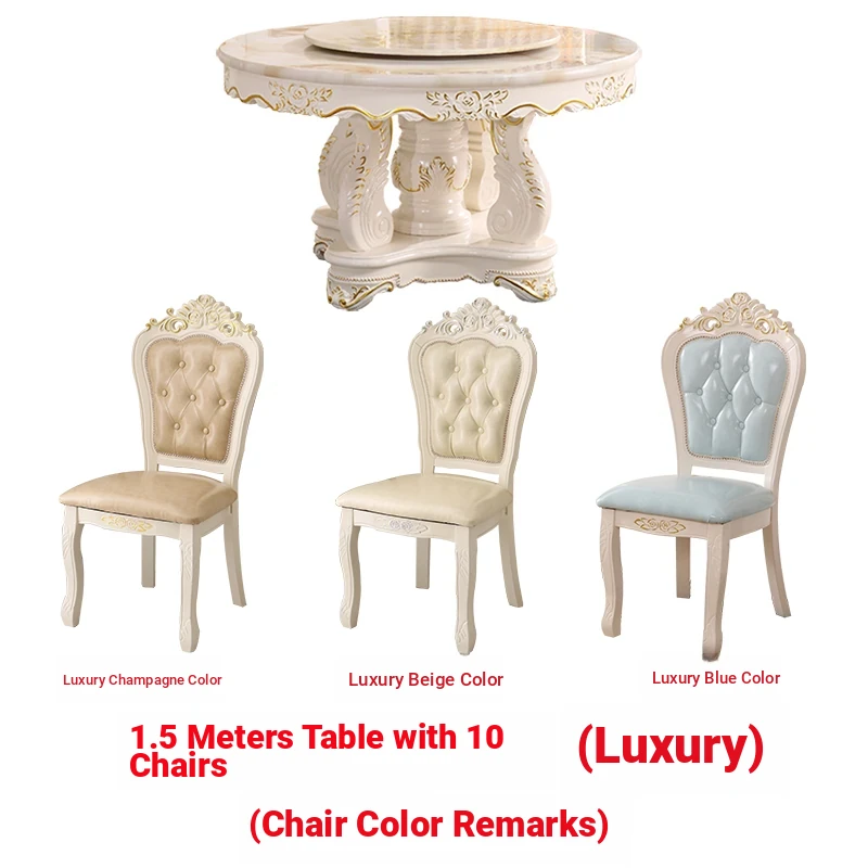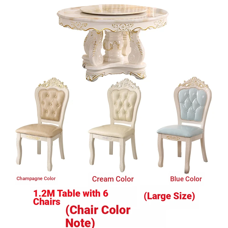 Elegant European Style Marble Round Dining Table Set with Lazy Susan - Luxurious Carved Solid Wood Table for 6-8 People, Perfect for Home Dining Experience