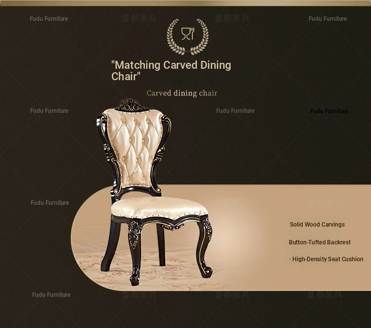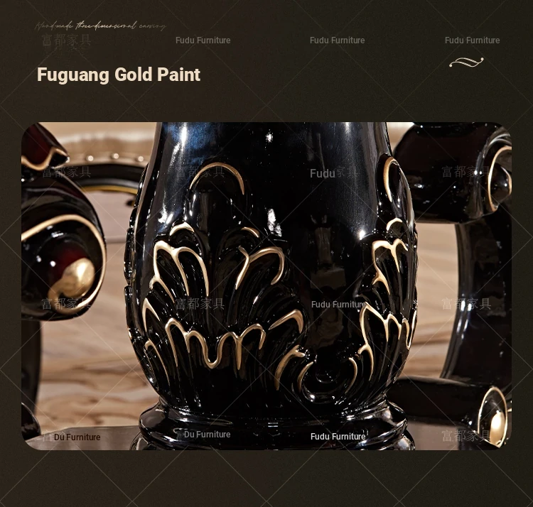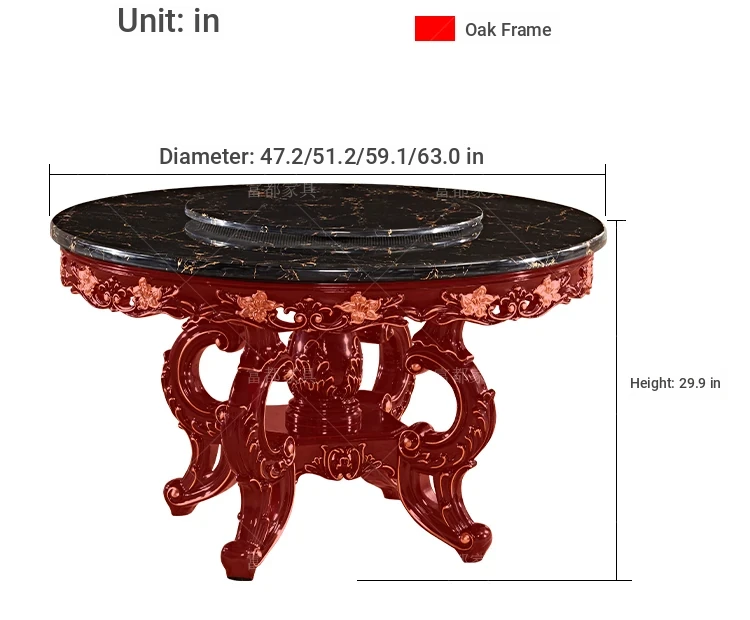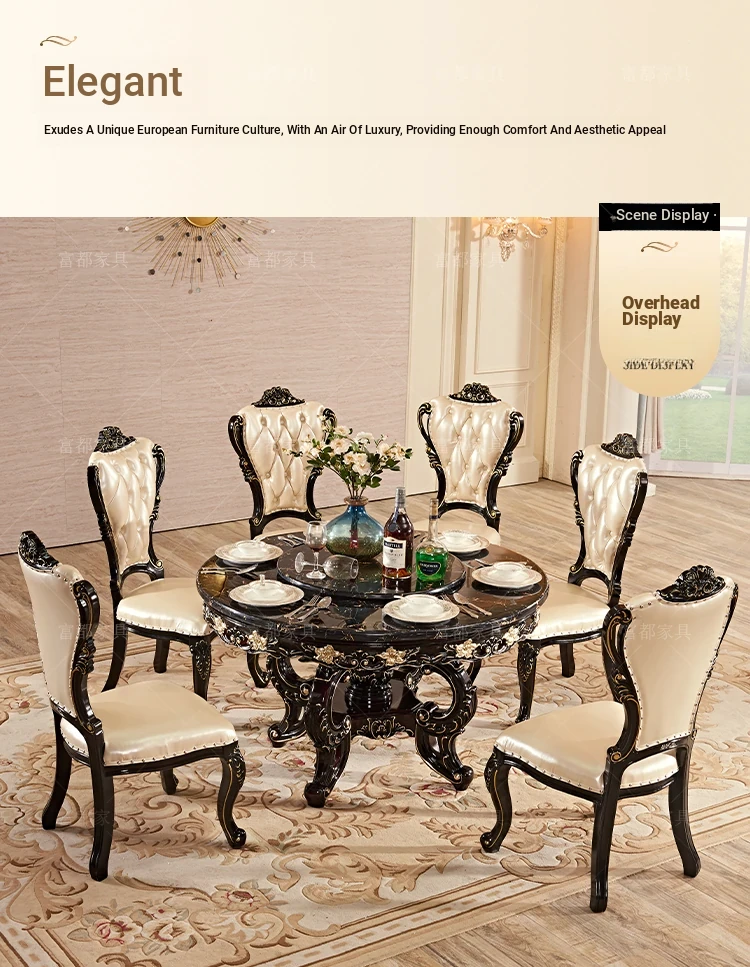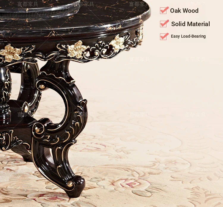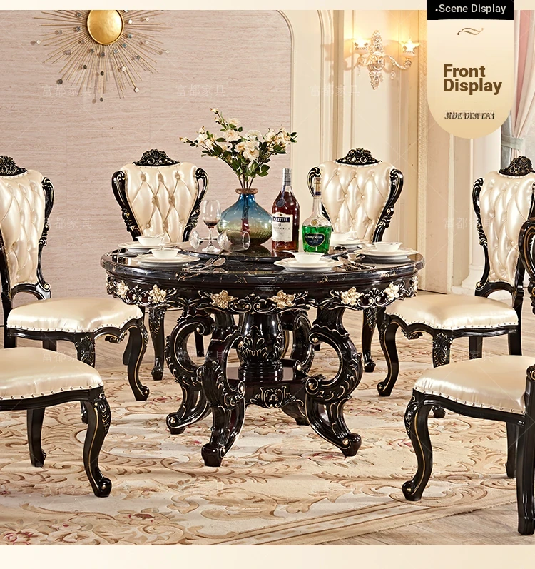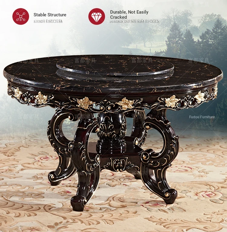Elegant European Style Round Dining Table Set with Solid Wood Carved Chairs, Black Rosewood Finish, Includes Lazy Susan - Perfect for Your Dining Room!