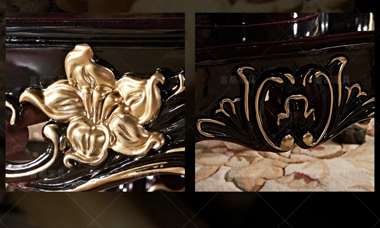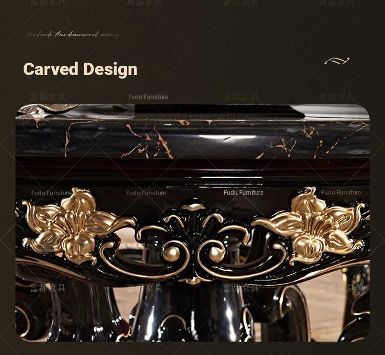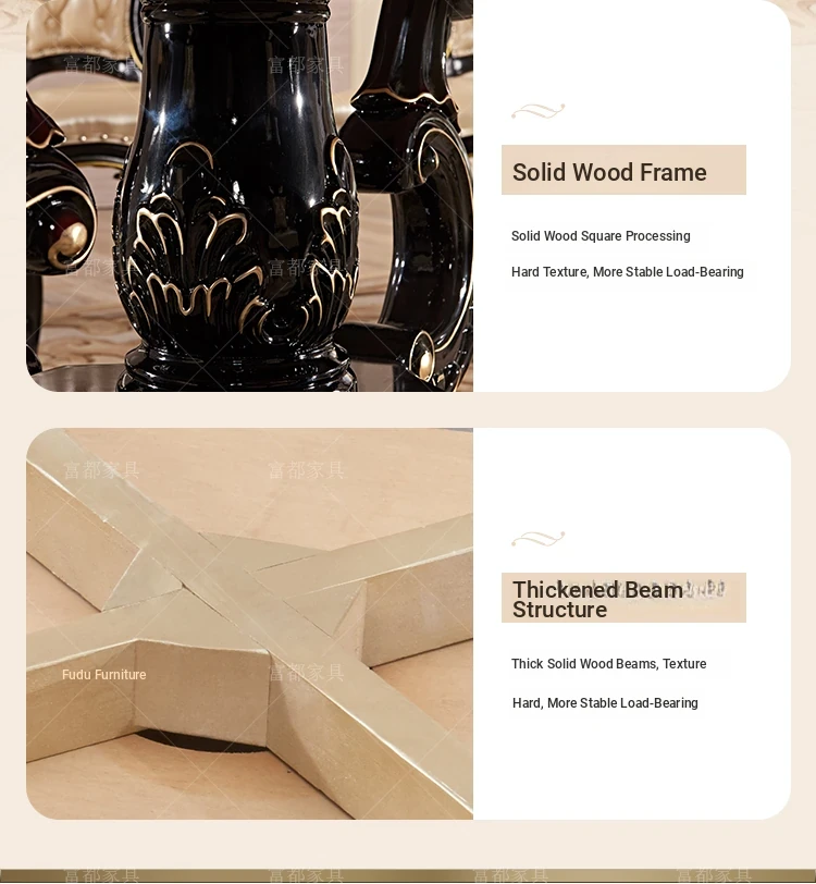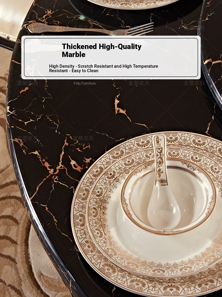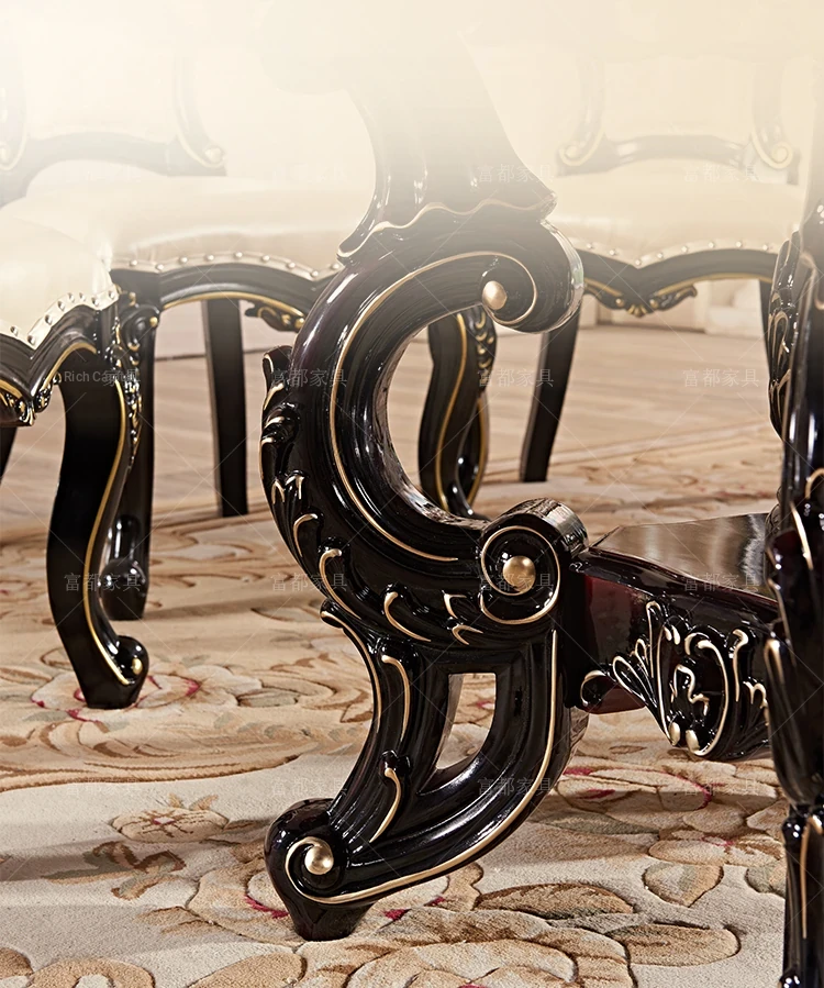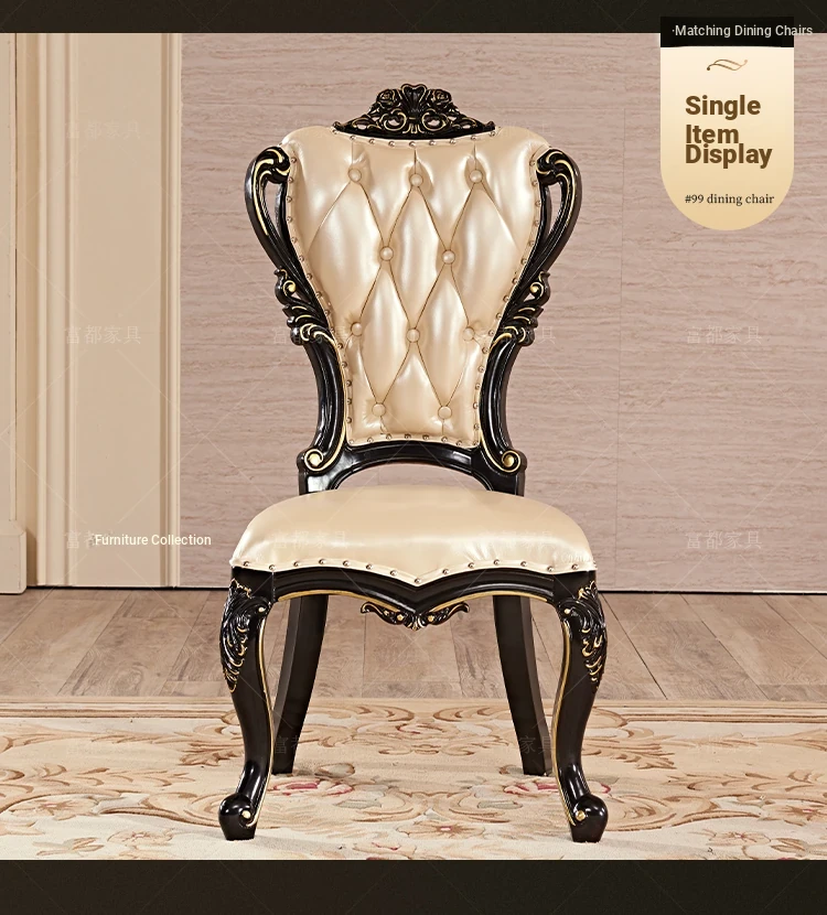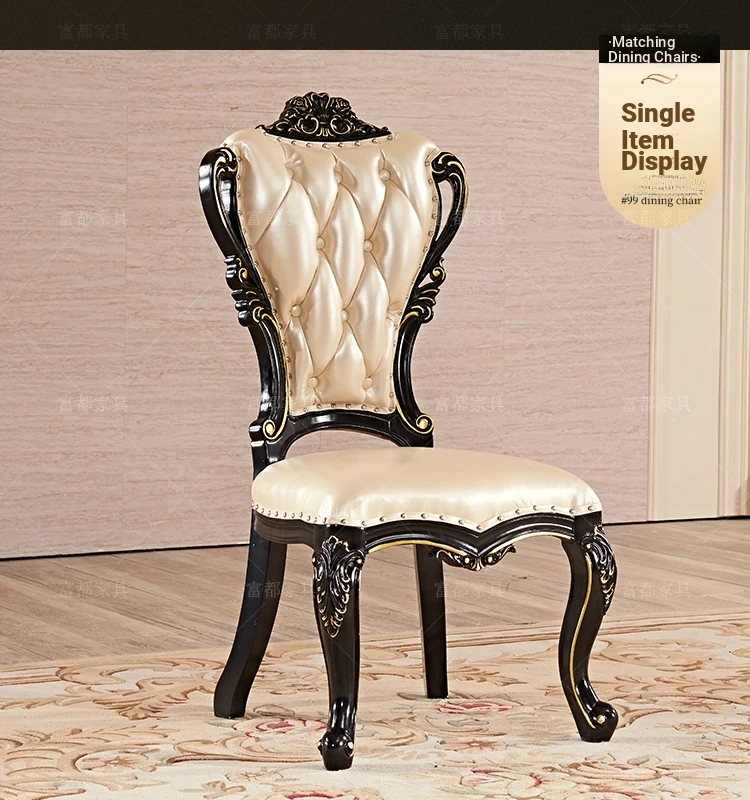 Elegant European Style Round Dining Table Set with Solid Wood Carved Chairs, Black Rosewood Finish, Includes Lazy Susan - Perfect for Your Dining Room!