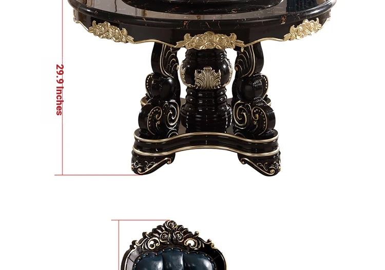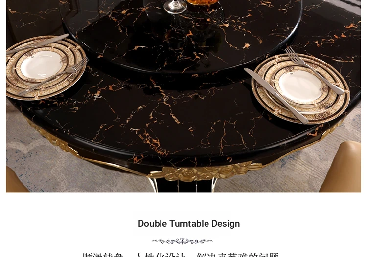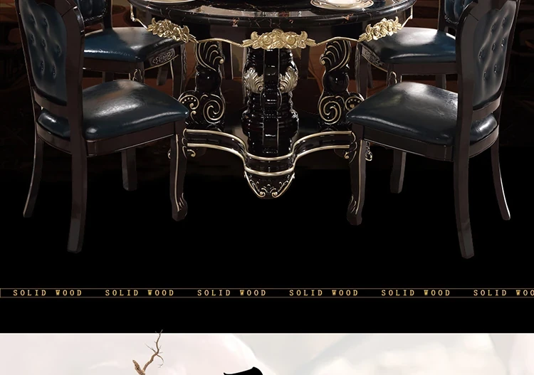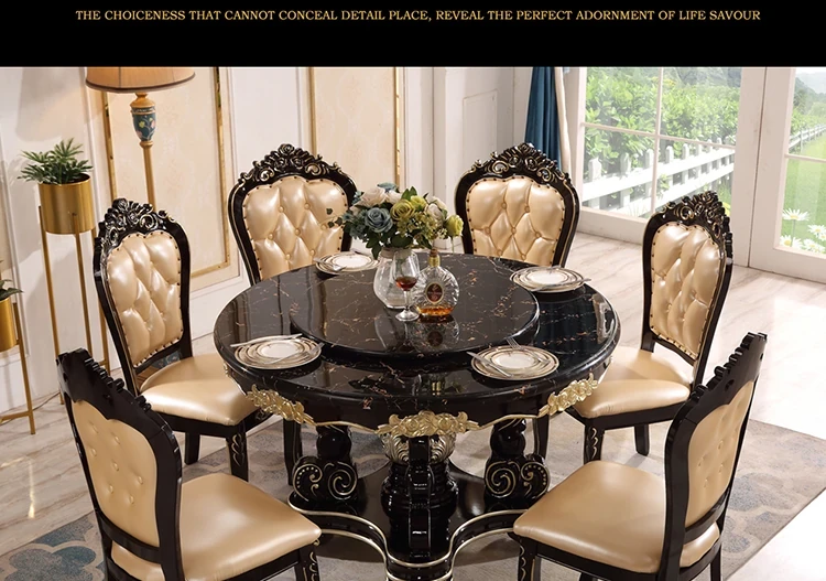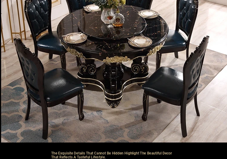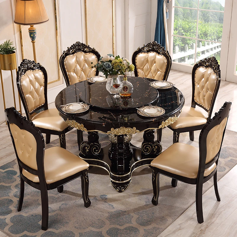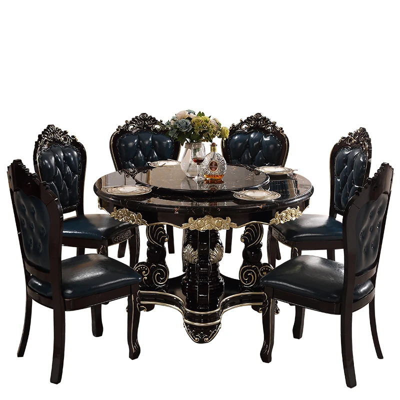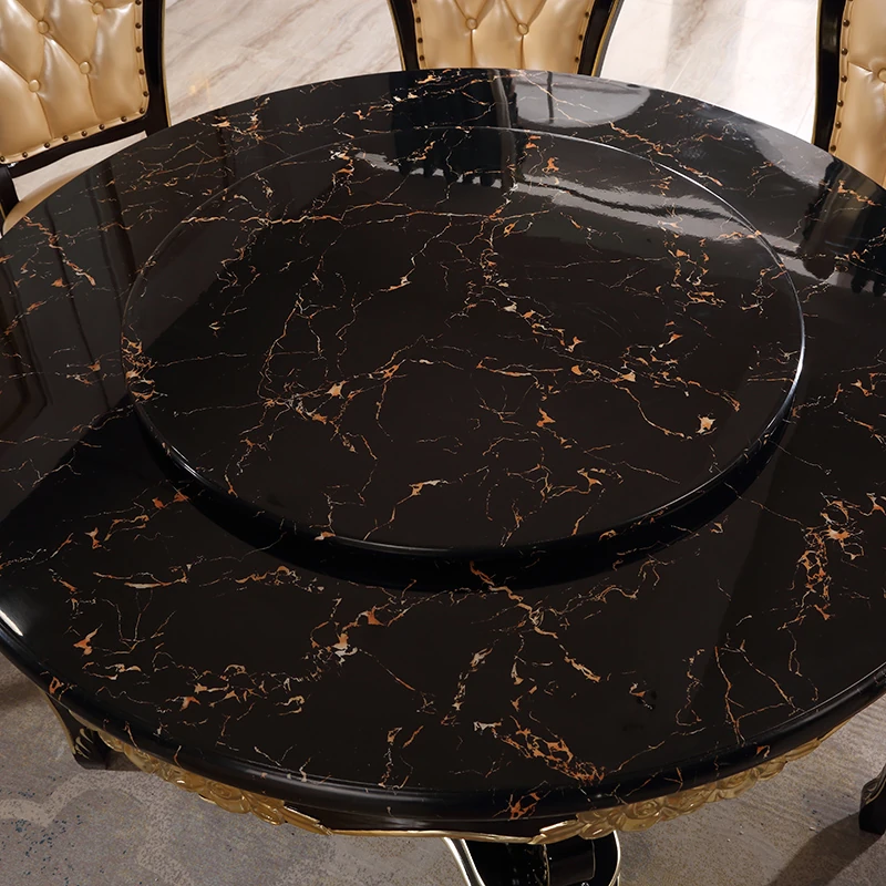 Elegant European-Style Dining Table and Chair Set - American Marble Round Table with Rotating Base, Black Walnut Finish, Solid Wood for Home Use, Perfect for Family Meals