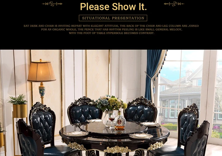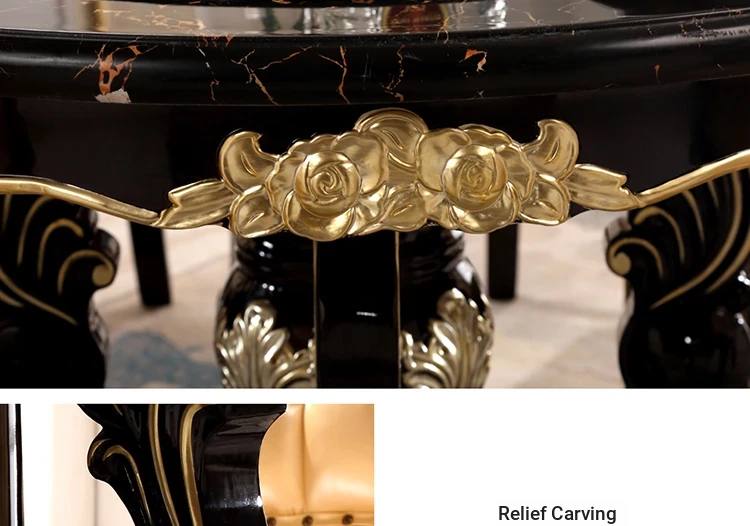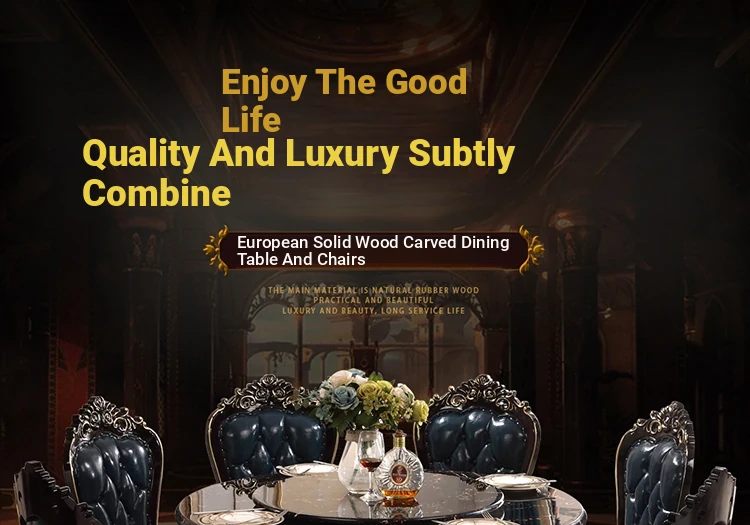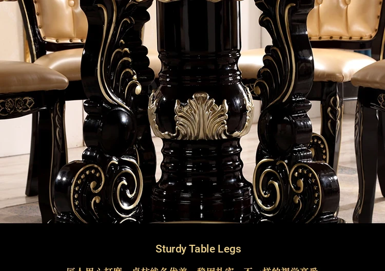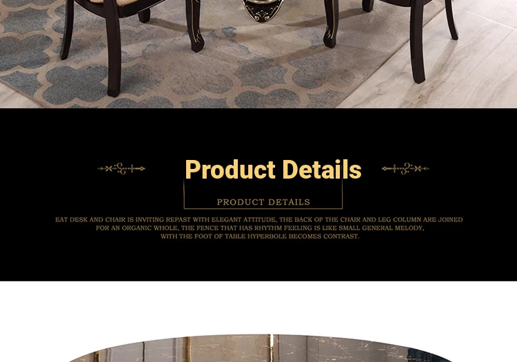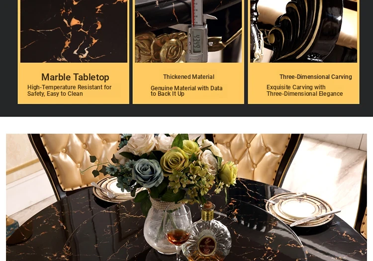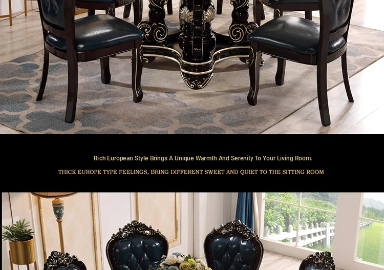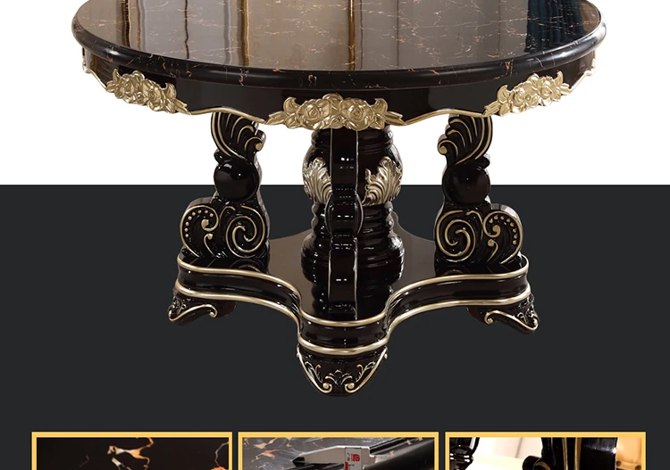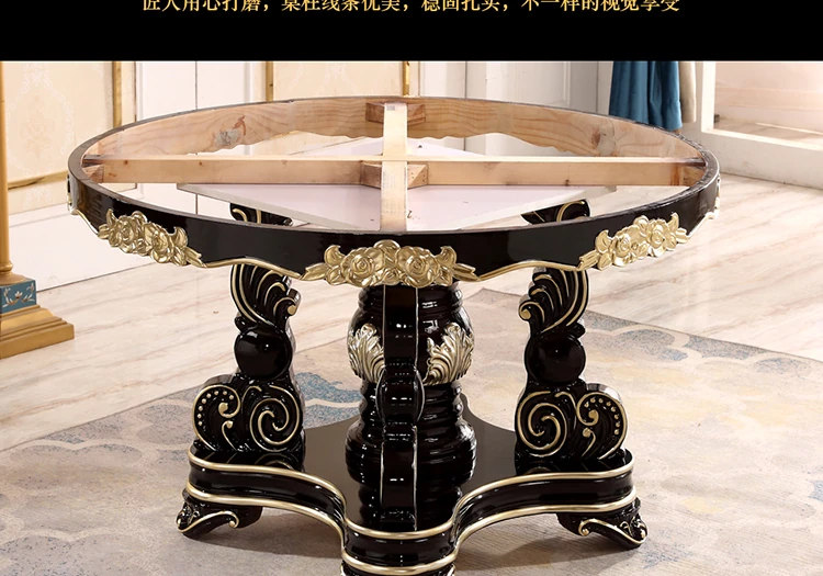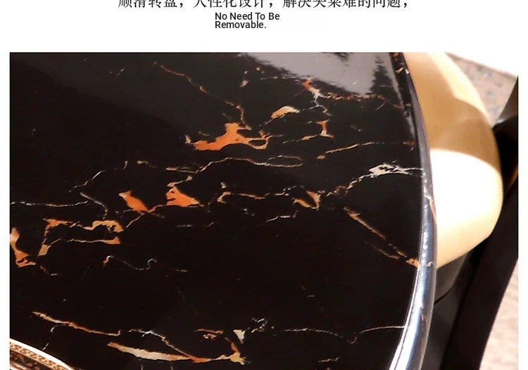 Elegant European-Style Dining Table and Chair Set - American Marble Round Table with Rotating Base, Black Walnut Finish, Solid Wood for Home Use, Perfect for Family Meals