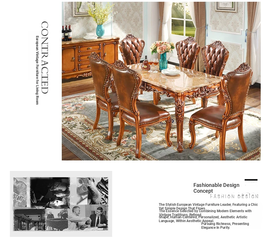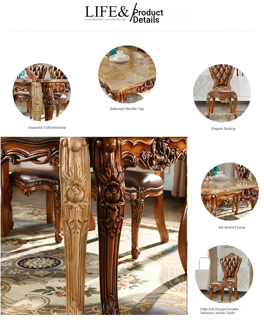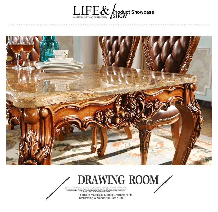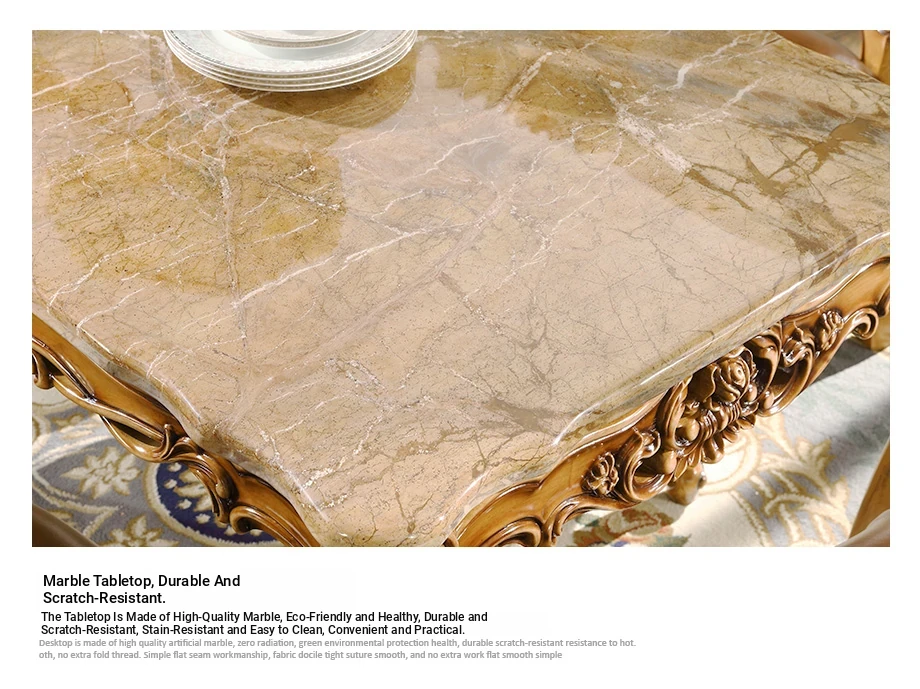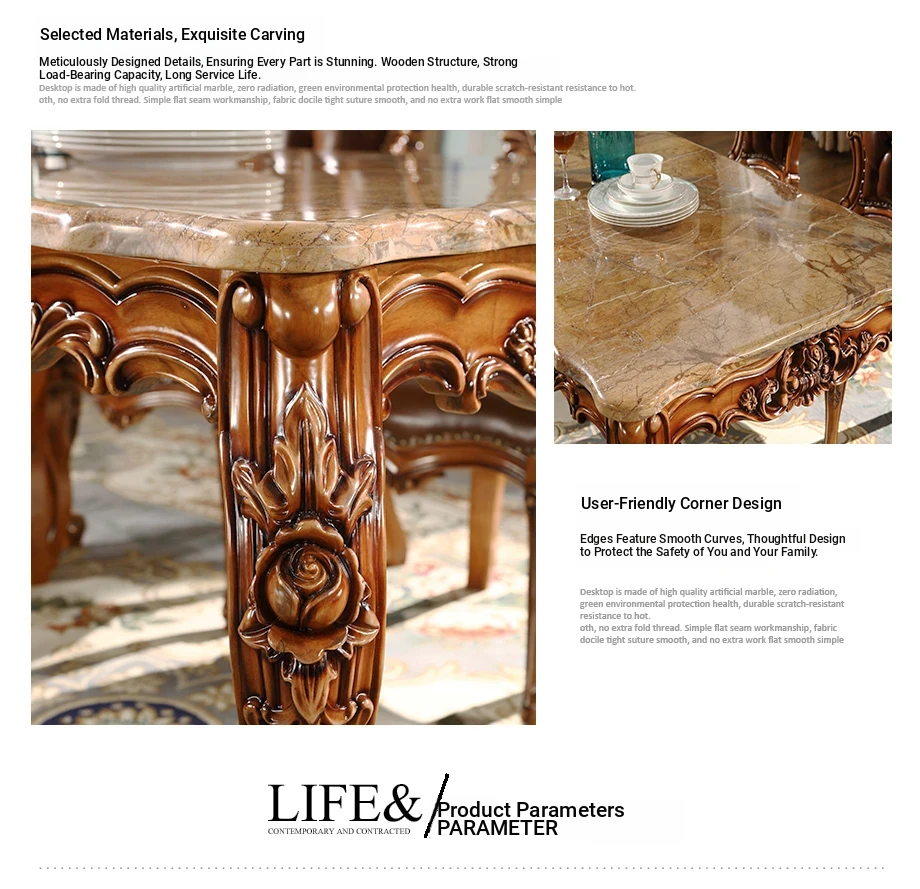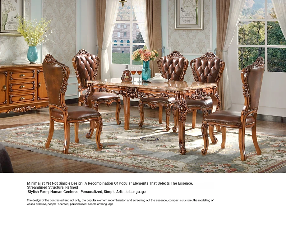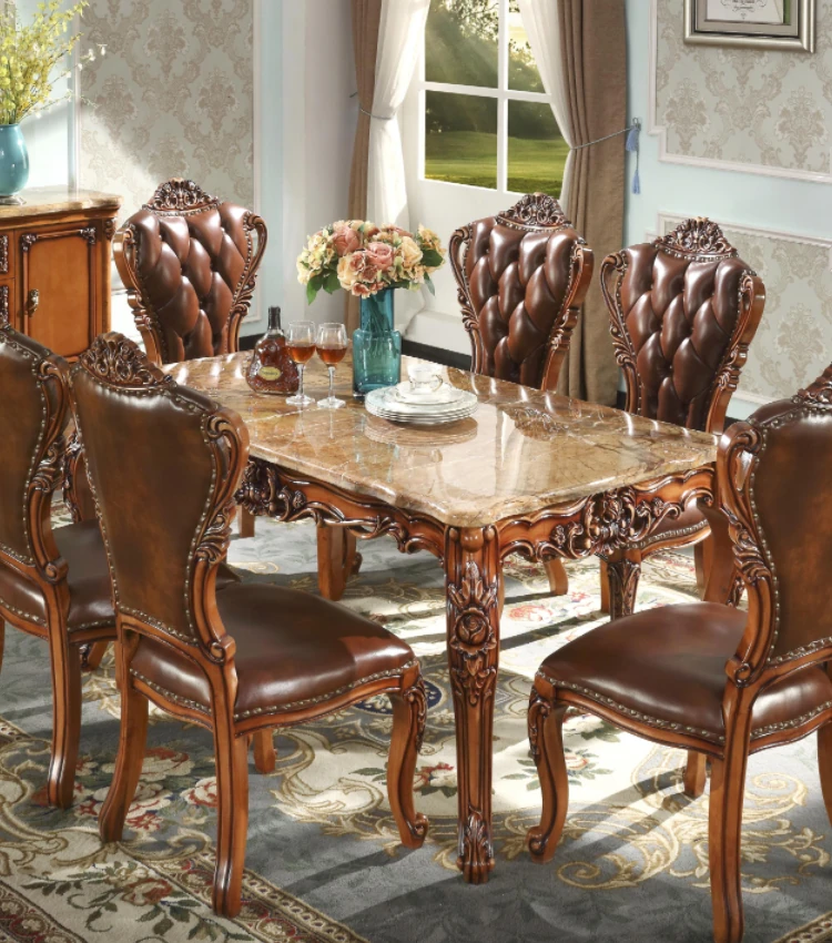 Elegant European-Style Natural Marble Dining Table - Rectangular 1.8m Solid Wood American Design with Chairs for Small Spaces - Perfect for Cozy 2m Dining Areas