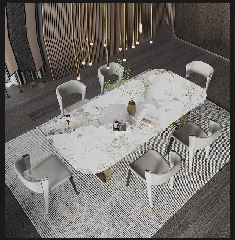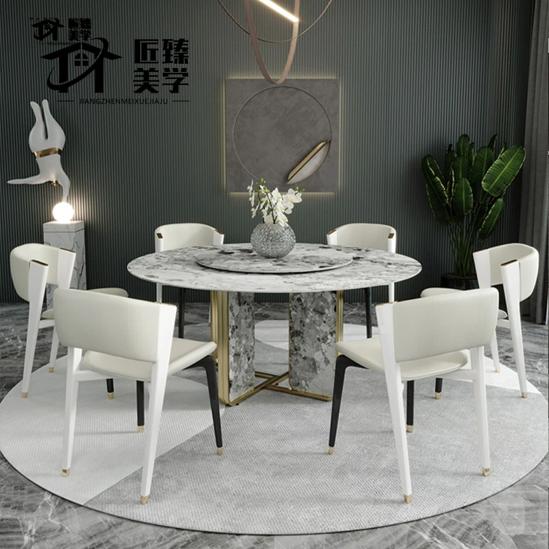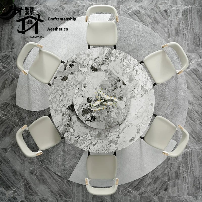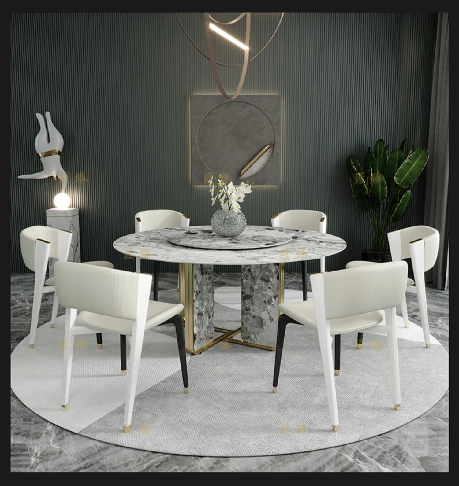 Elegant Italian Luxury Stone Round Dining Table with Lazy Susan – Modern Nordic Minimalist Rectangular Marble Dining Chair Set