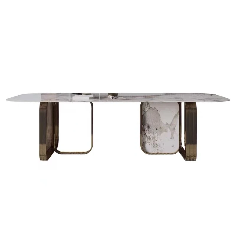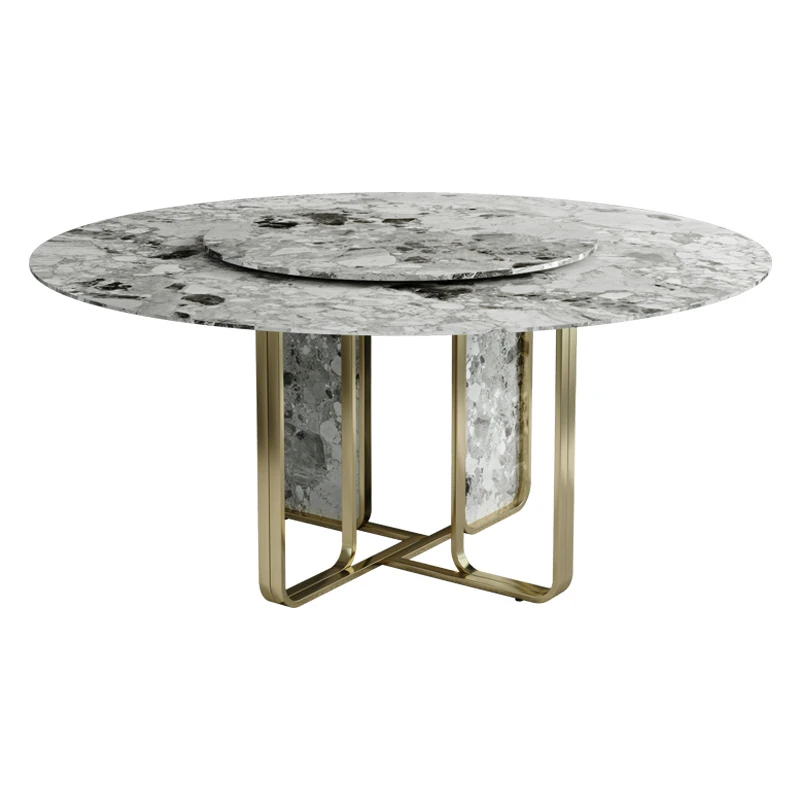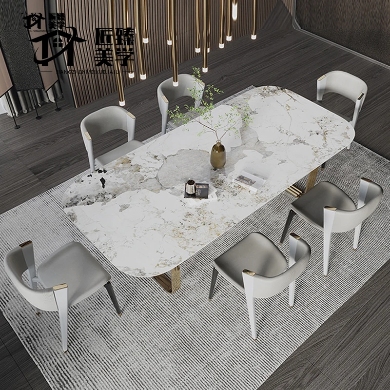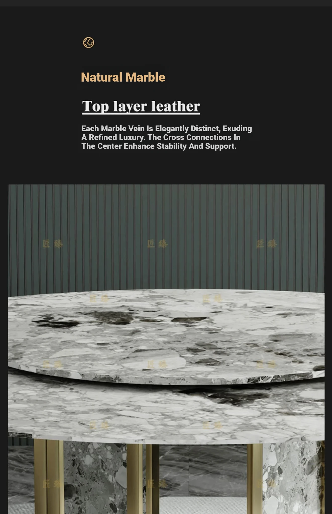 Elegant Italian Luxury Stone Round Dining Table with Lazy Susan – Modern Nordic Minimalist Rectangular Marble Dining Chair Set