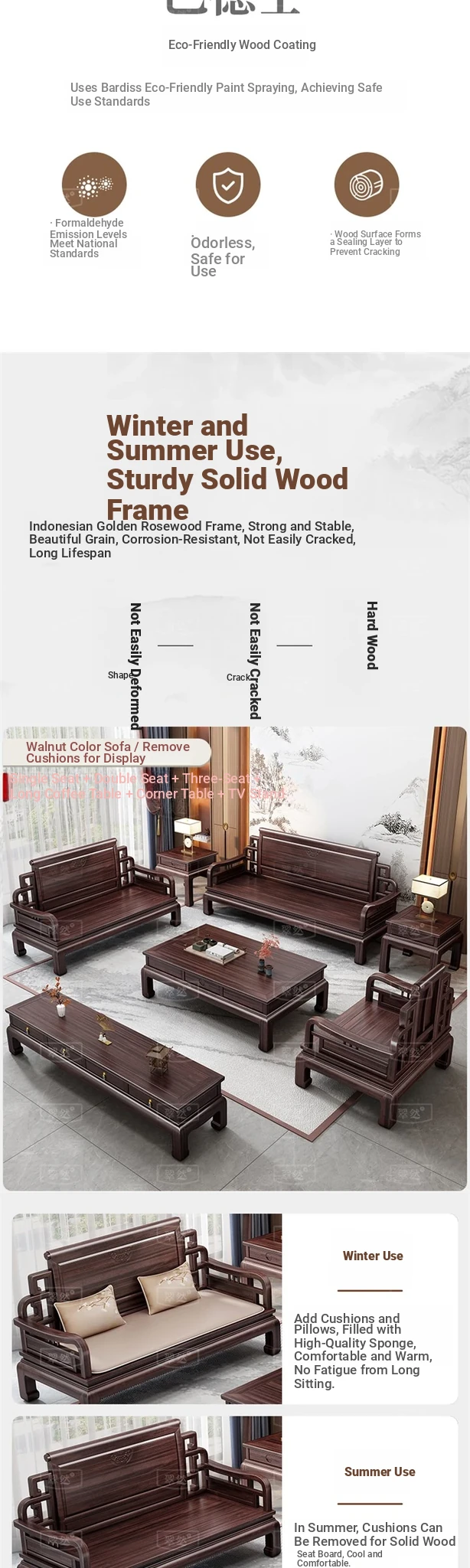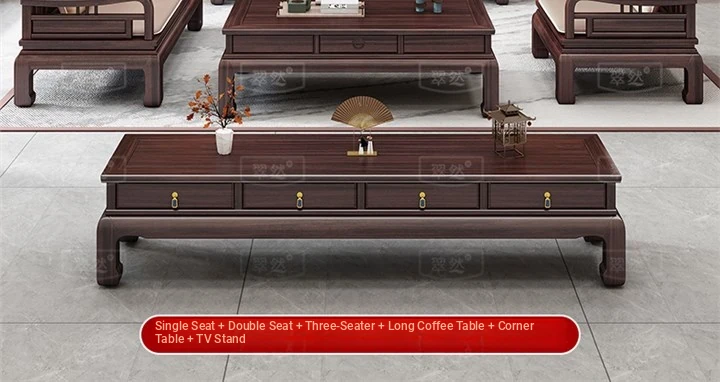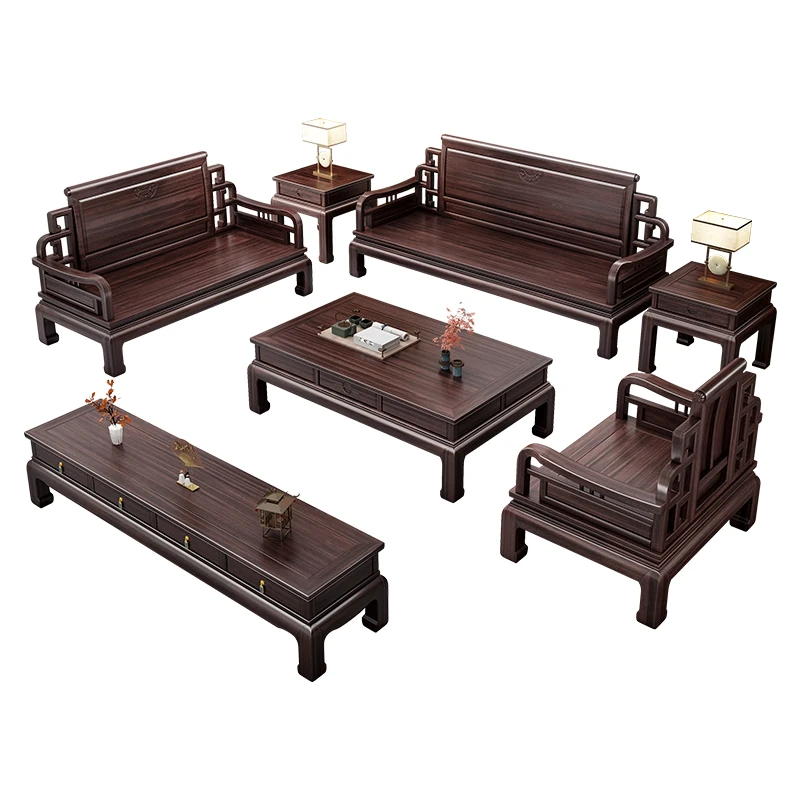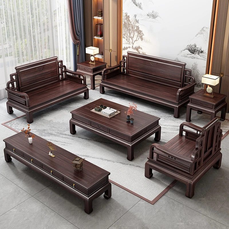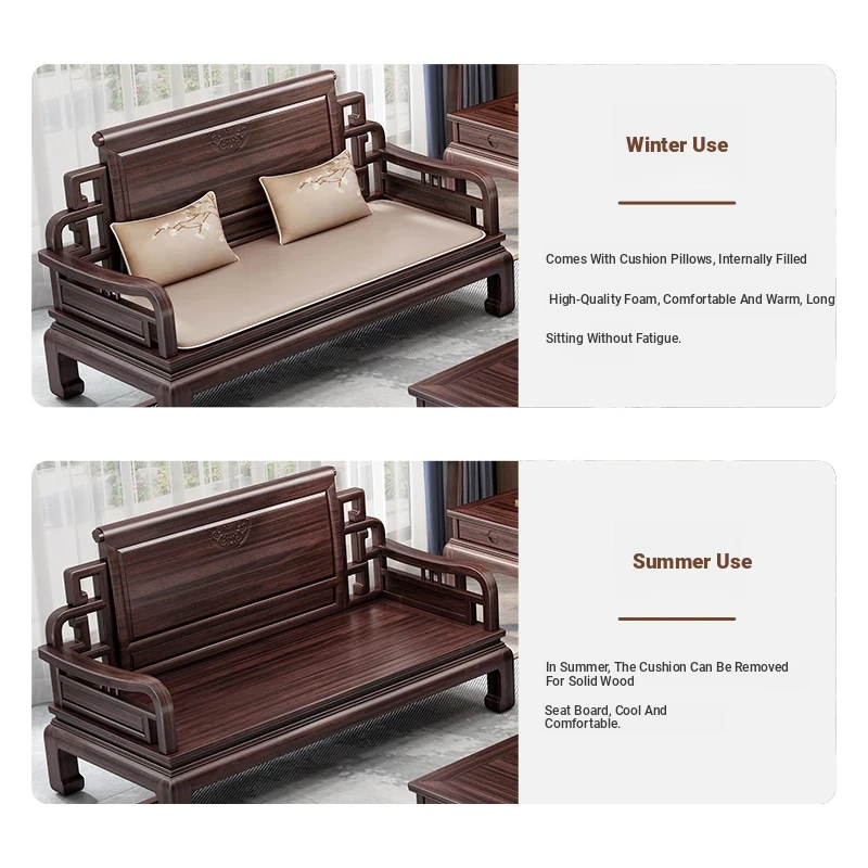 Elegant Jin Hua Pear Wood Mortise and Tenon New Chinese Style Solid Wood Sofa Set - Versatile for Summer and Winter, Classic Imitation Rosewood Furniture for Your Living Room