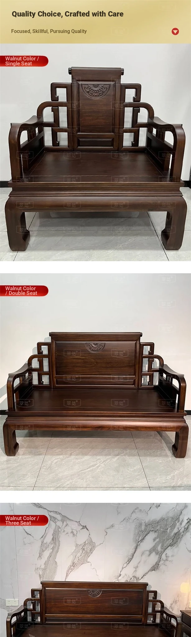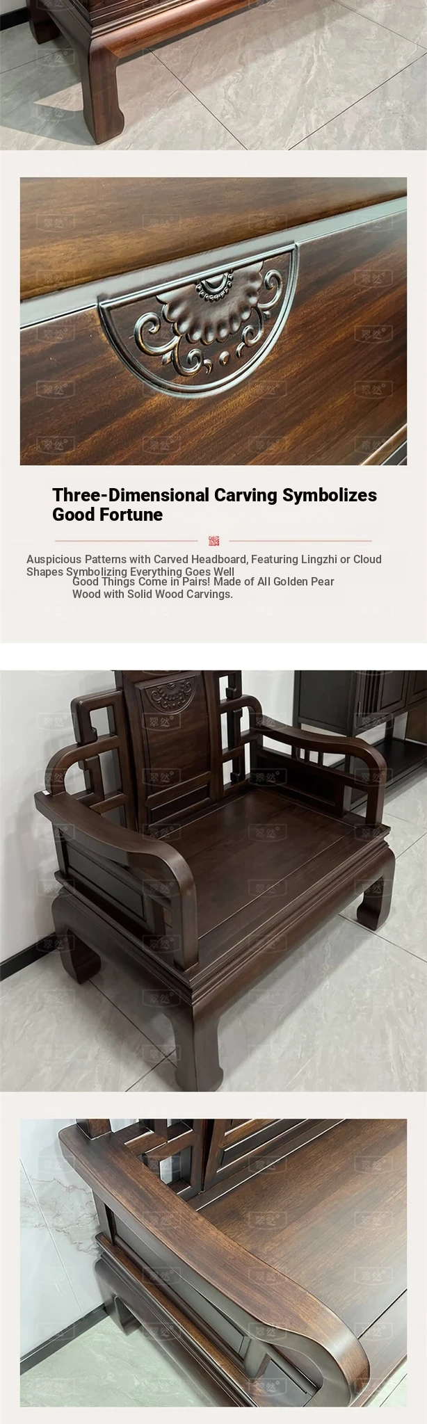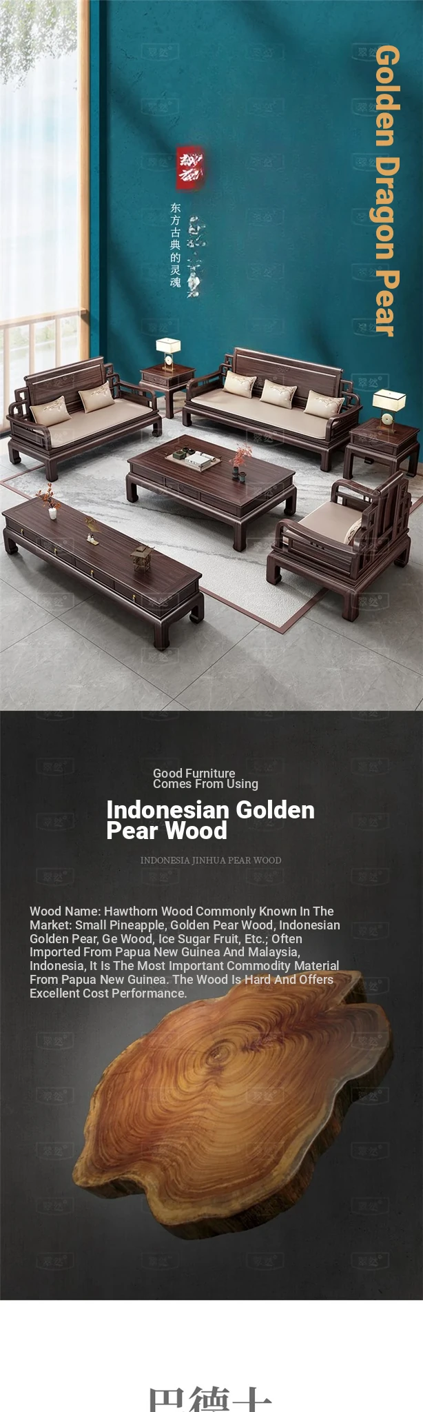 Elegant Jin Hua Pear Wood Mortise and Tenon New Chinese Style Solid Wood Sofa Set - Versatile for Summer and Winter, Classic Imitation Rosewood Furniture for Your Living Room