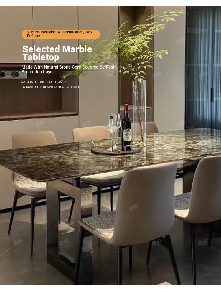 Elegant Marble Dining Table and Chair Set - Italian Luxury Design for Modern Minimalist Small Spaces, Rectangular Table for Home Dining