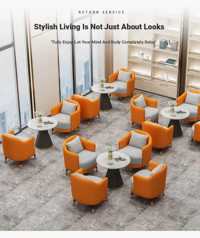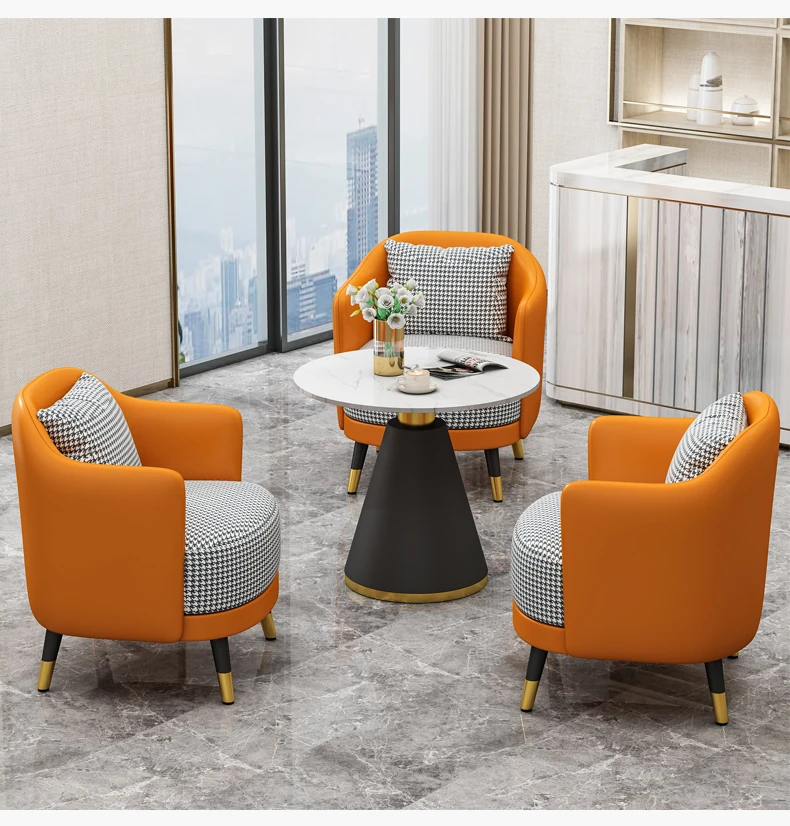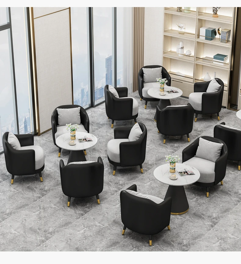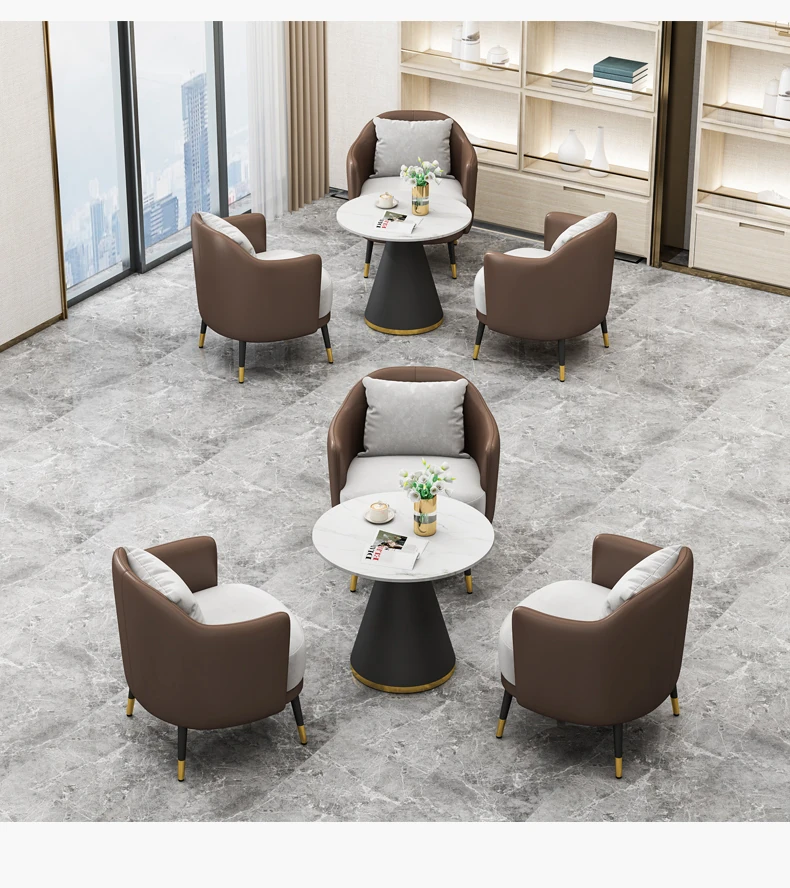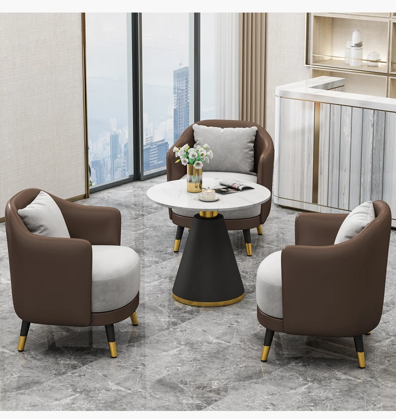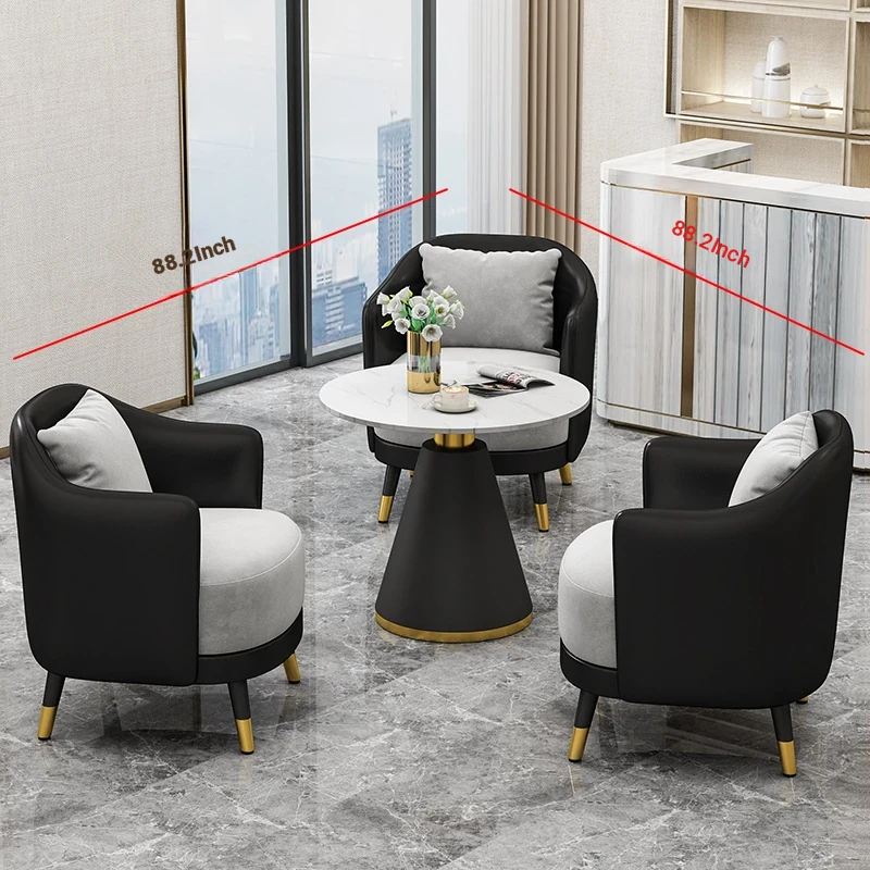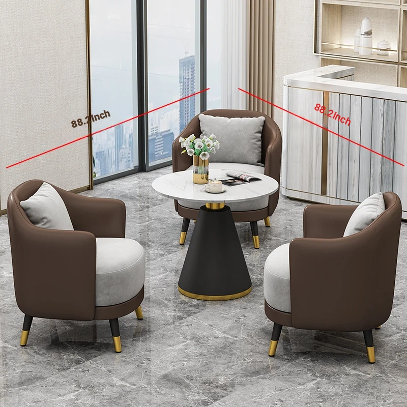 Elegant Minimalist Office Coffee Table Set for Relaxation - Perfect for Hotels, Reception Areas, Sales Offices, and Beauty Salons. Stylish Meeting Tables and Chairs for Comfortable Client Conversations.