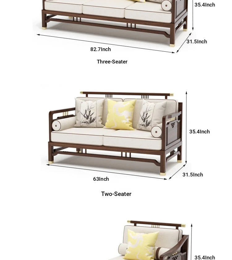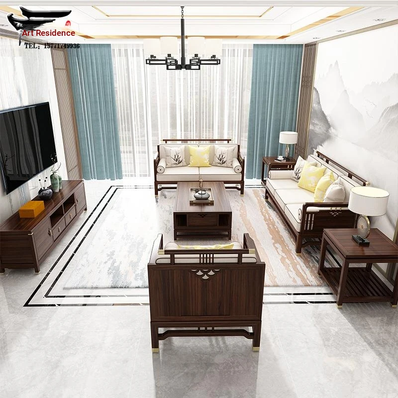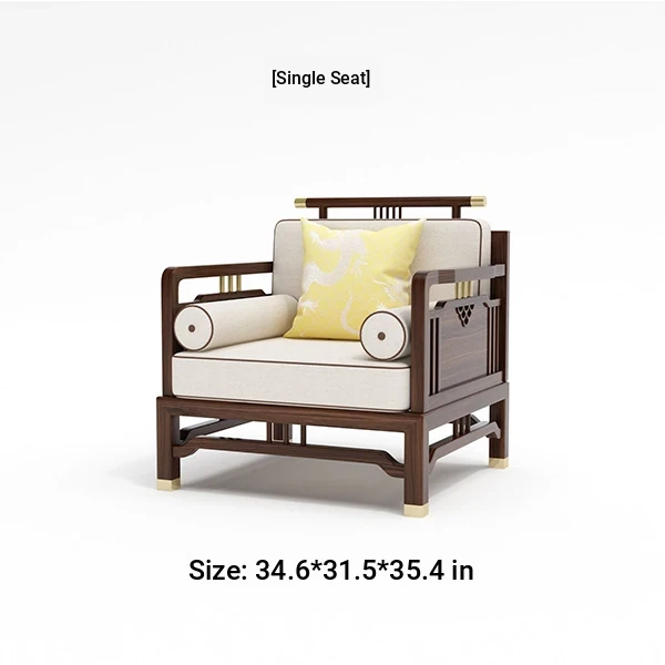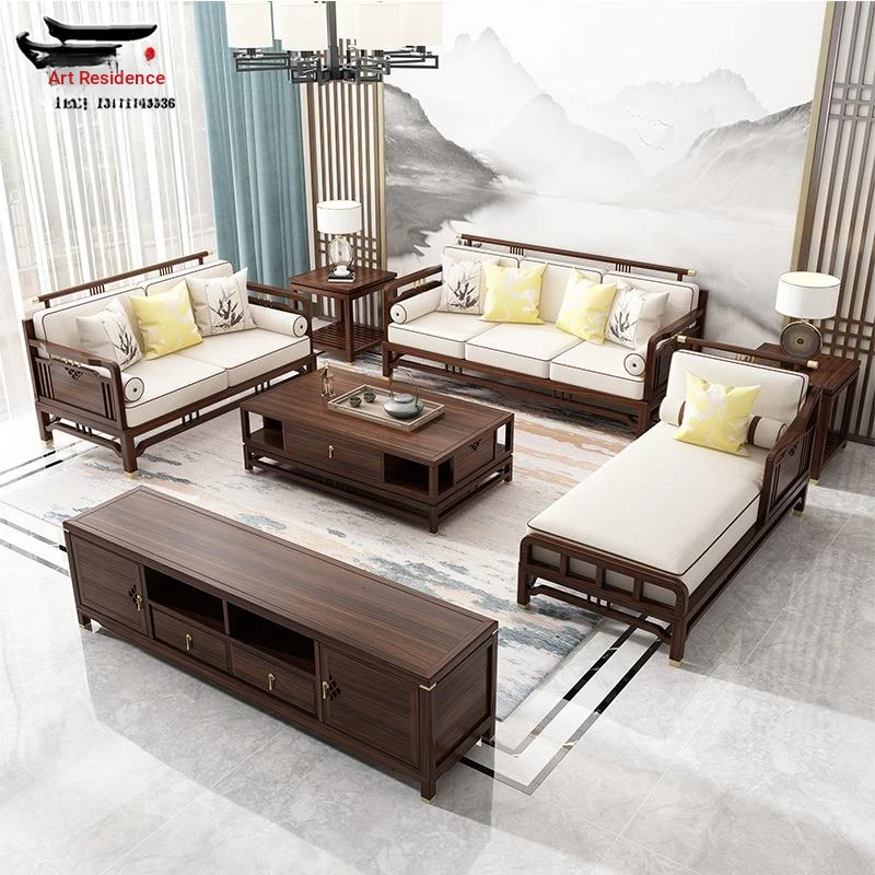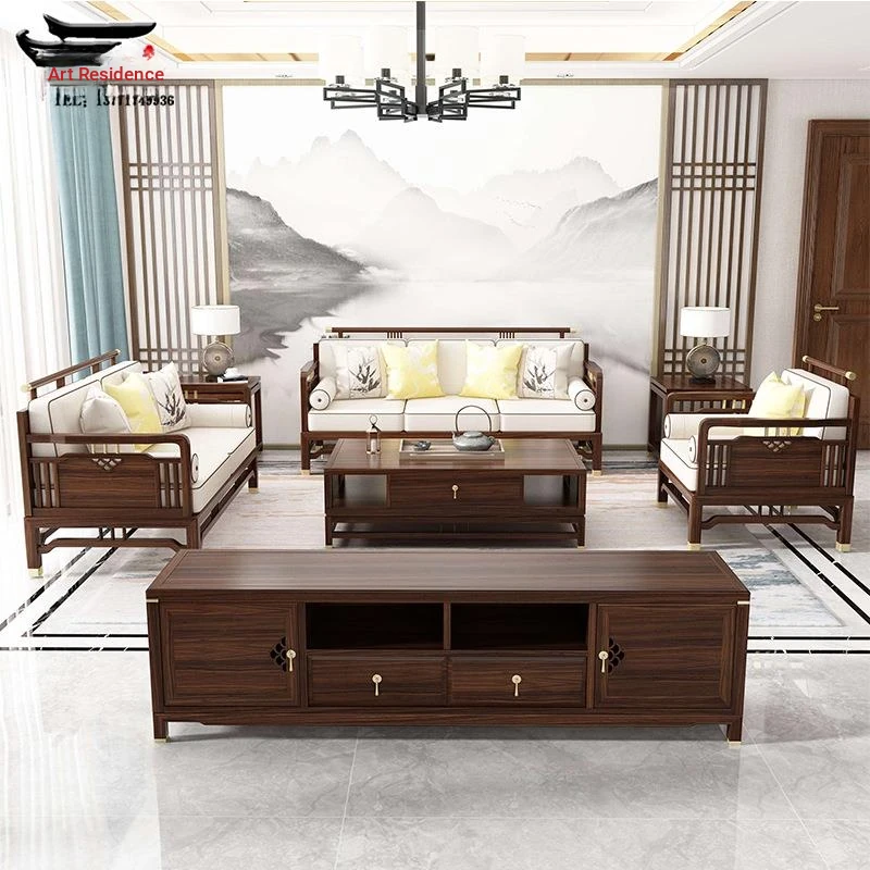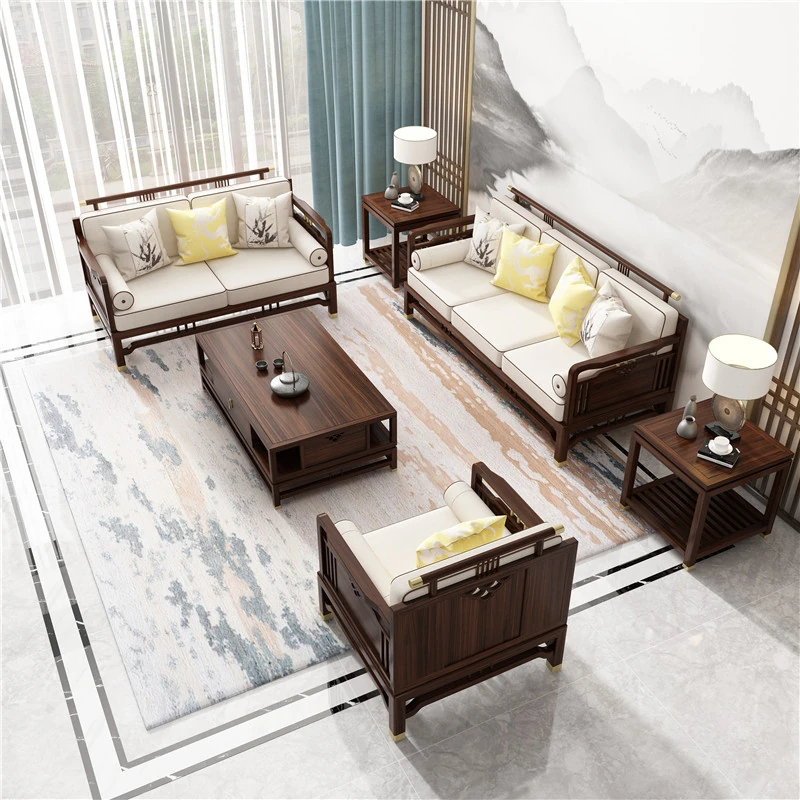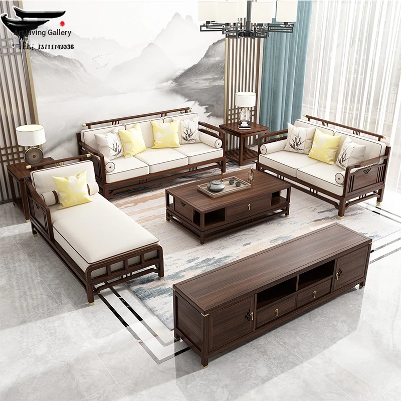 Elegant Modern Chinese-Style Black Wood Sofa Set - Luxurious Yet Minimalist Design for Small to Large Living Rooms, Crafted from Solid Wood