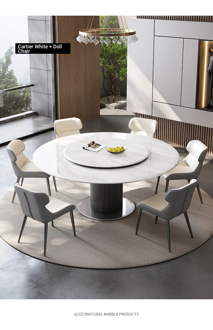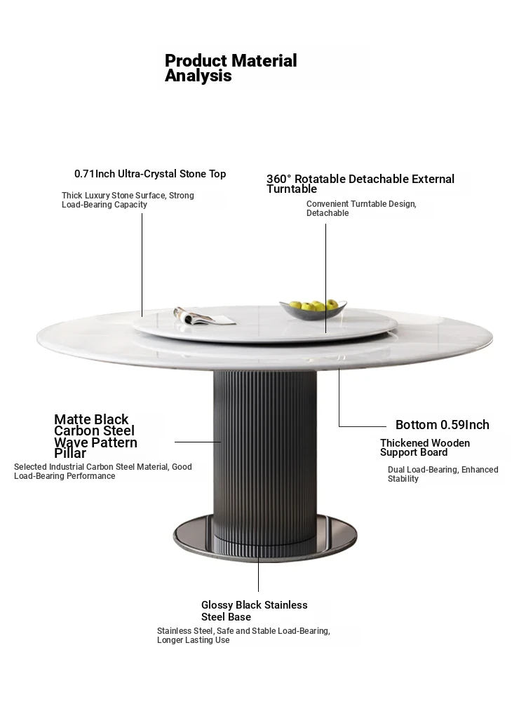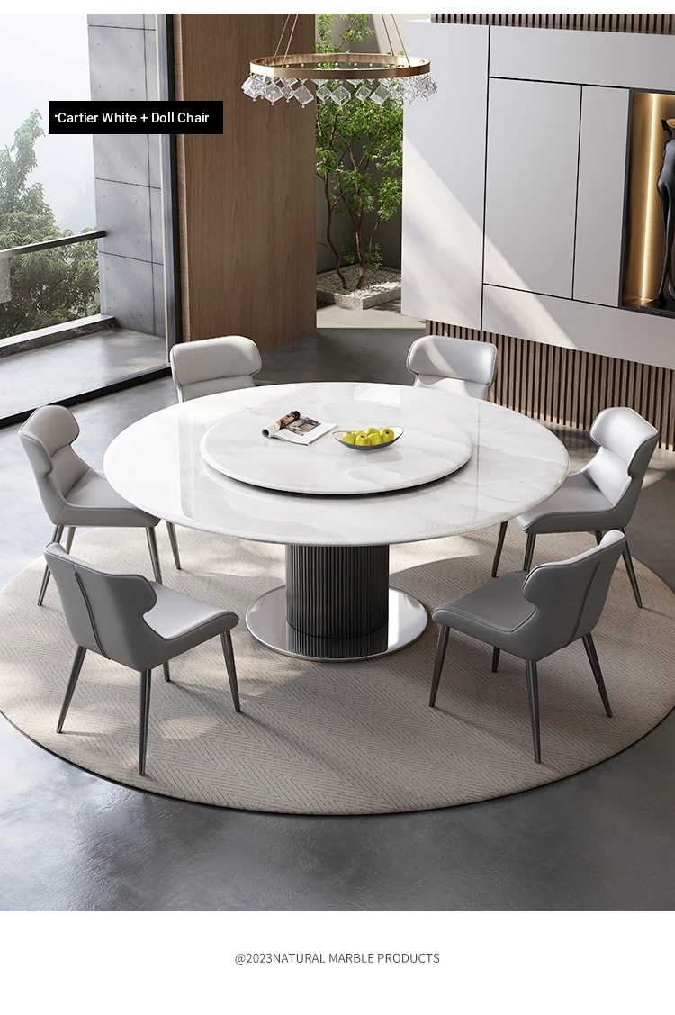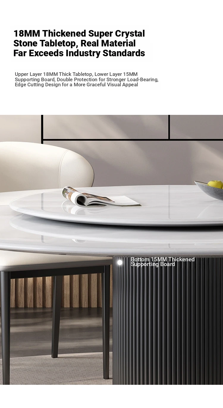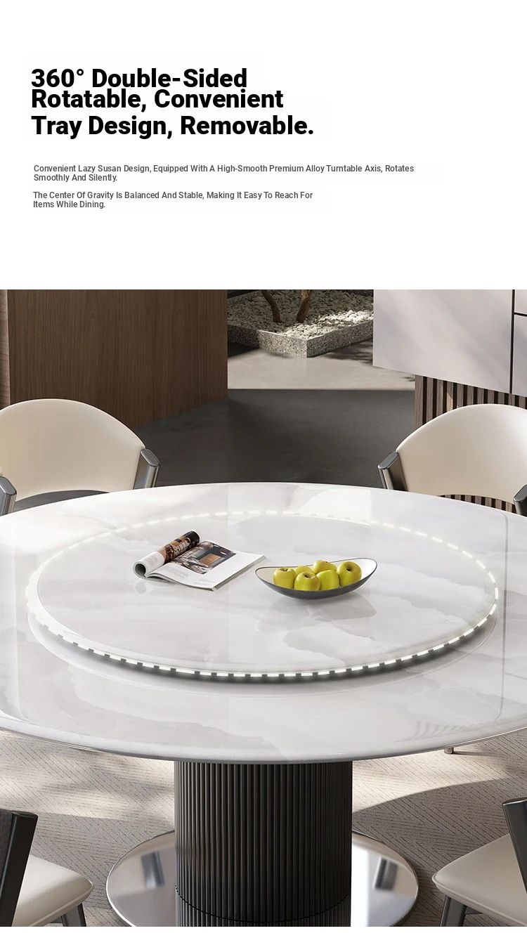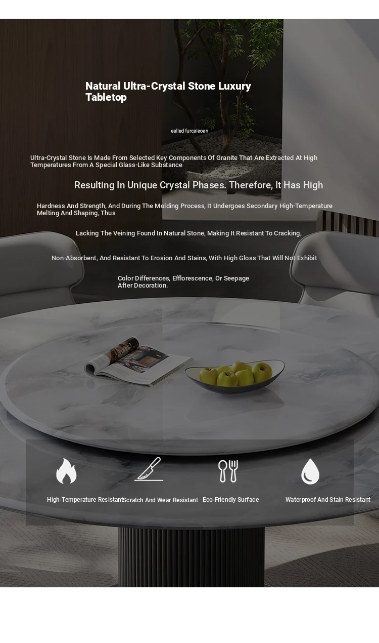 Elegant Round Dining Table with Rotating Tray - Modern Minimalist Design for Small Spaces, Crafted from Premium Super Crystal Stone and Natural Marble, Perfect for Stylish Home Dining