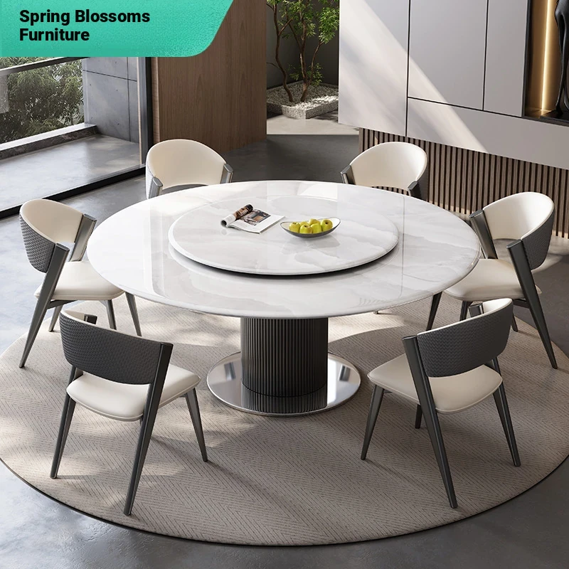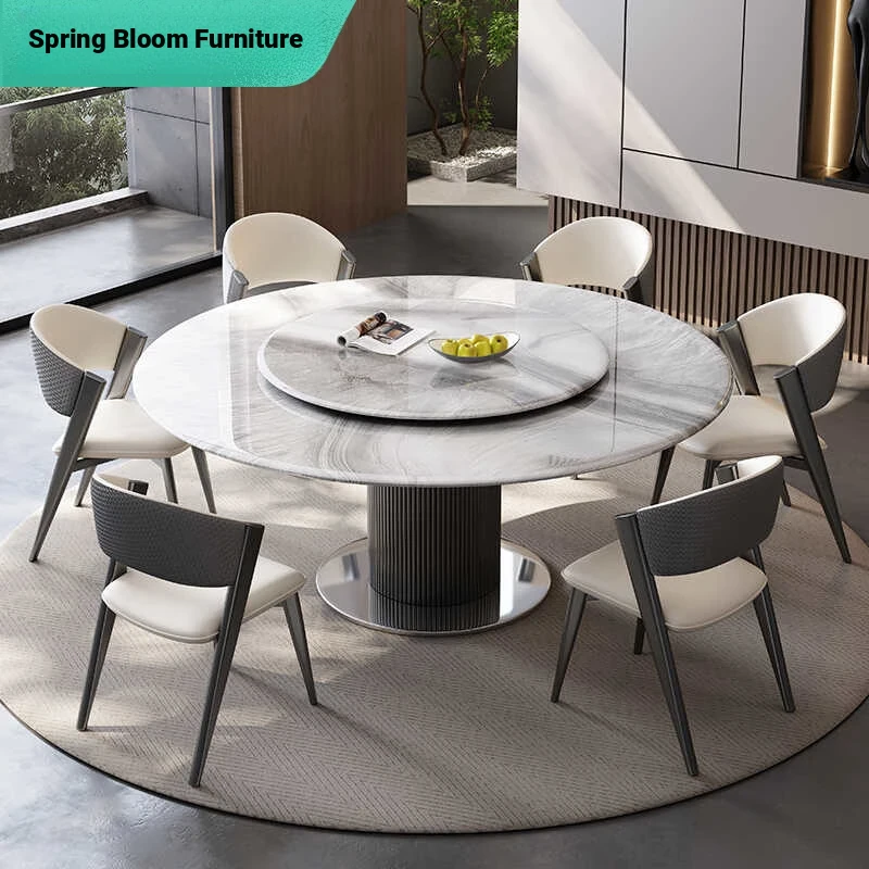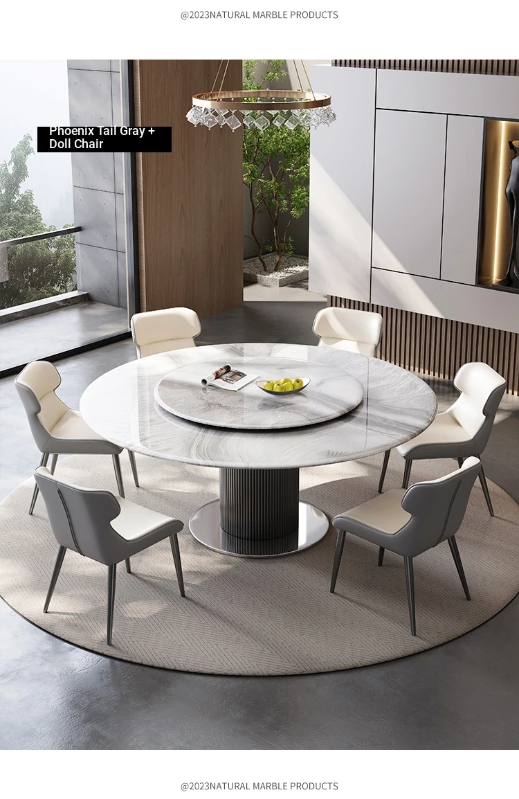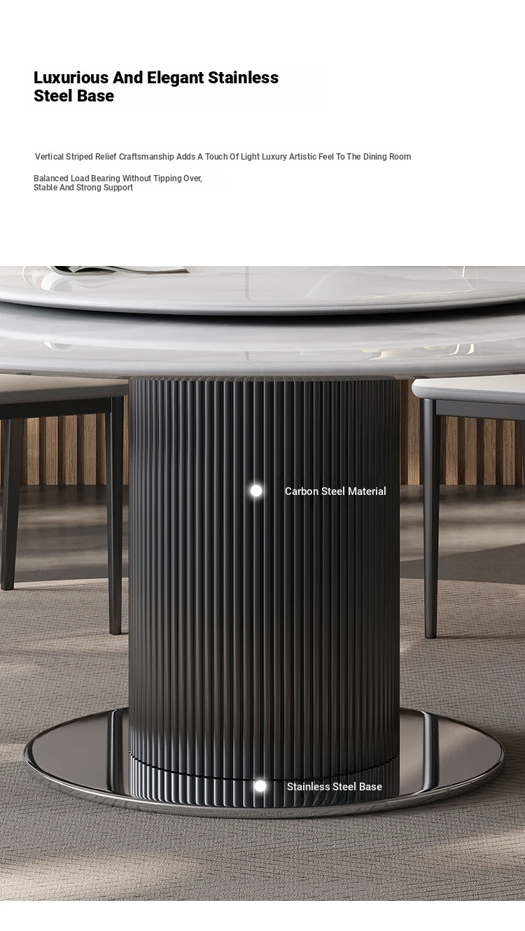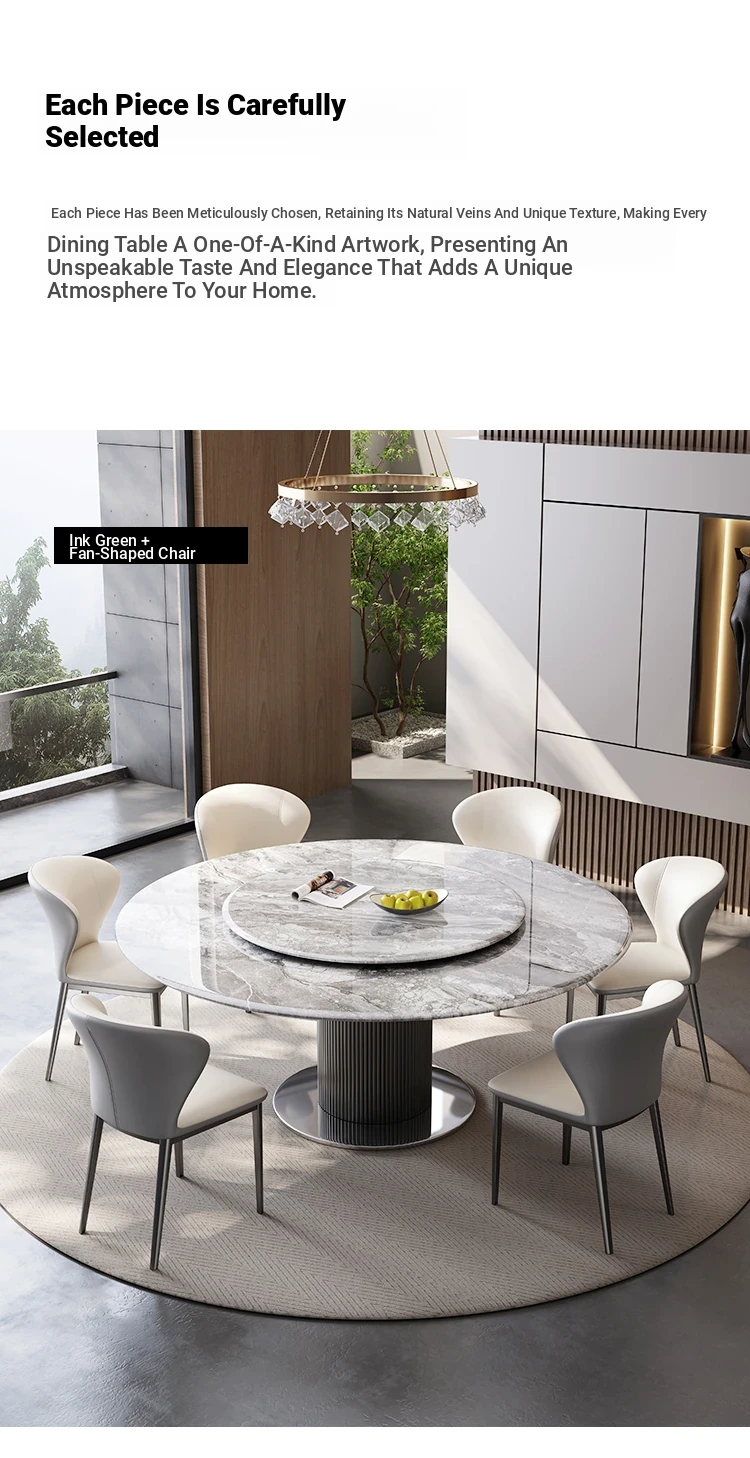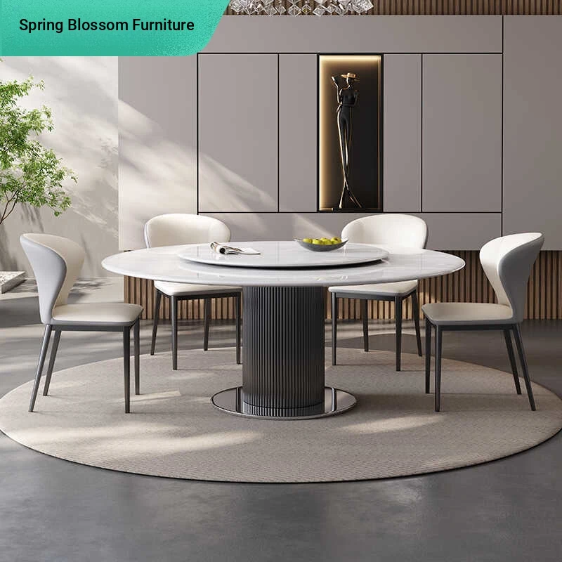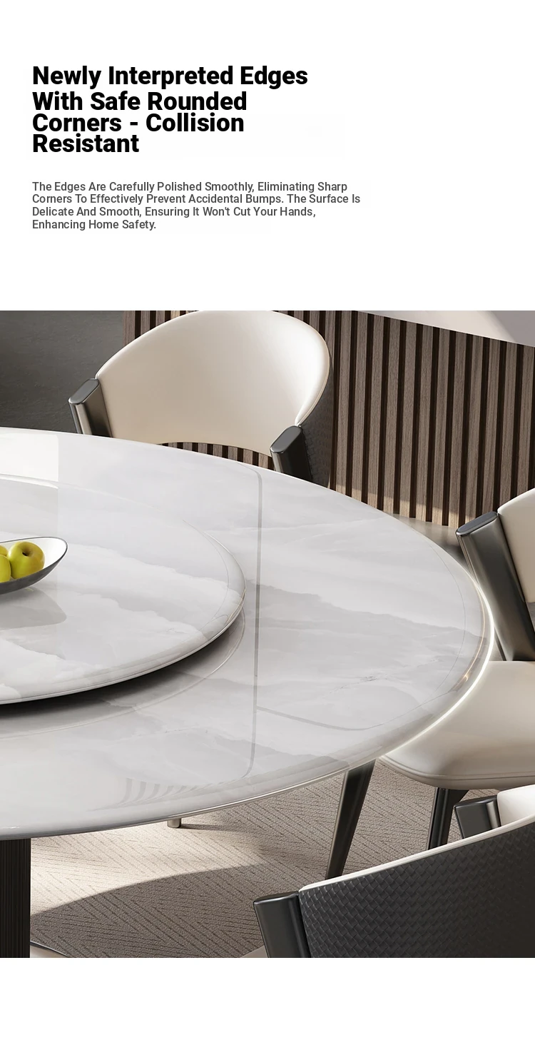 Elegant Round Dining Table with Rotating Tray - Modern Minimalist Design for Small Spaces, Crafted from Premium Super Crystal Stone and Natural Marble, Perfect for Stylish Home Dining