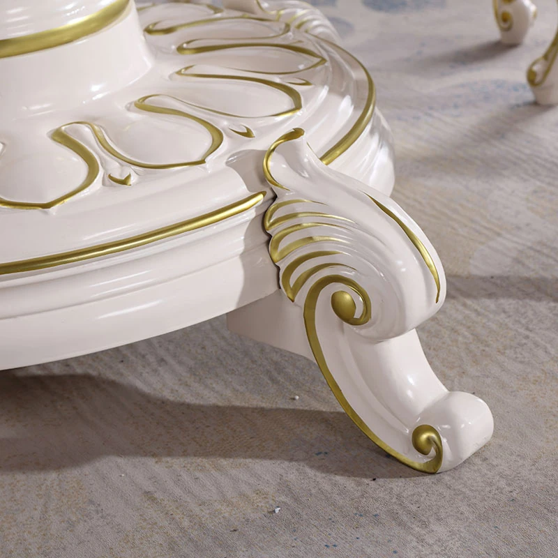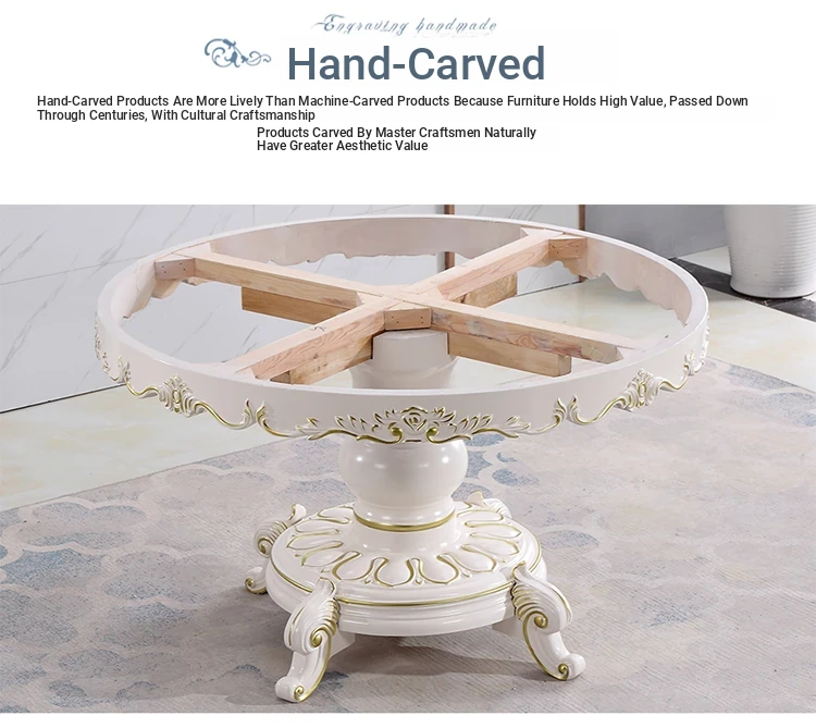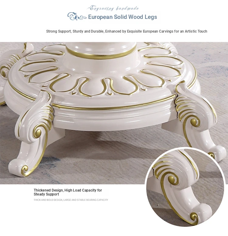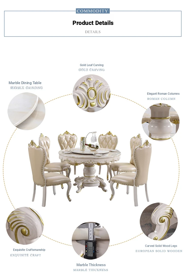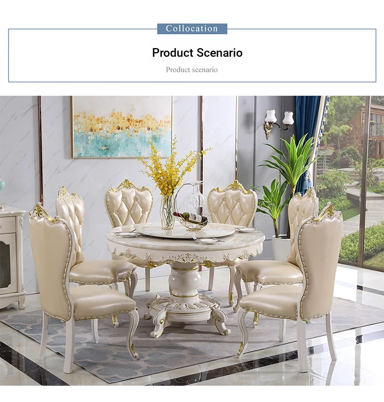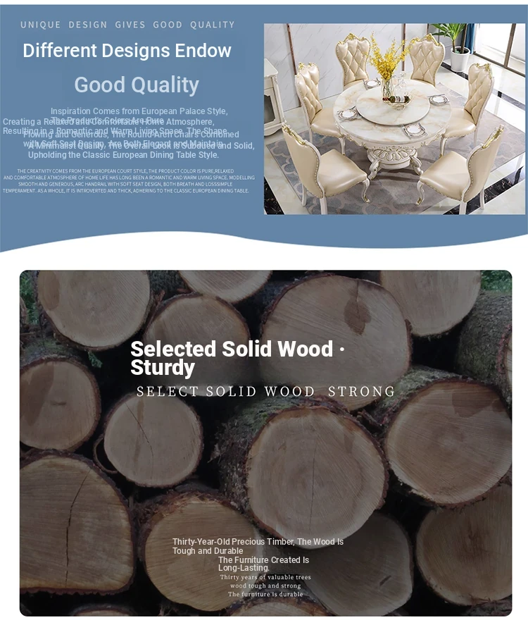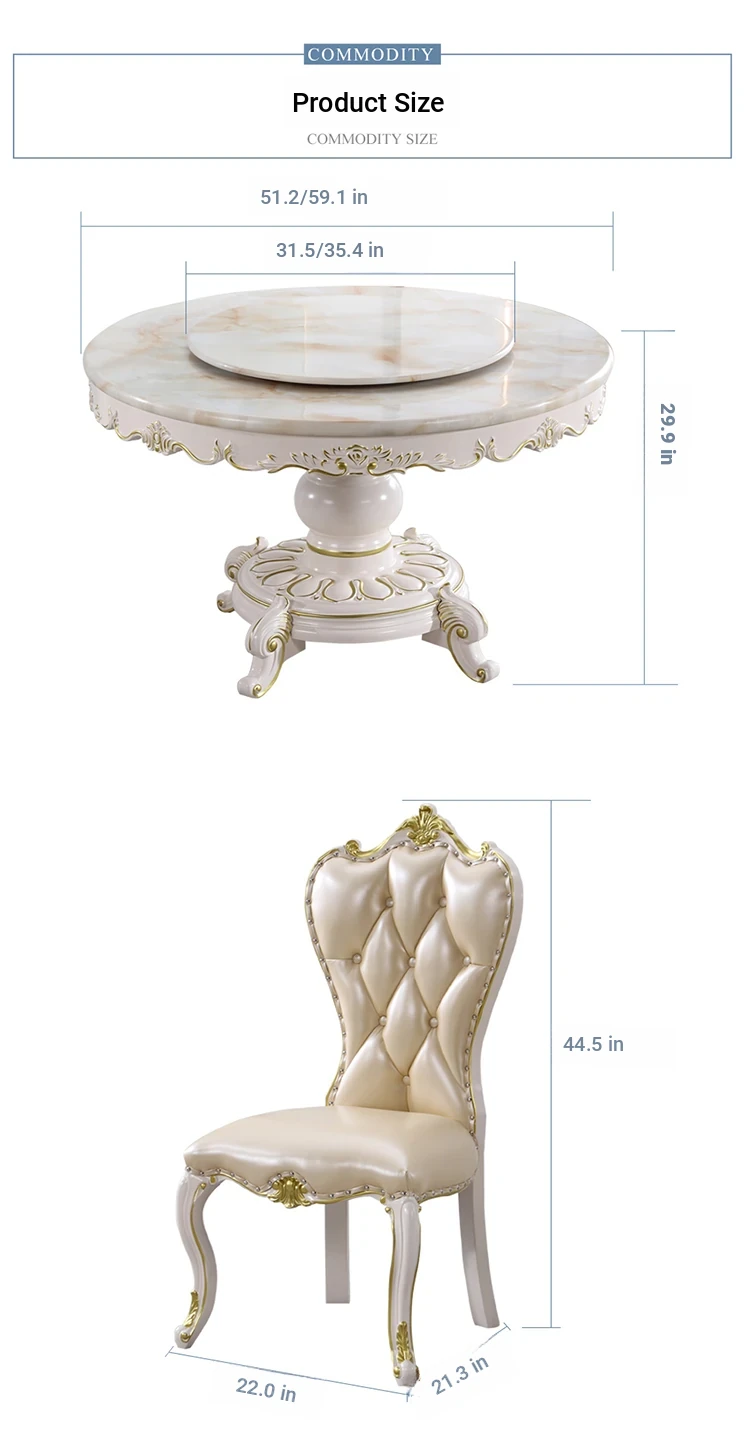 European Style Round Dining Table with Lazy Susan - Marble Top Wooden Table Set for 6 or 8 People - Perfect for Family Meals and Gatherings