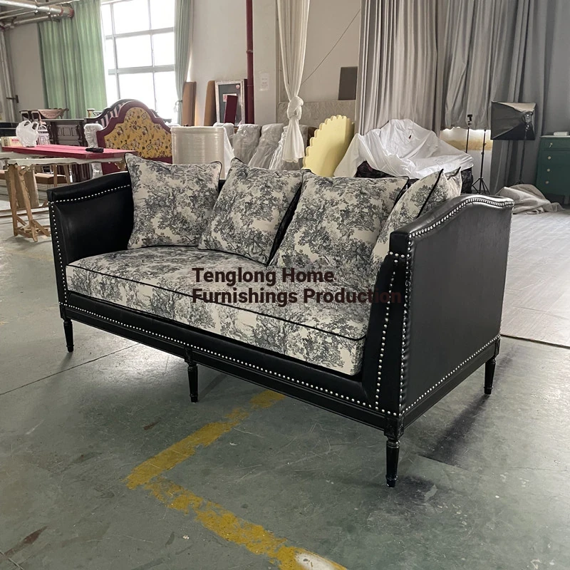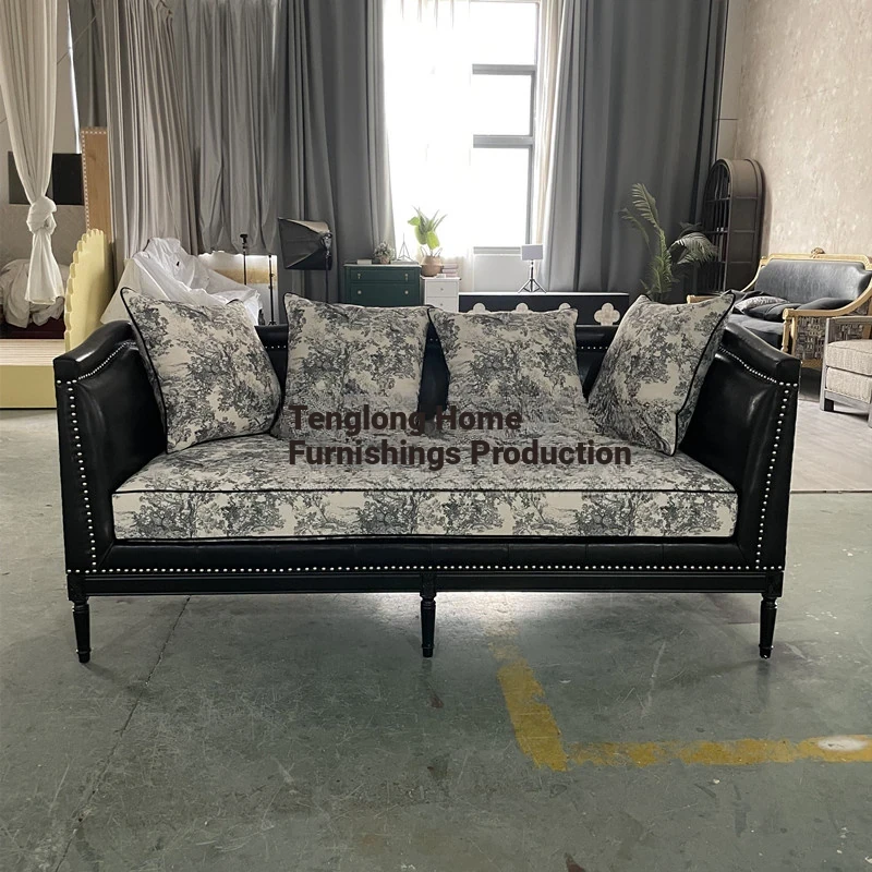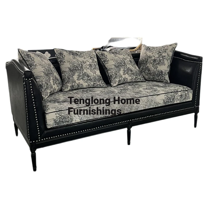French Classic Fabric Three-Seat Sofa - Stylish Leather Sofa for Small Spaces, Perfect for Nordic Living Rooms and Lounge Areas. Ideal for Casual Meetings and Conversations.