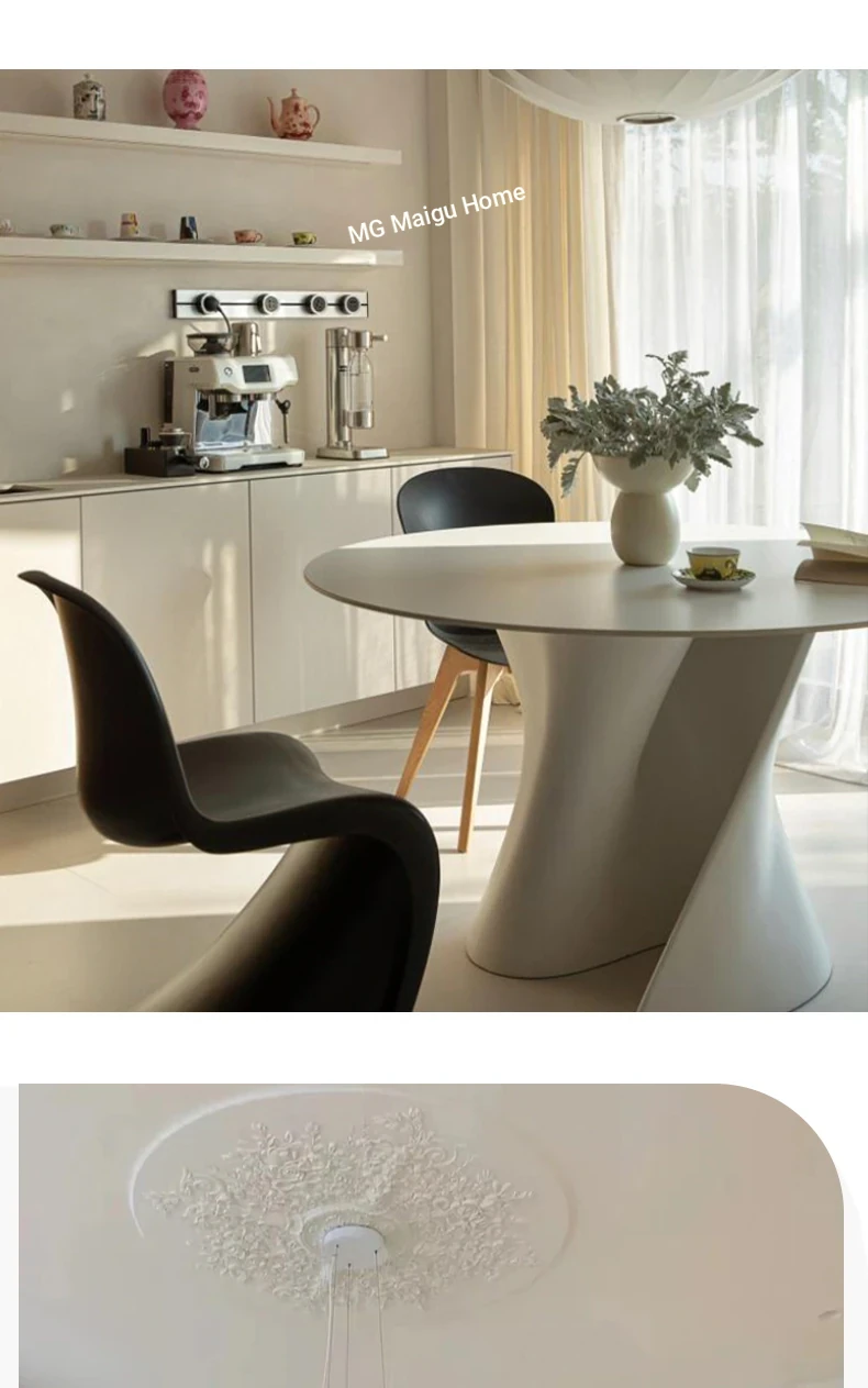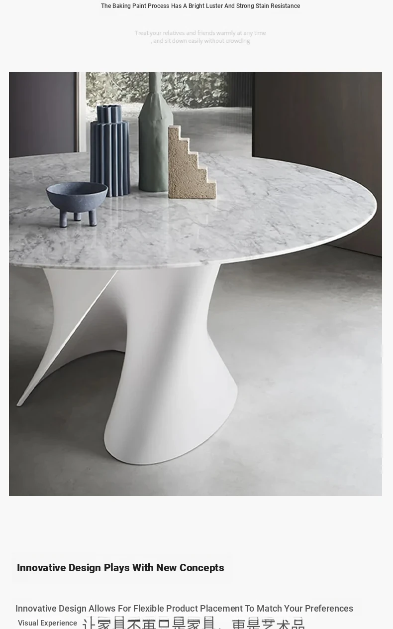 French Cream Marble Dining Table - Creative Living Room Coffee Table, Designer Round Table for Home Discussions and Gatherings