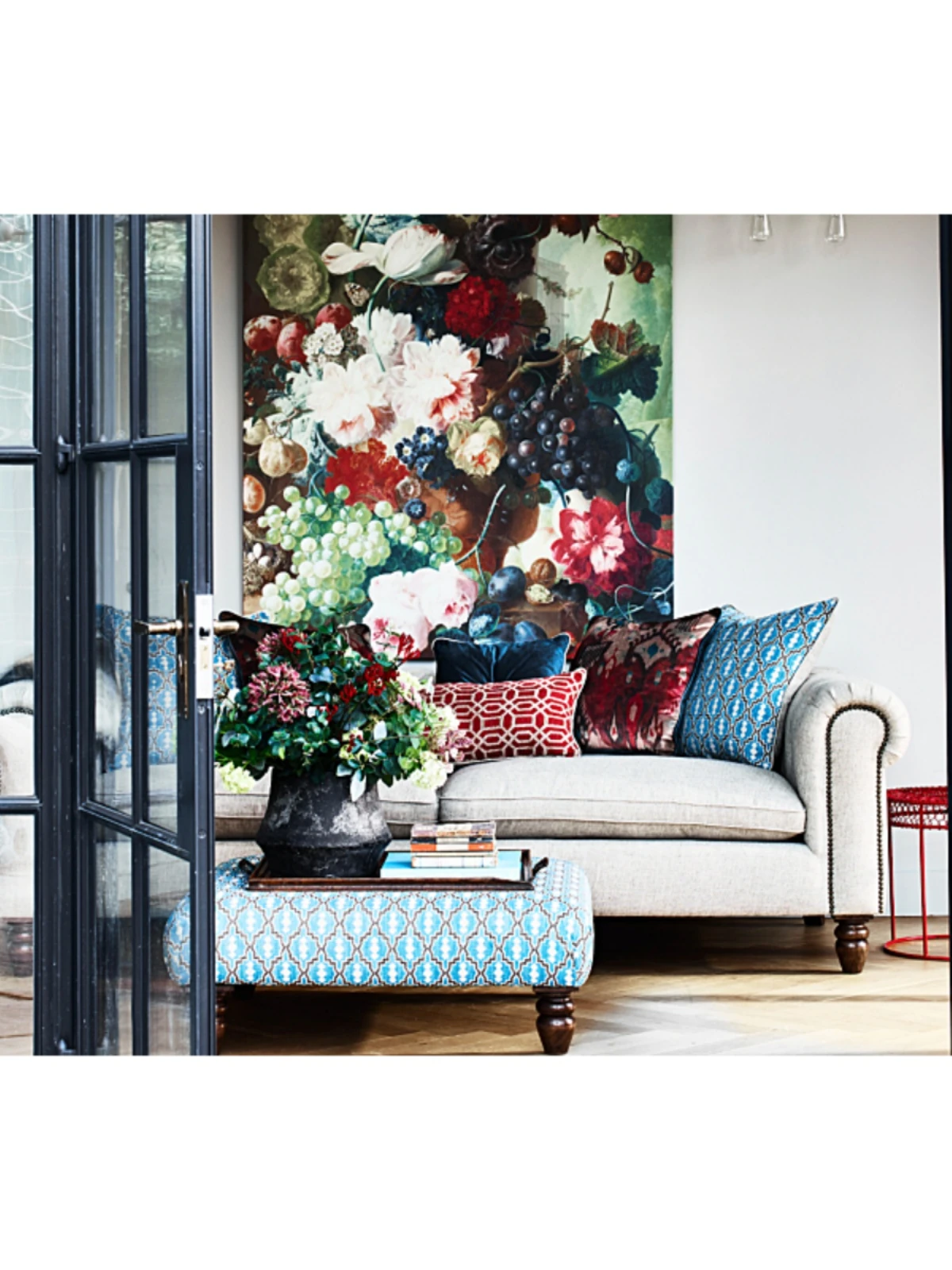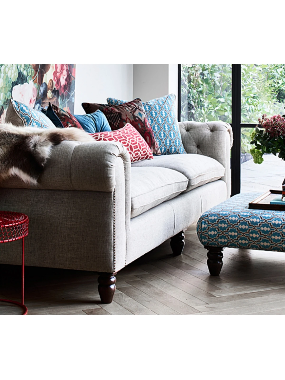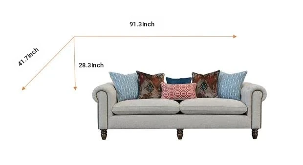 Genuine Imported American Country Style Sofa in Rice Gray Cotton-Linen Blend with Colorful Throw Pillows – Perfect for Your Cozy Living Room!