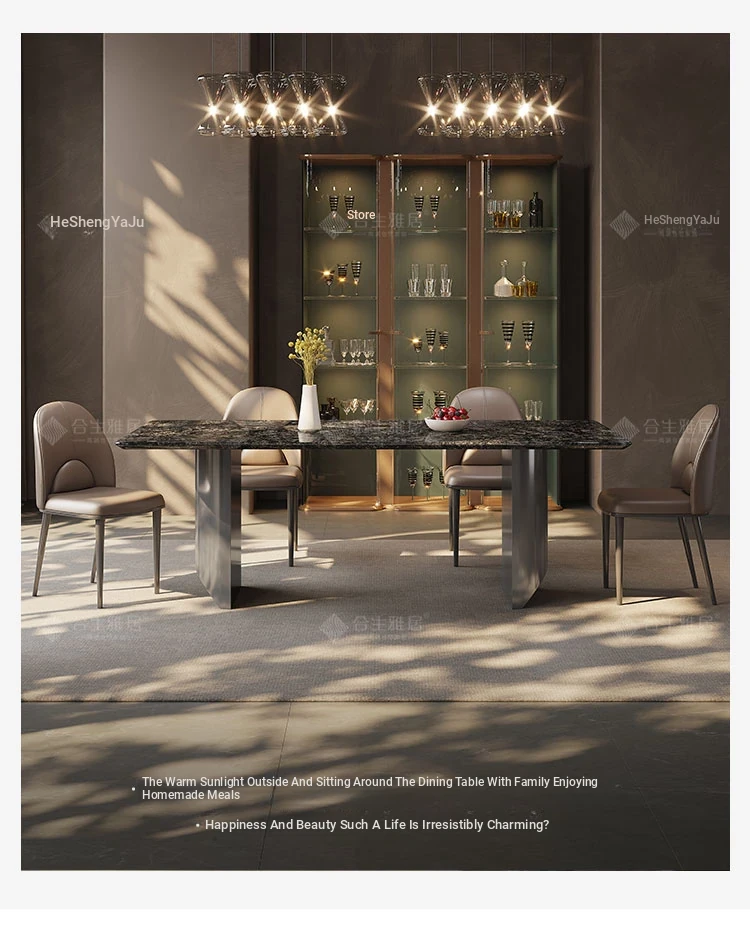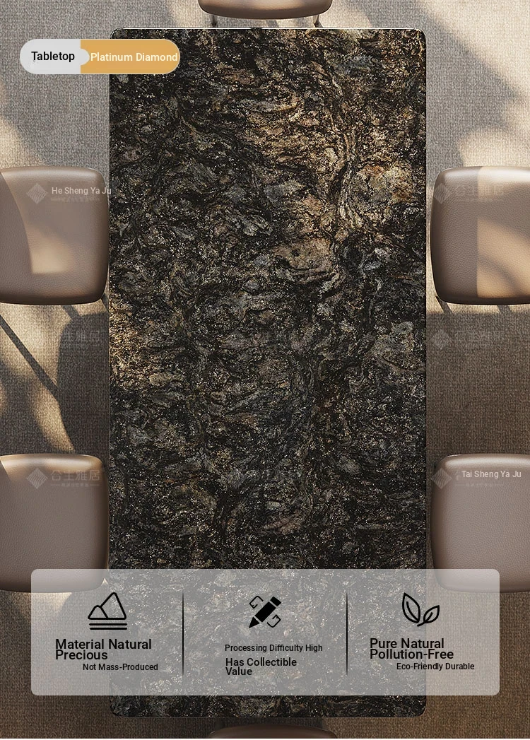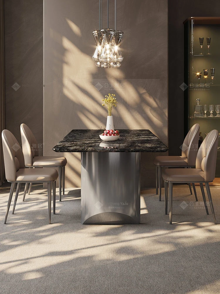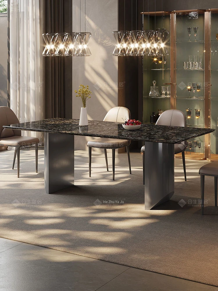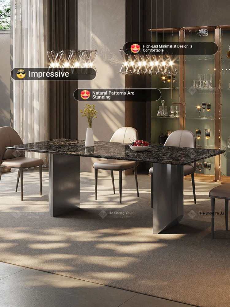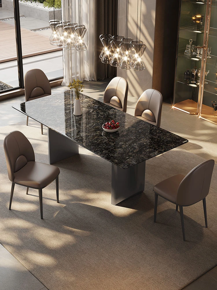 High-End Imported Natural Platinum Diamond Marble Rectangular Dining Table Set for Luxurious Villas - Perfect for Home and Elegant Dining Experiences