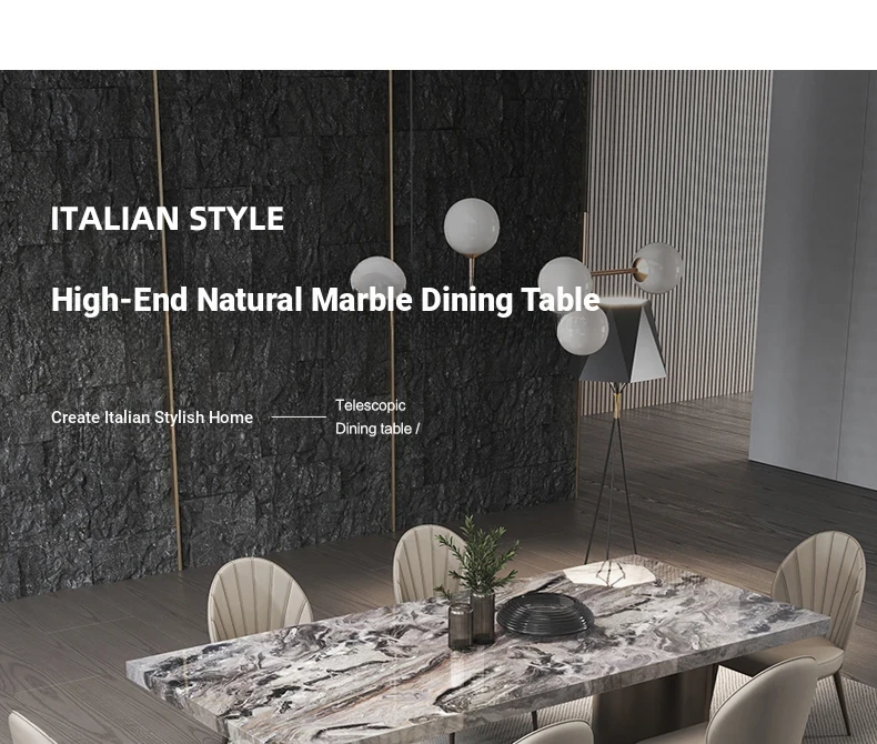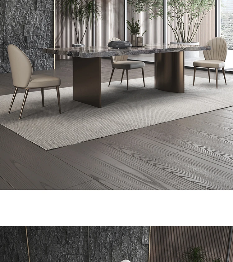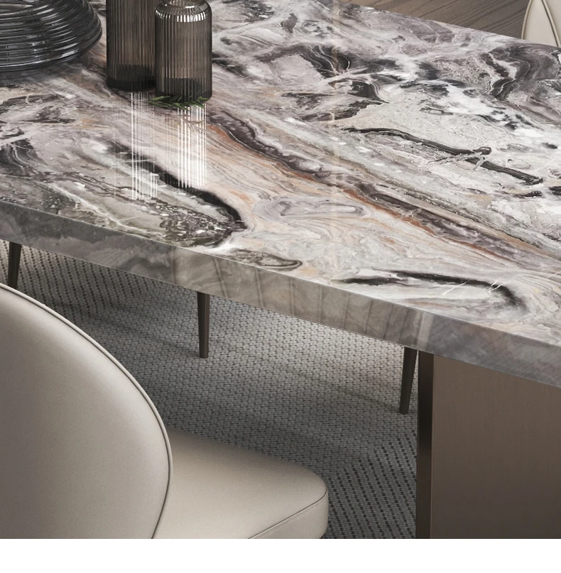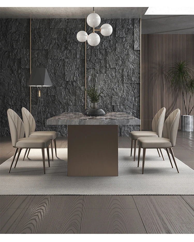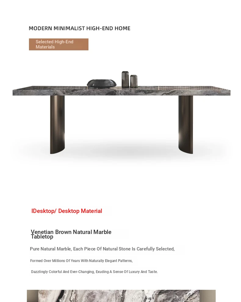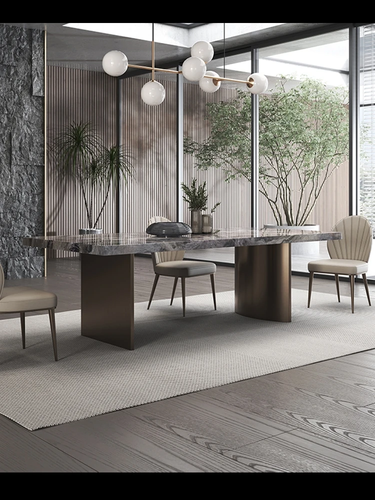 Imported Venetian Brown Luxury Stone Dining Table - Modern Minimalist Rectangular Design for Home Use, Elegant Italian Light Luxury Natural Marble Dining Table