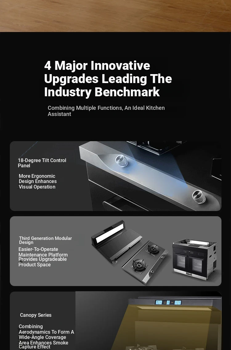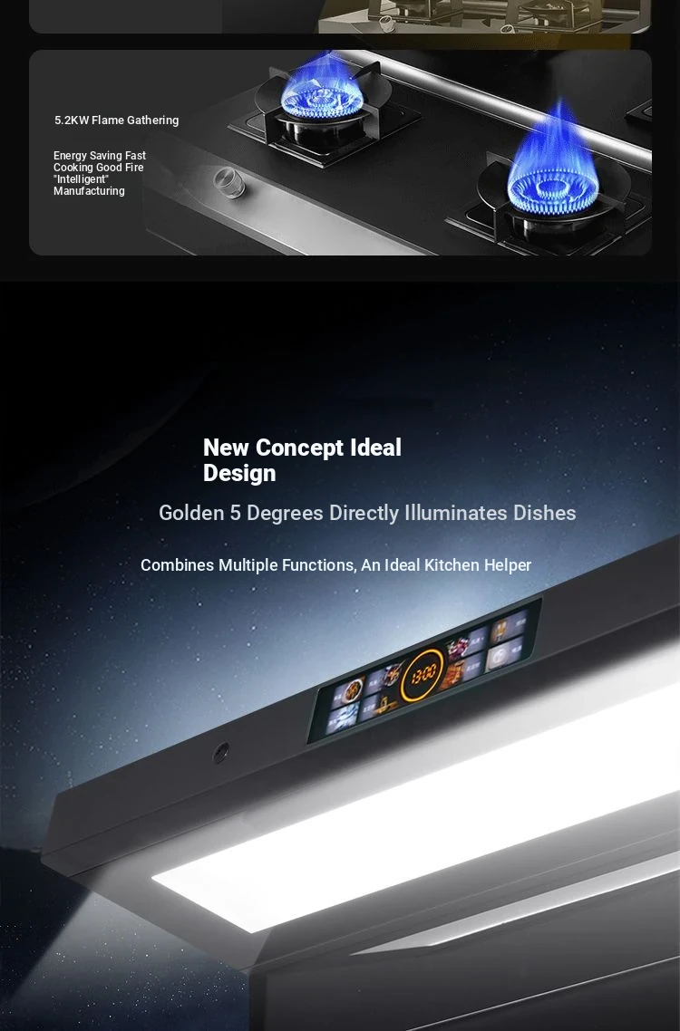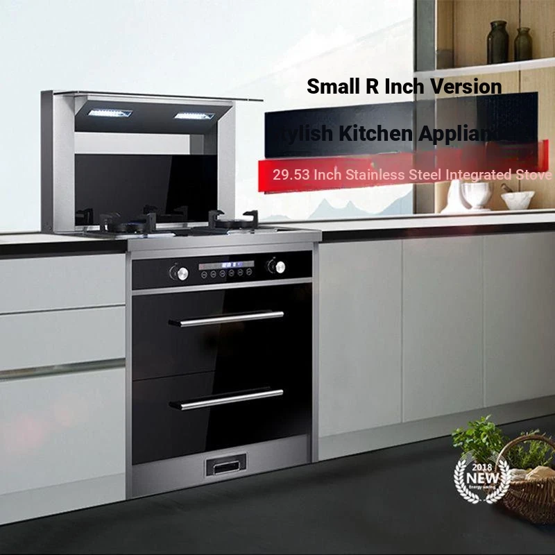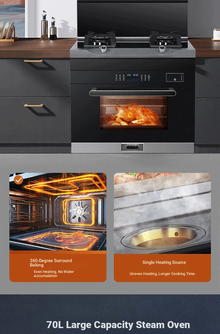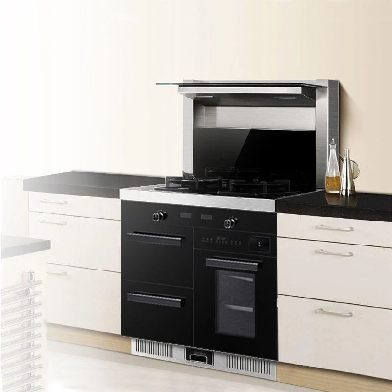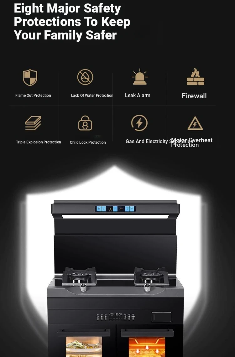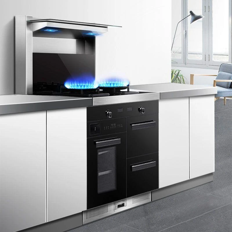 Integrated Side-Suction Range Hood with Automatic Cleaning, Gas Stove, and Disinfection Dishwasher – All-in-One Kitchen Solution for Effortless Cooking and Hygiene