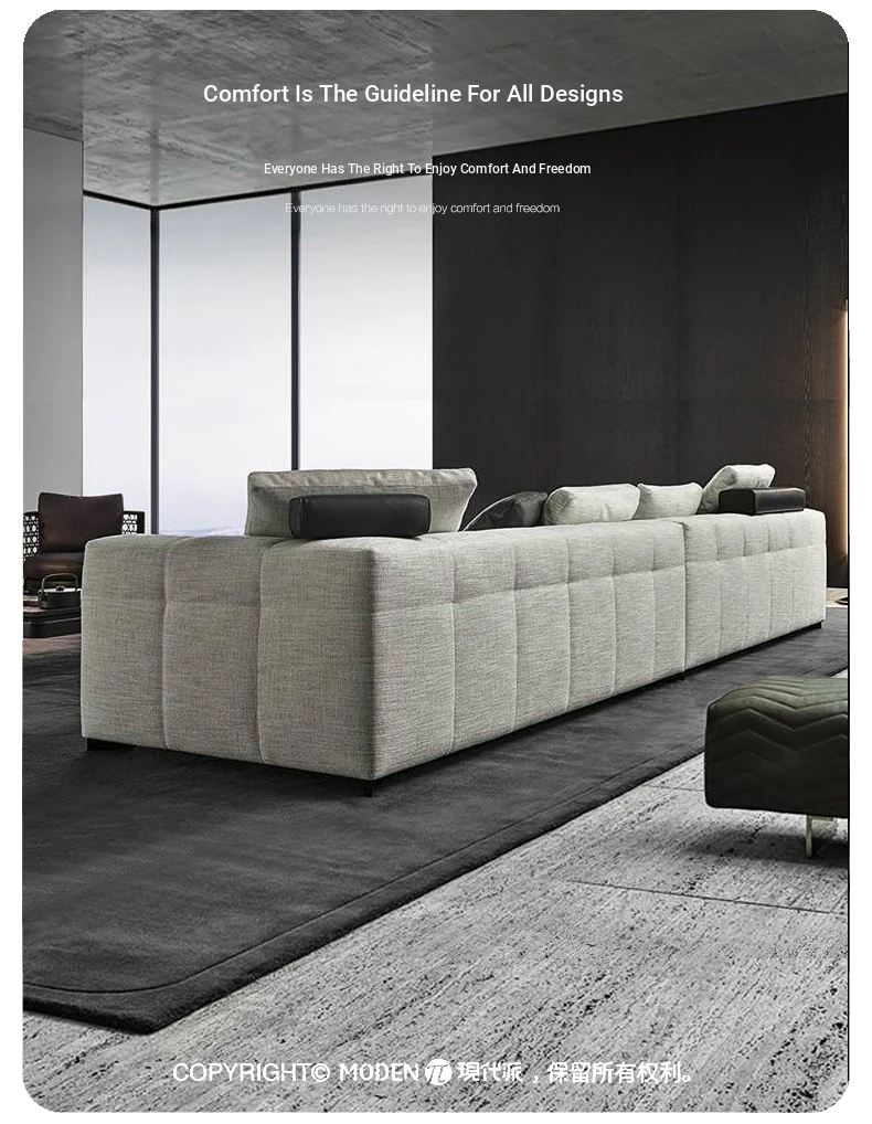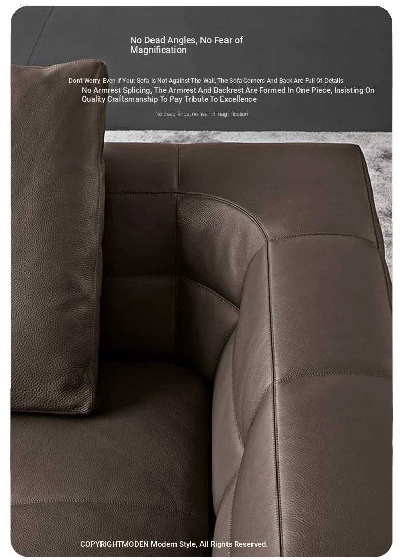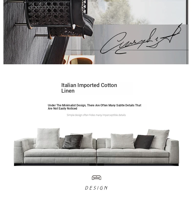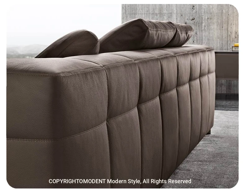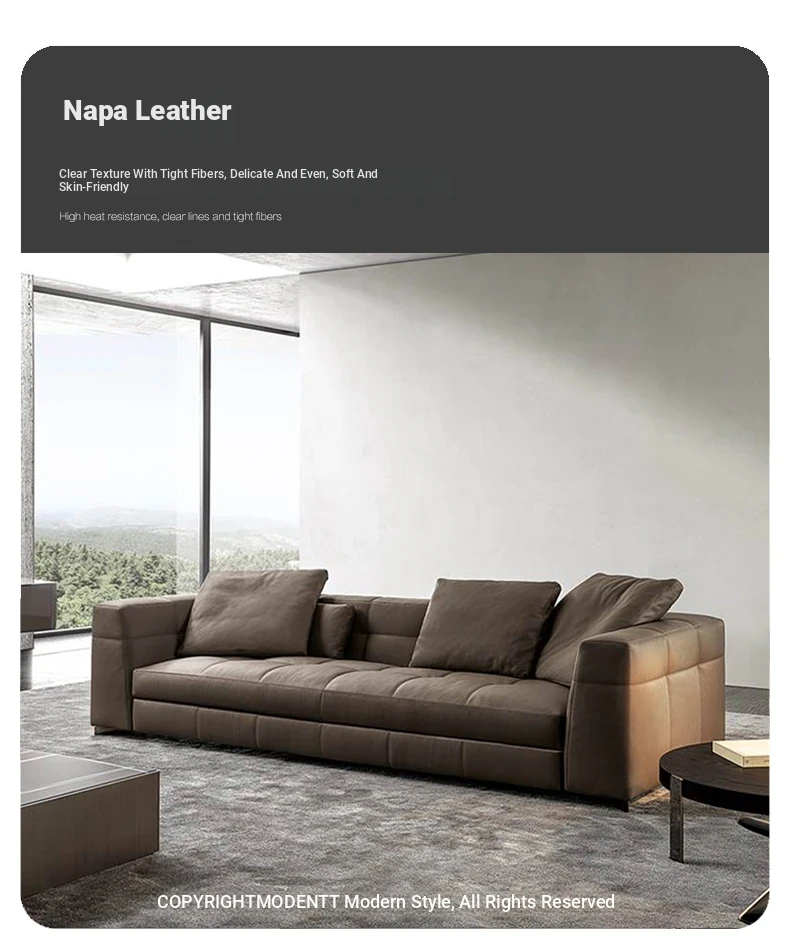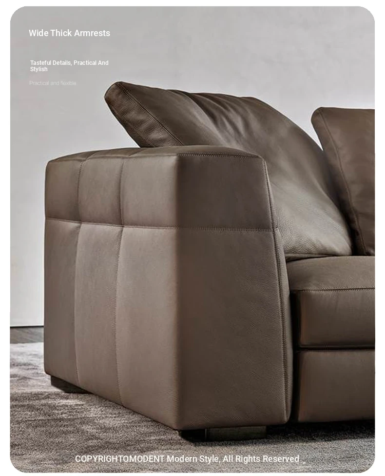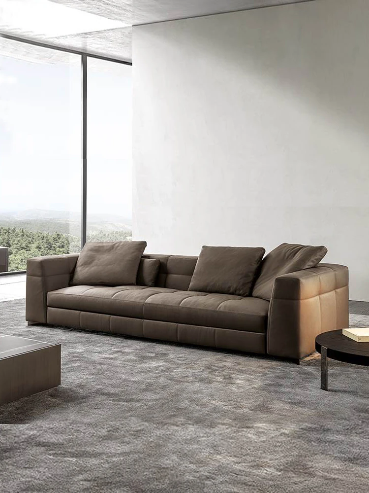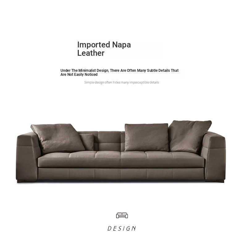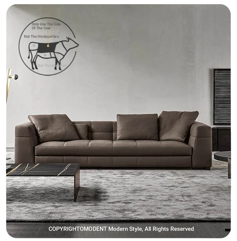 Italian Designer Minimalist High-End Genuine Leather Sofa for Small to Medium Living Rooms, Seating 3-4 People, Made with Premium Cotton-Linen Blend