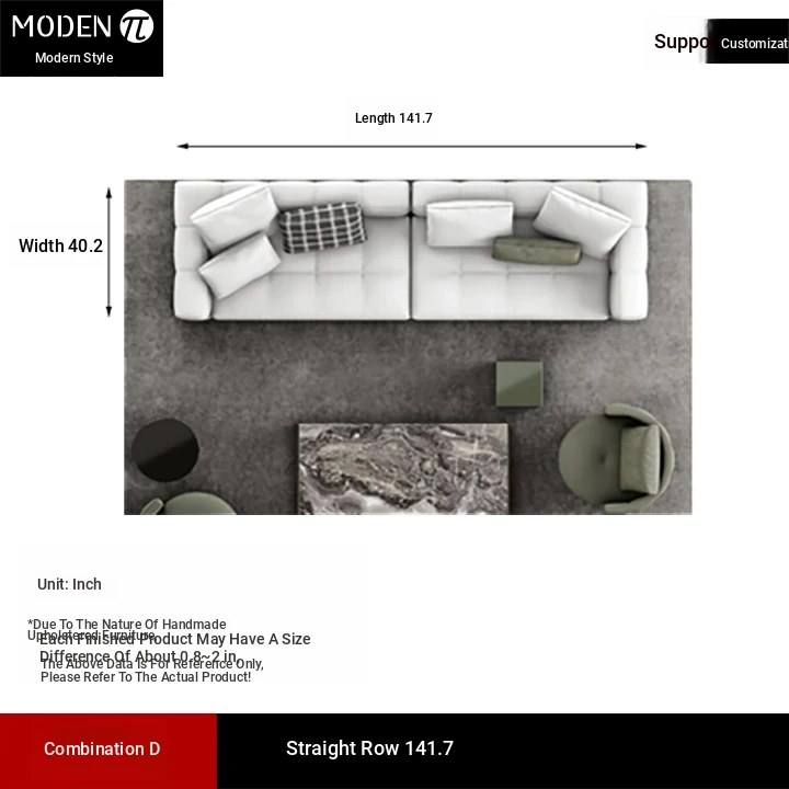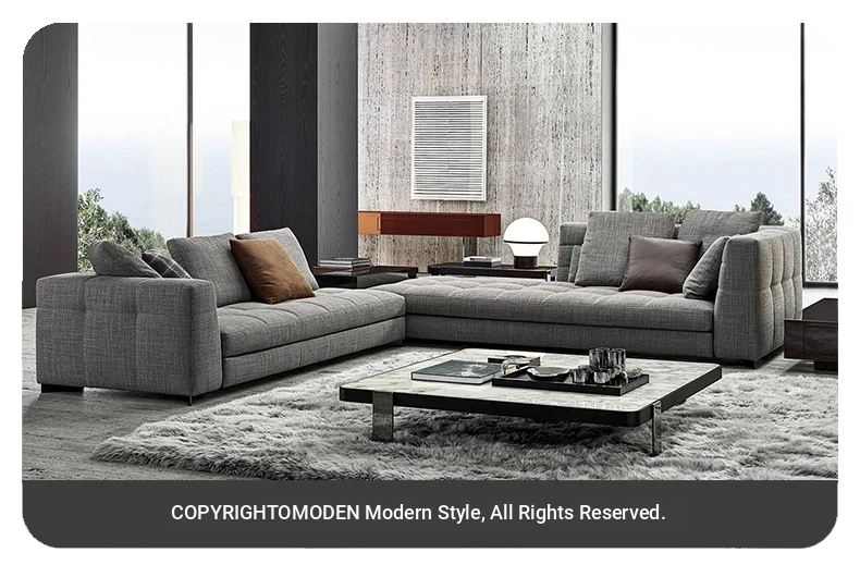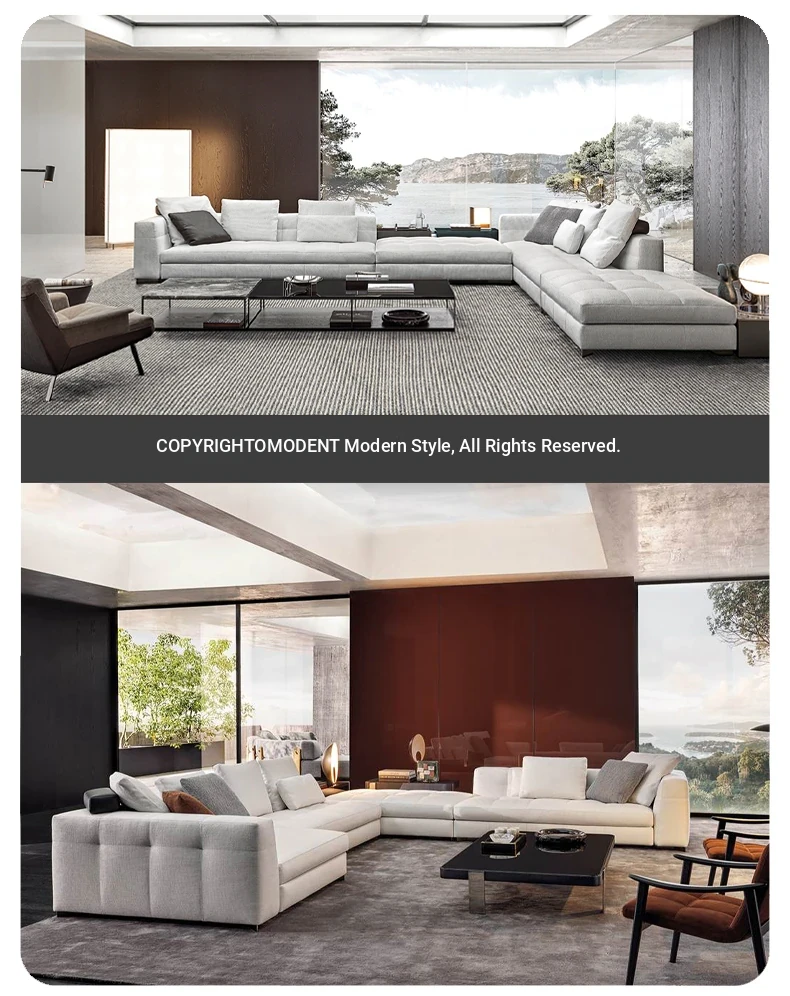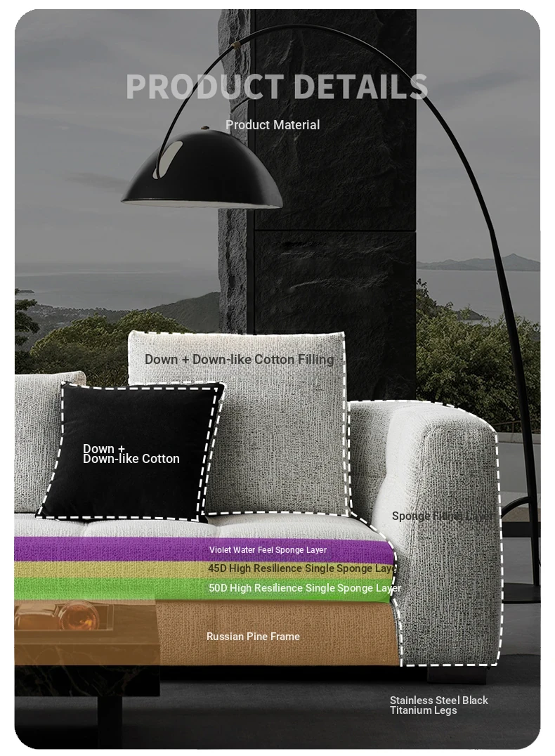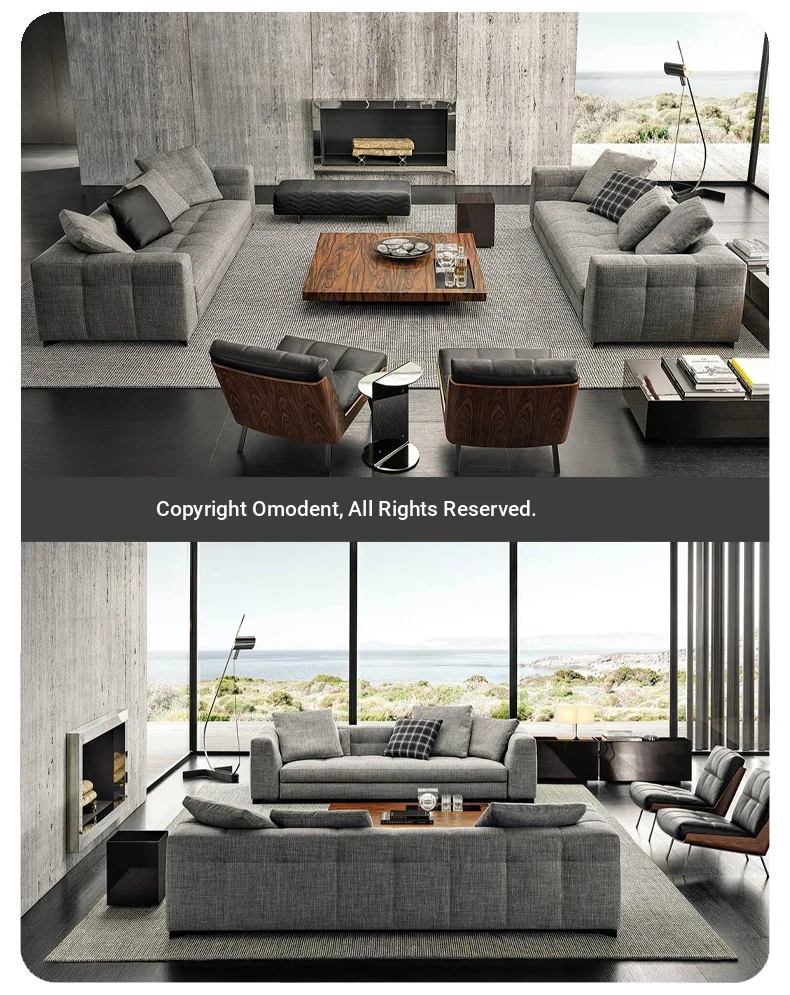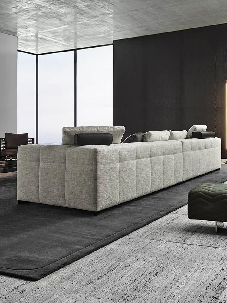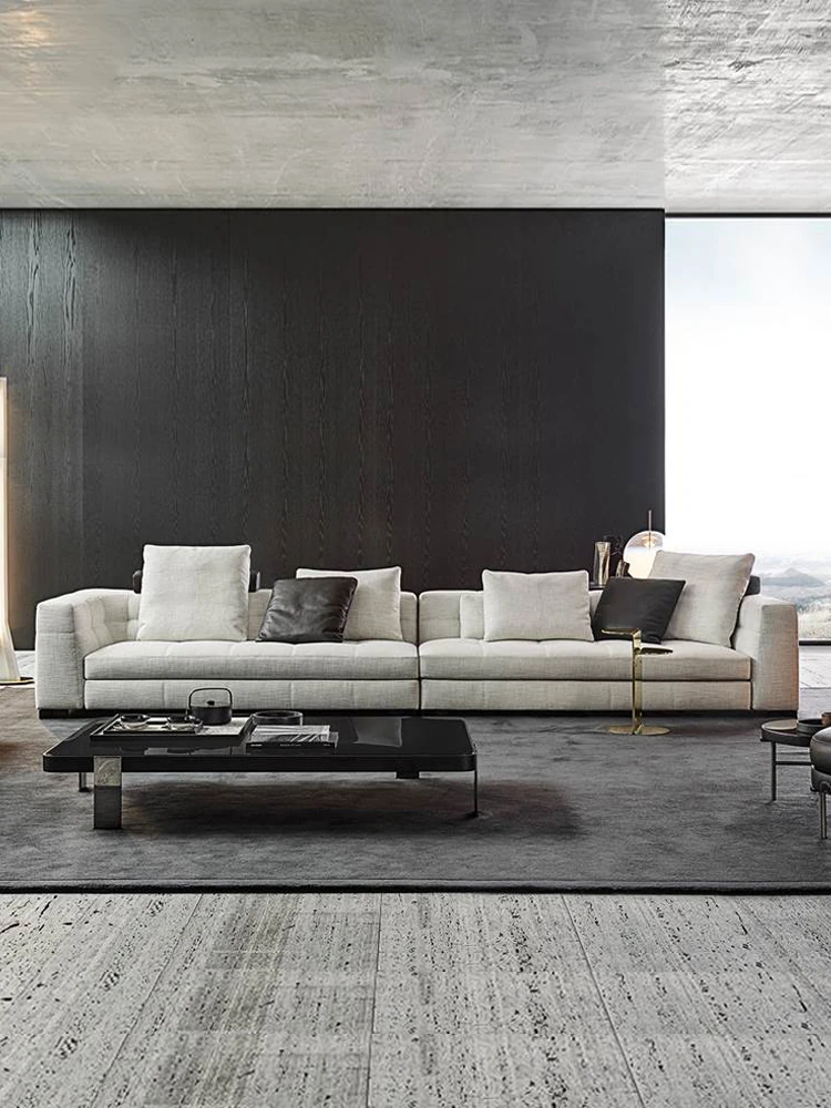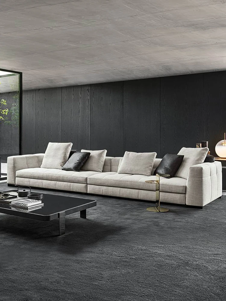Italian Designer Minimalist High-End Genuine Leather Sofa for Small to Medium Living Rooms, Seating 3-4 People, Made with Premium Cotton-Linen Blend
