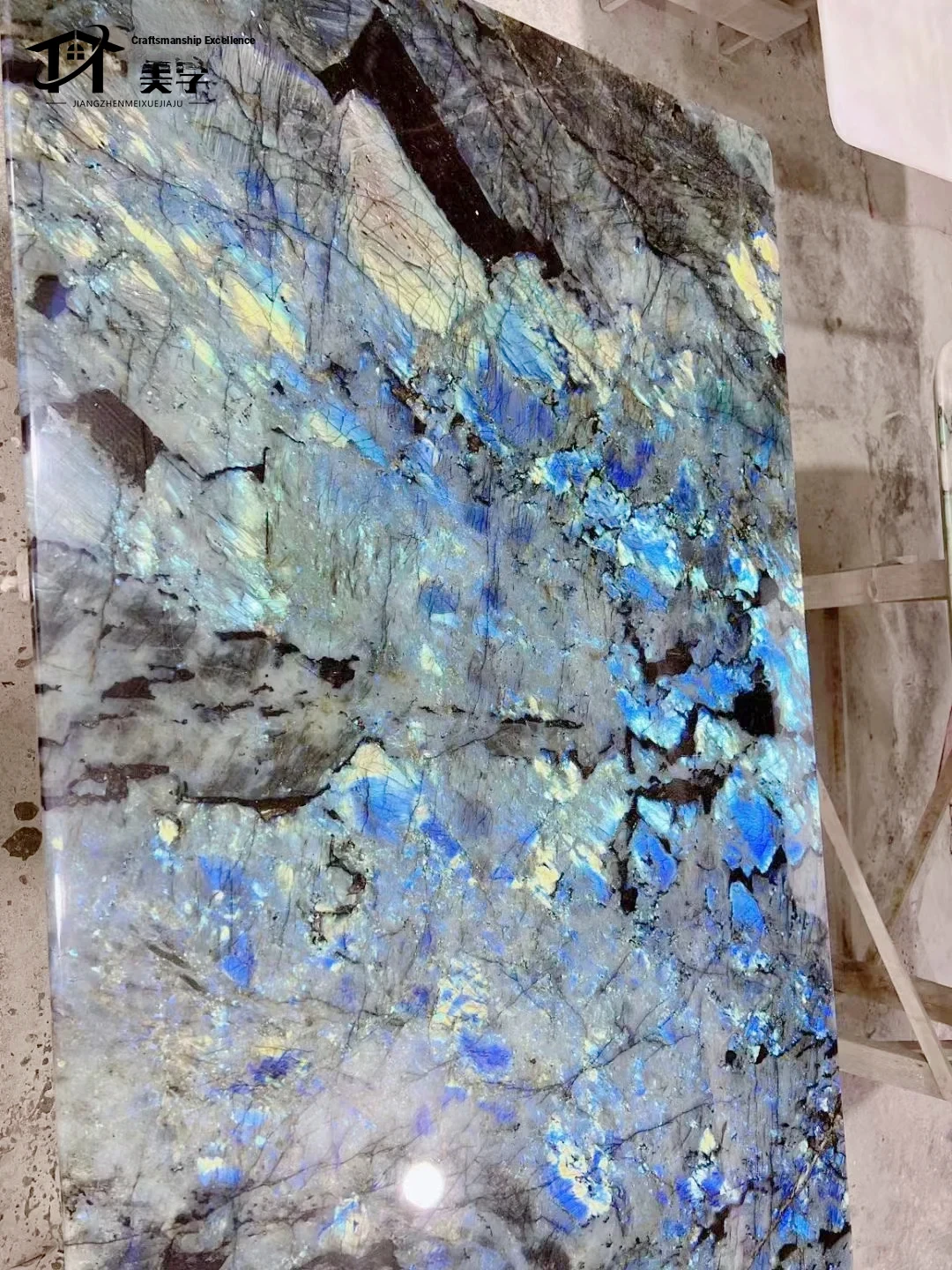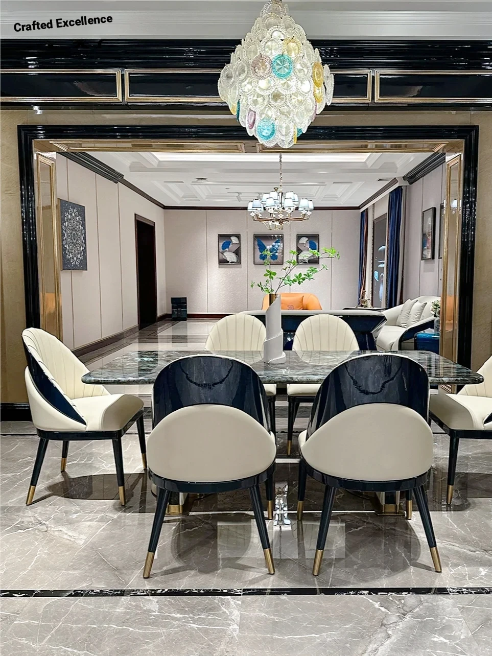 Italian Imported Blue Jade Natural Luxury Stone Rectangular Dining Table - Elegant High-End Villa Dining Experience with Sapphire Touch